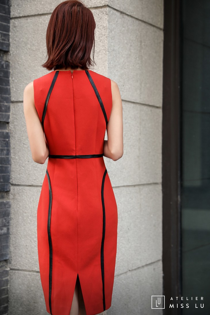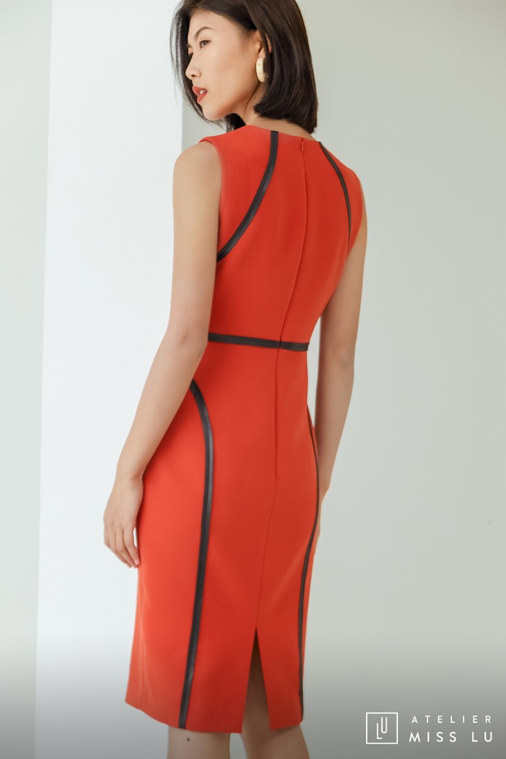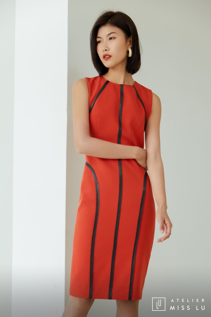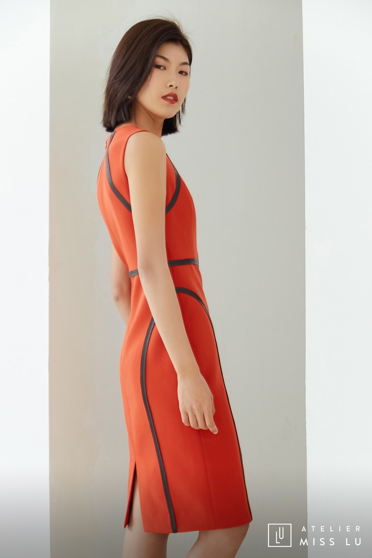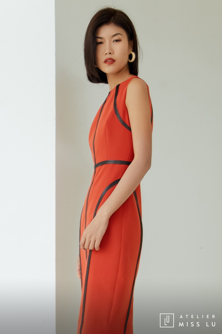 AtelierMissLu / Rosa-枫叶红黑边装饰修身连身裙