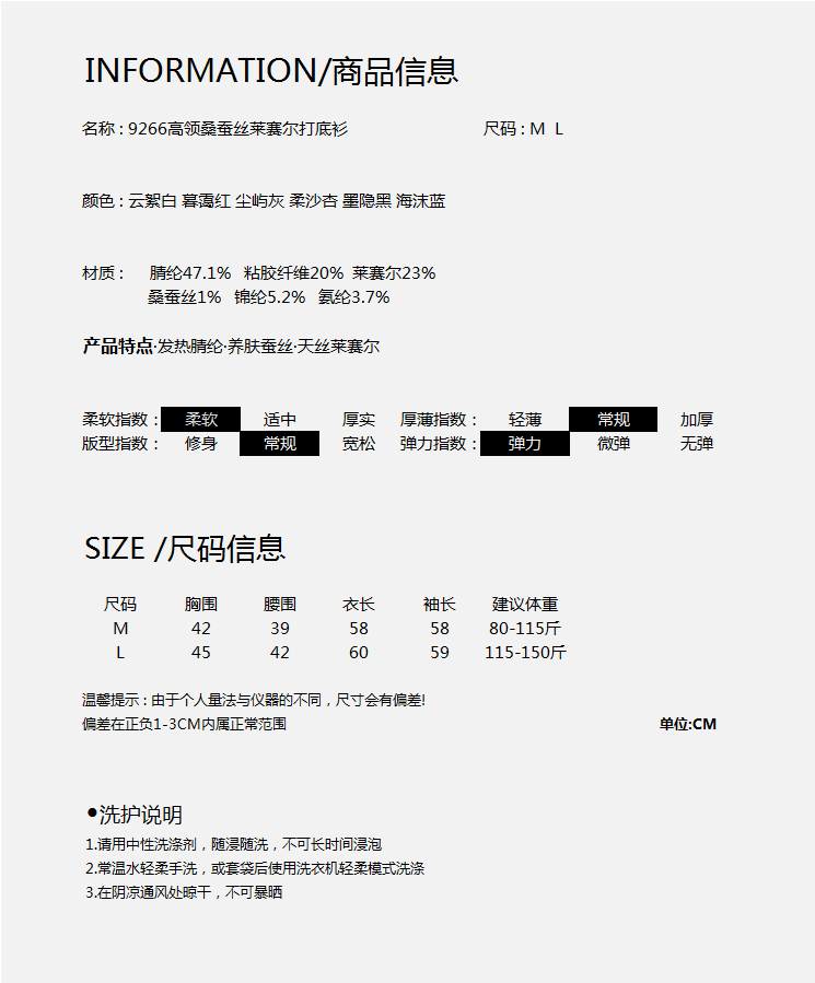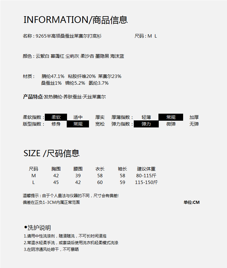 SPLELED 多巴胺自发热桑蚕丝莱赛尔打底衫 半高领/高龄两款可选 自发热黑科技 高弹面料舒适包裹皮肤,无压迫感,秋冬搭配舒适有型 百搭显瘦