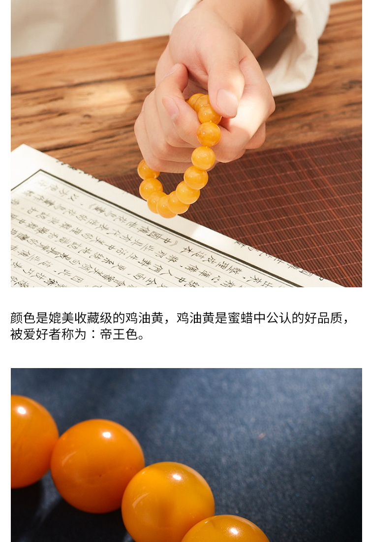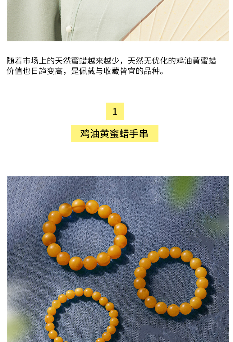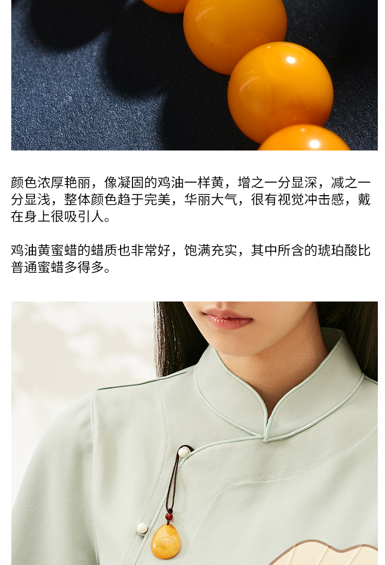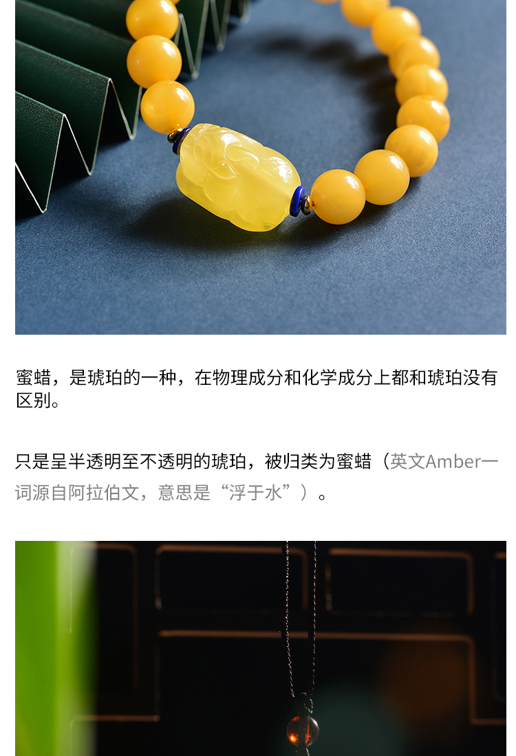 色如蜜光如蜡外有脂光内有宝光的鸡油黄蜜蜡手串和吊坠
