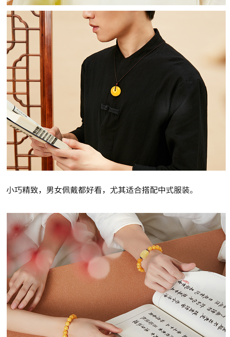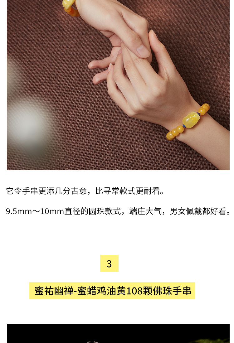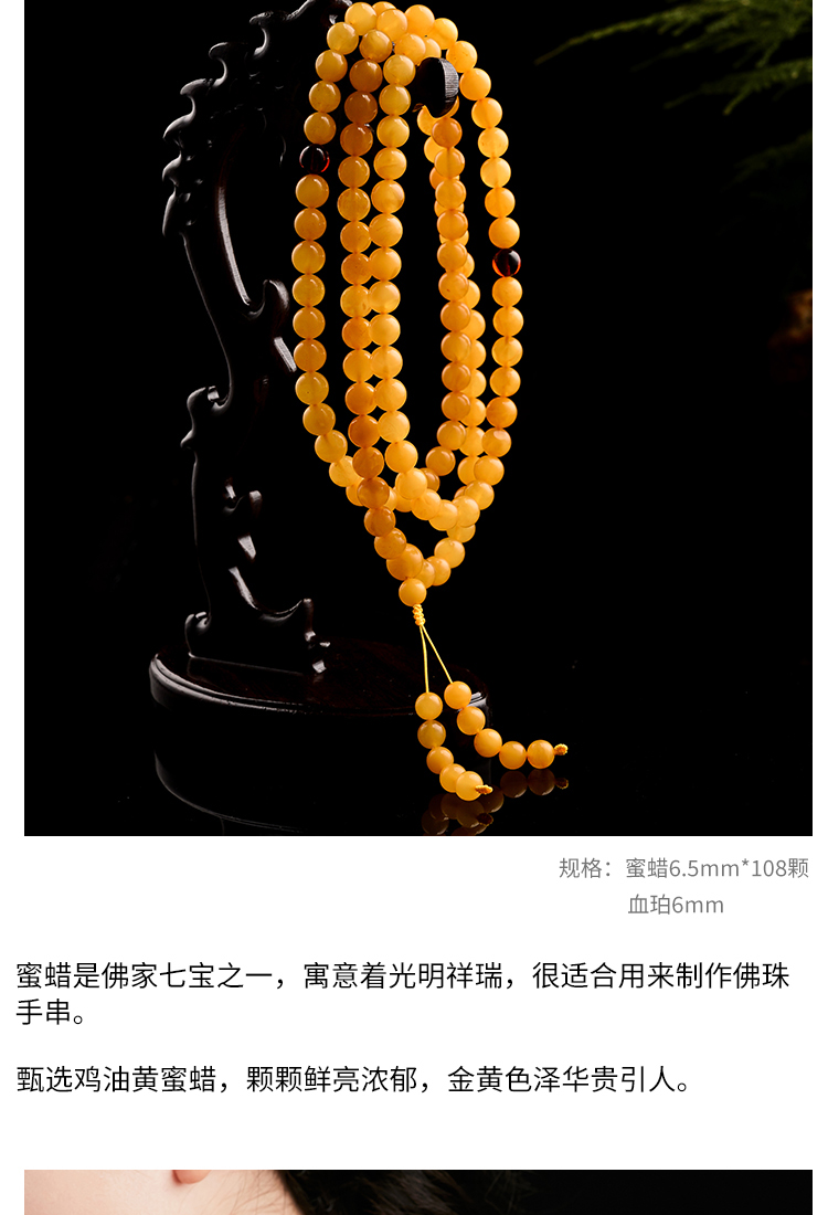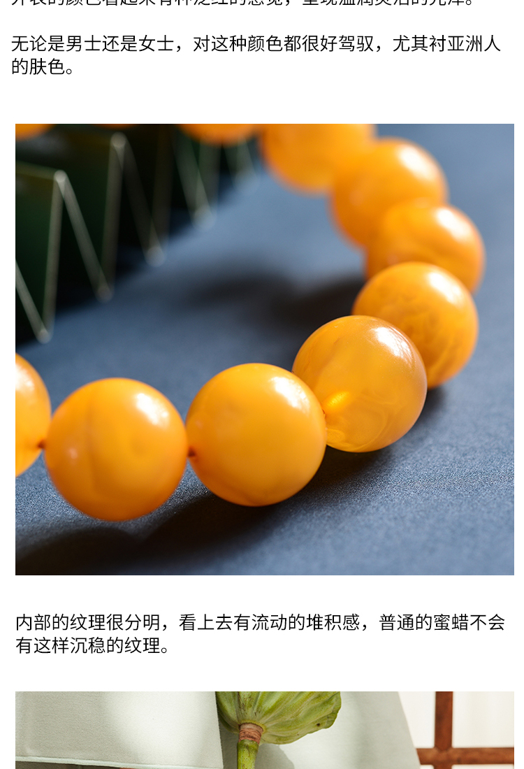 色如蜜光如蜡外有脂光内有宝光的鸡油黄蜜蜡手串和吊坠
