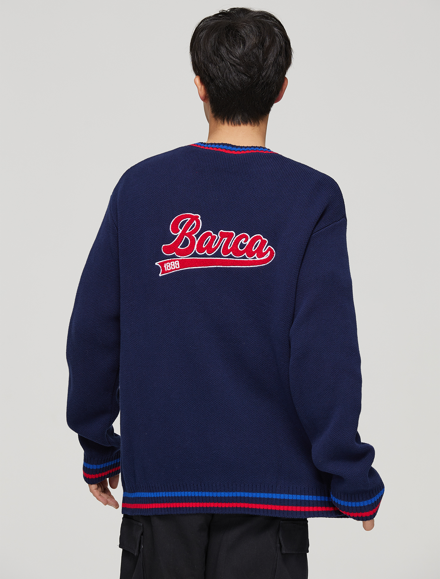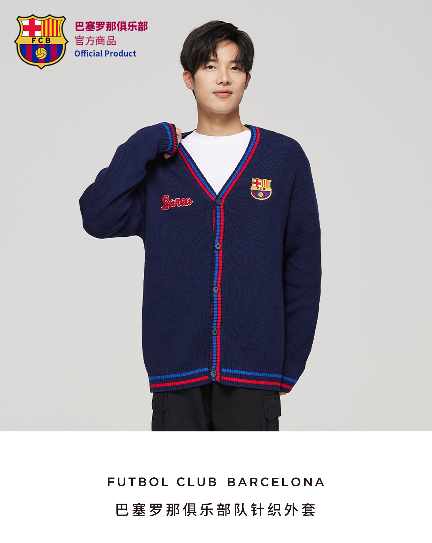 【官方正版】巴塞罗那俱乐部丨巴萨深蓝针织外套足球迷休闲开衫
