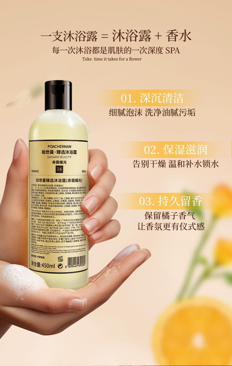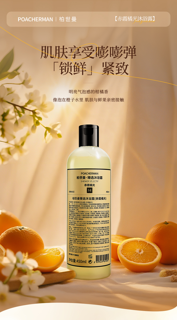 柏世曼臻选橘香香氛沐浴露 保湿滋润锁水橘子味持久留香沐浴乳