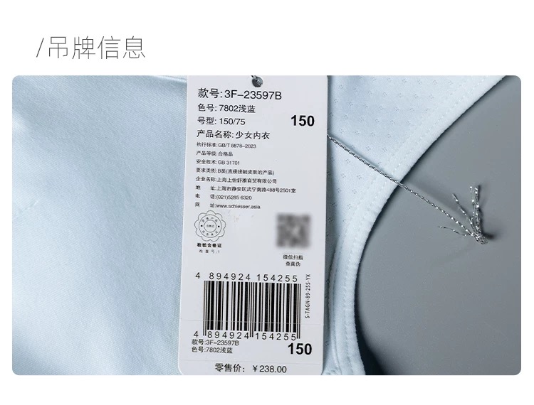 【三阶段】SCHIESSER舒雅女童94%棉+6%氨纶三阶段少女文胸3F/23597B