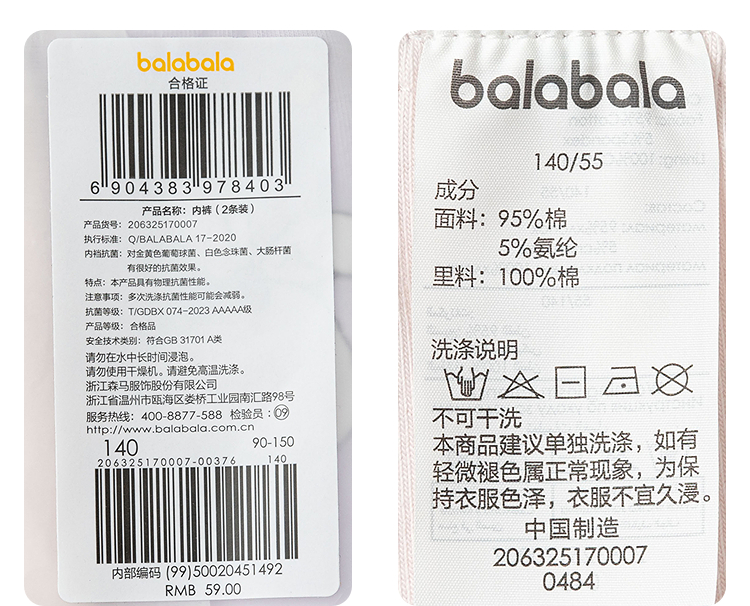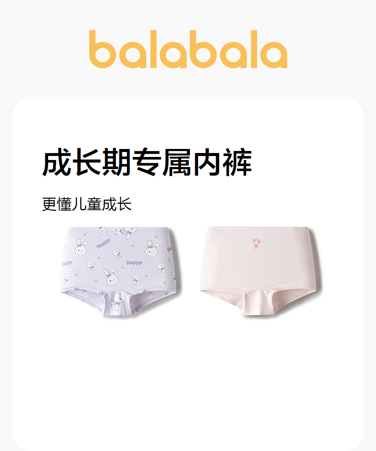【商场同款】巴拉巴拉女童内裤平角小童四角短裤抗菌不夹P两条装