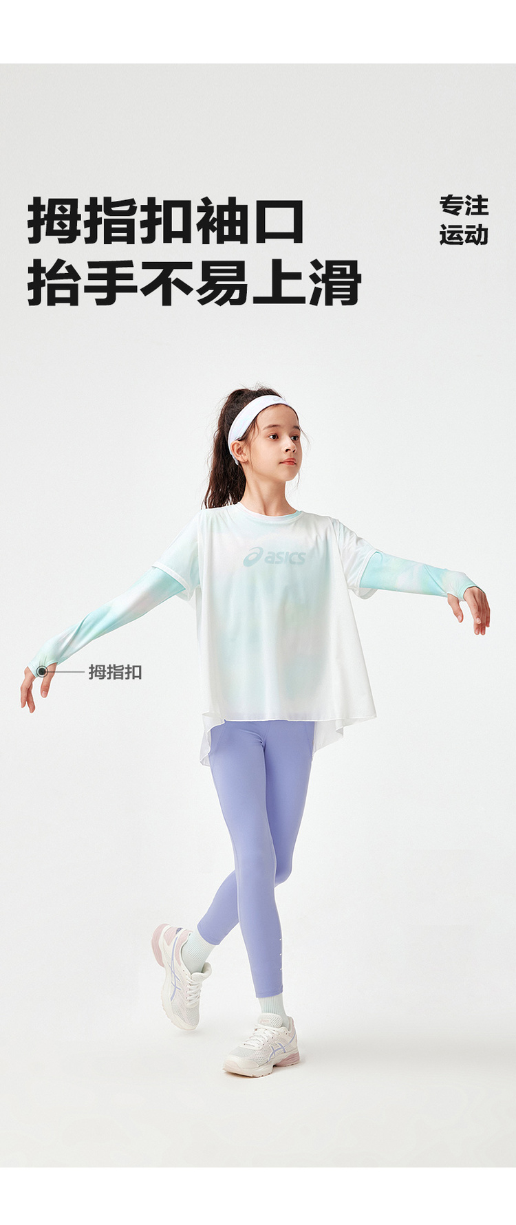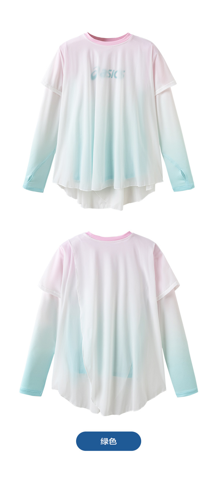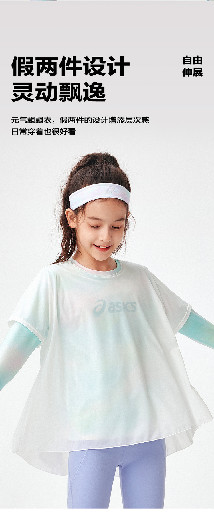 asics/亚瑟士童装24年春季新女童假两件炫彩渐变高弹速干针织T恤