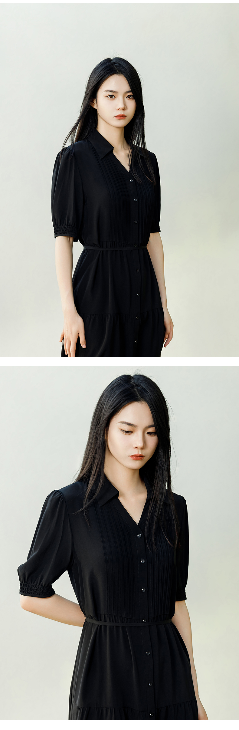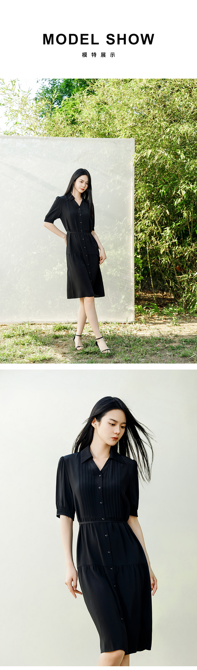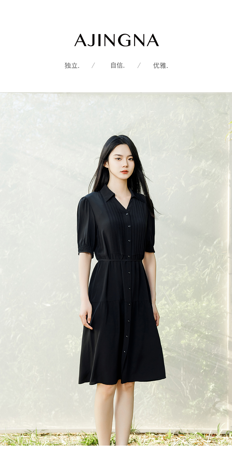 【商场同款】阿菁娜2024夏季新款V领翻领收腰式连衣裙A30X212069