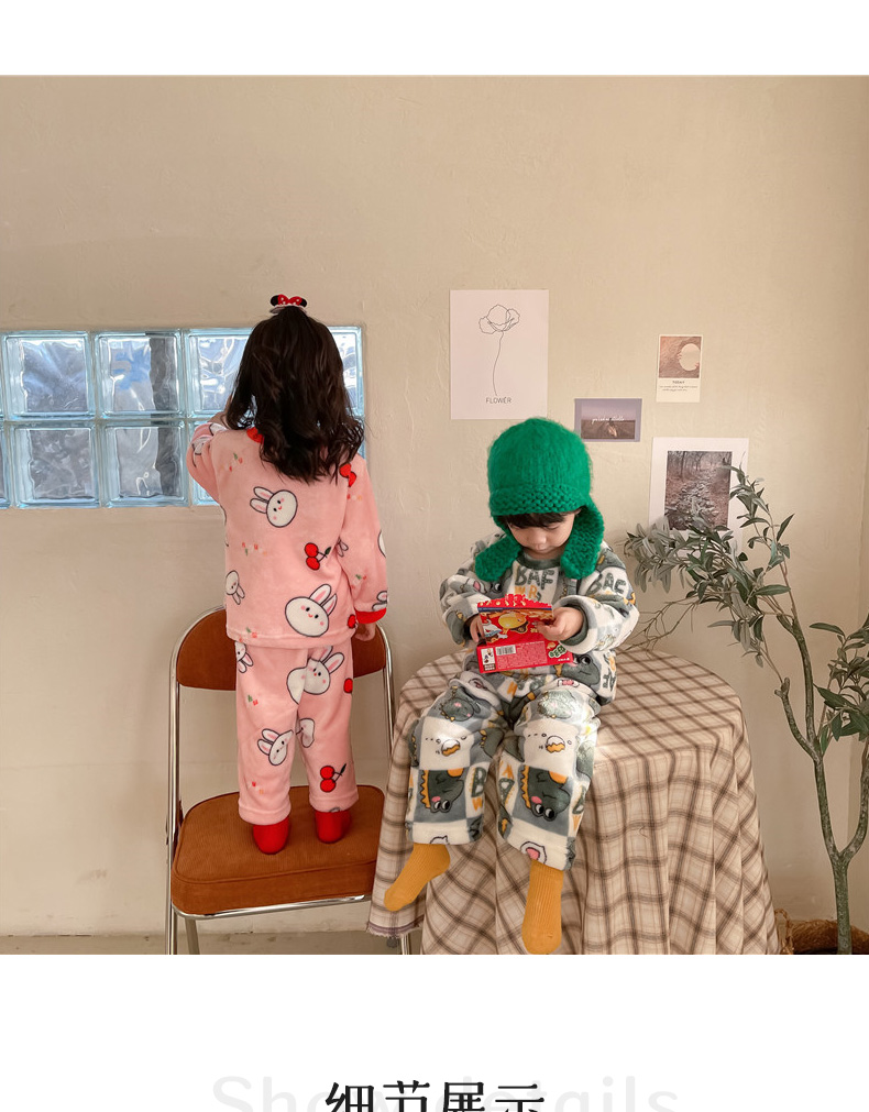 【39.9/套】儿童冬款法兰绒睡衣套装家居服1-12岁宝宝聚