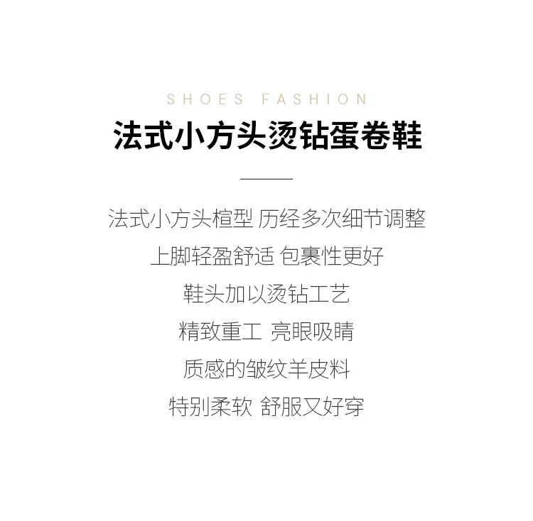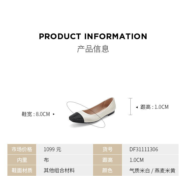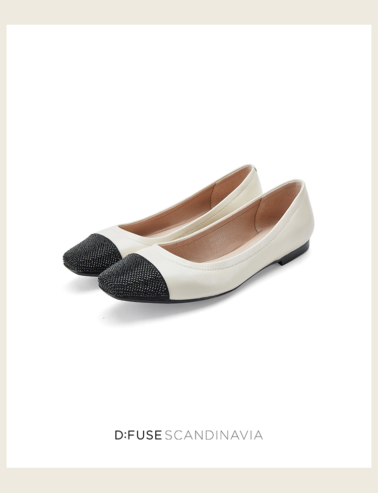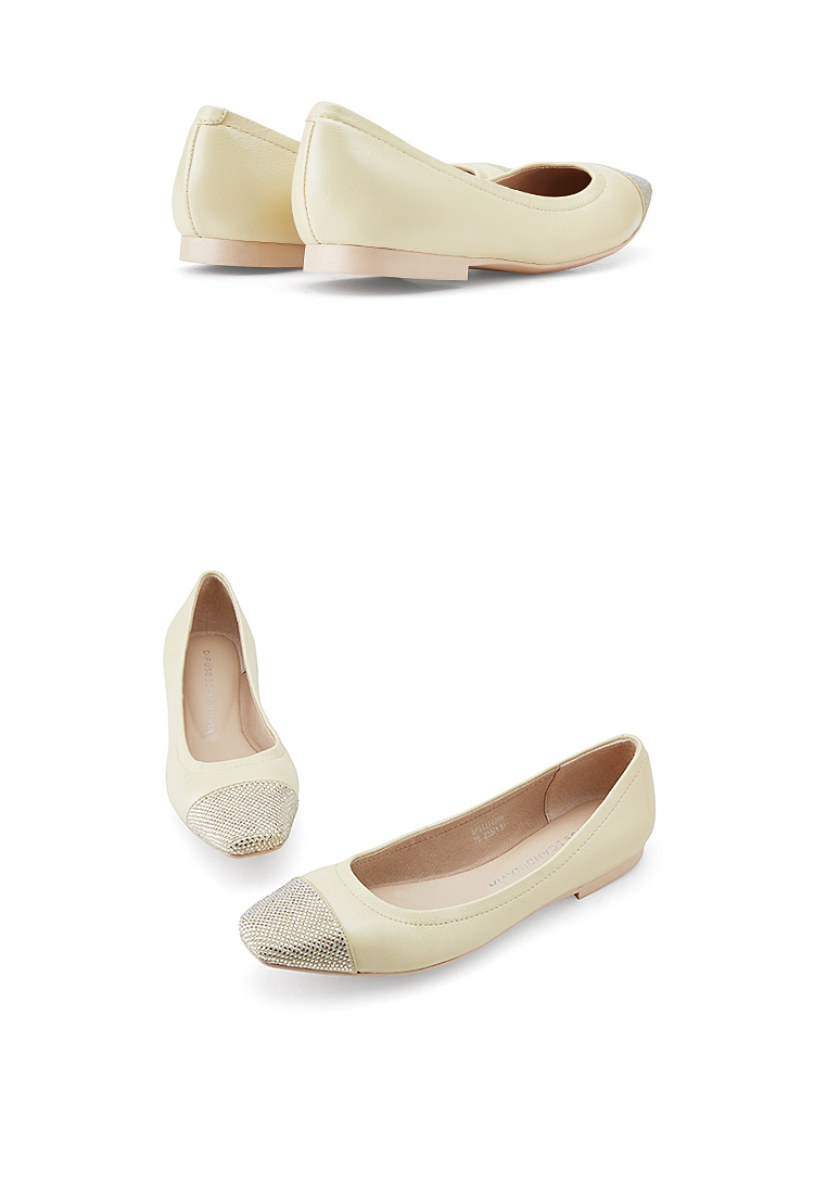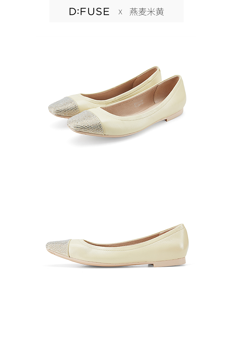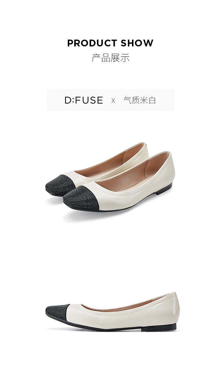 D:FUSE/迪芙斯春季新款羊皮方头烫钻平底蛋卷鞋单鞋DF31111306