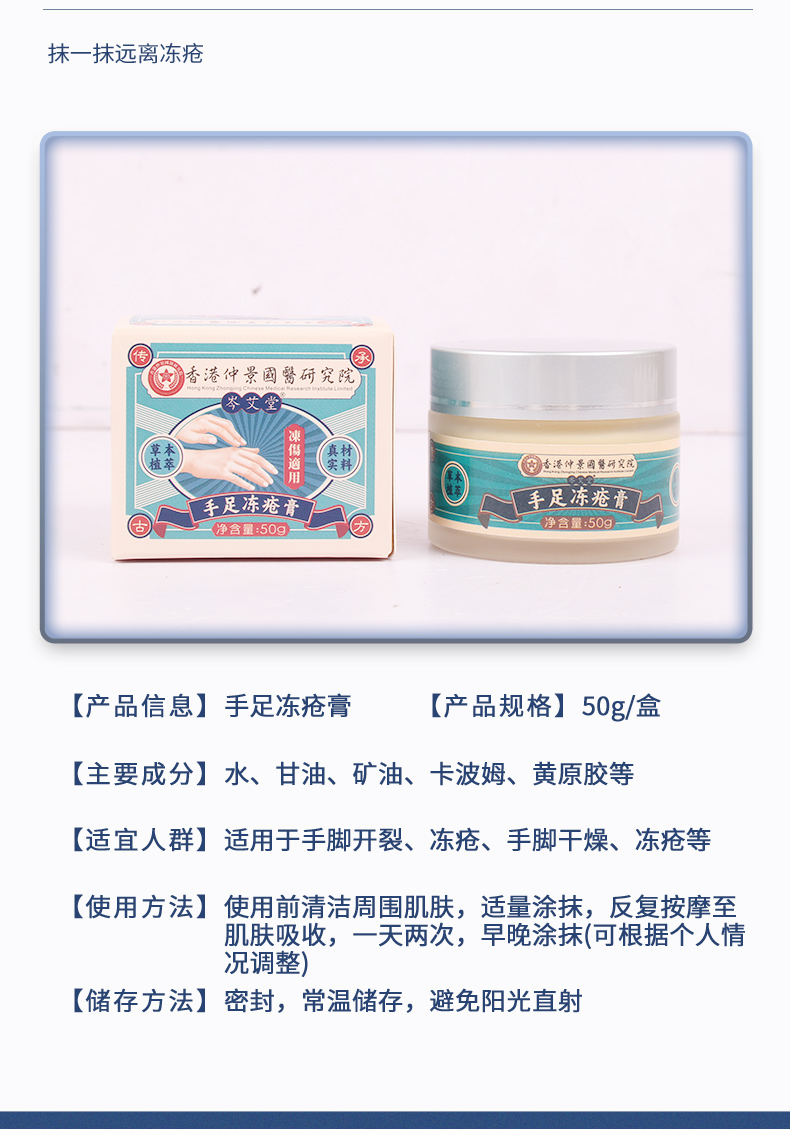 【1瓶=身体乳+护手霜+护足霜】香港仲景国医研究院岑艾堂·手足膏 秋冬滋润 不油腻 50g/瓶