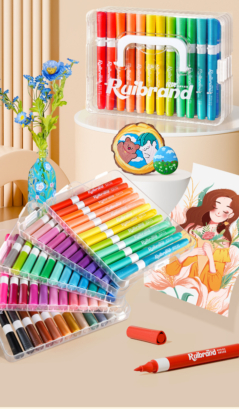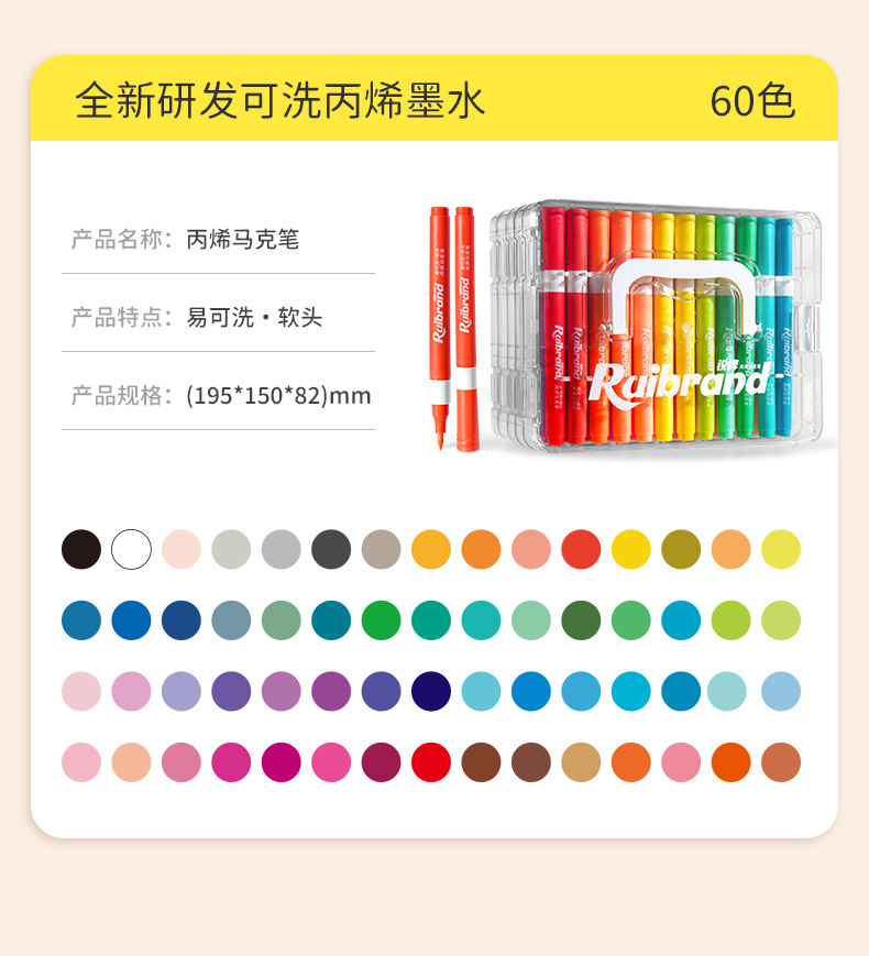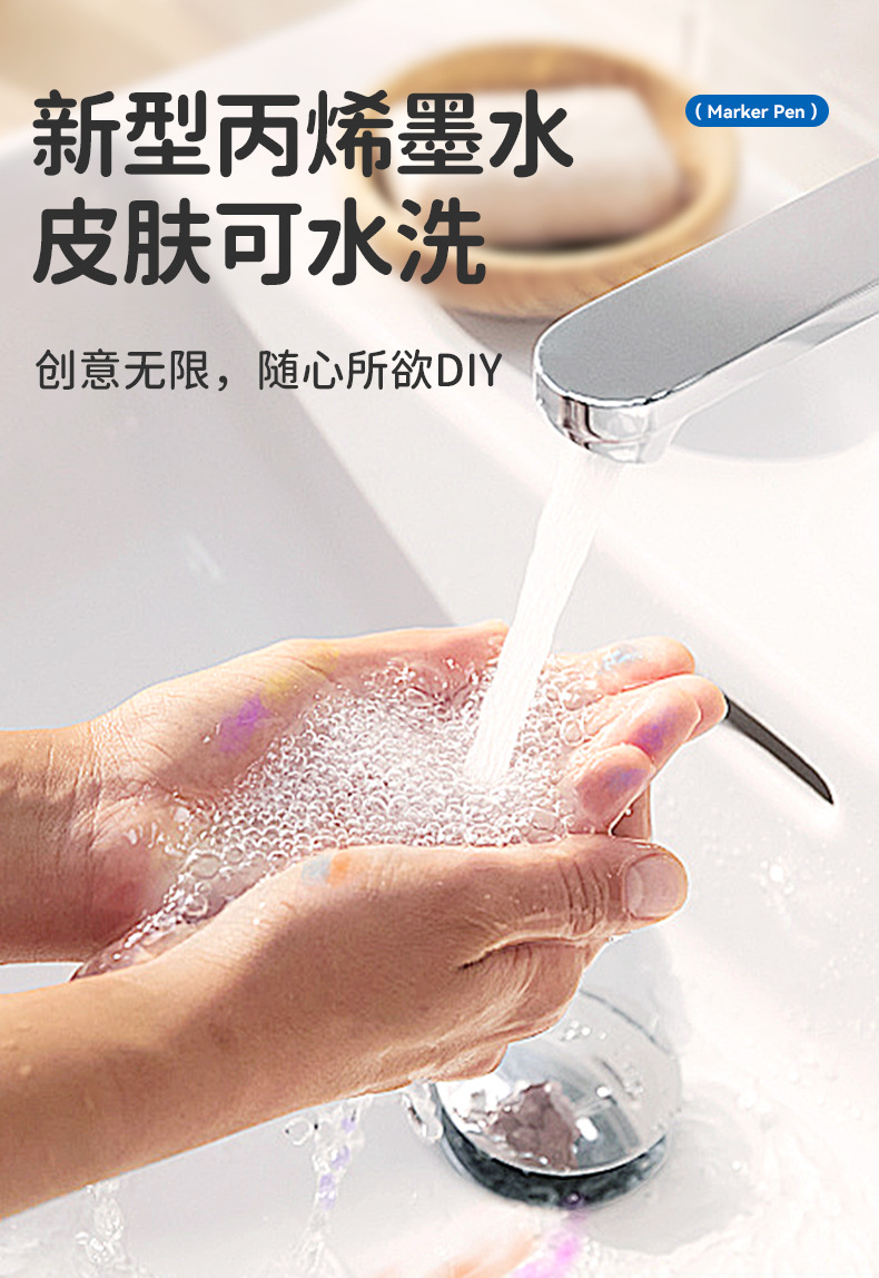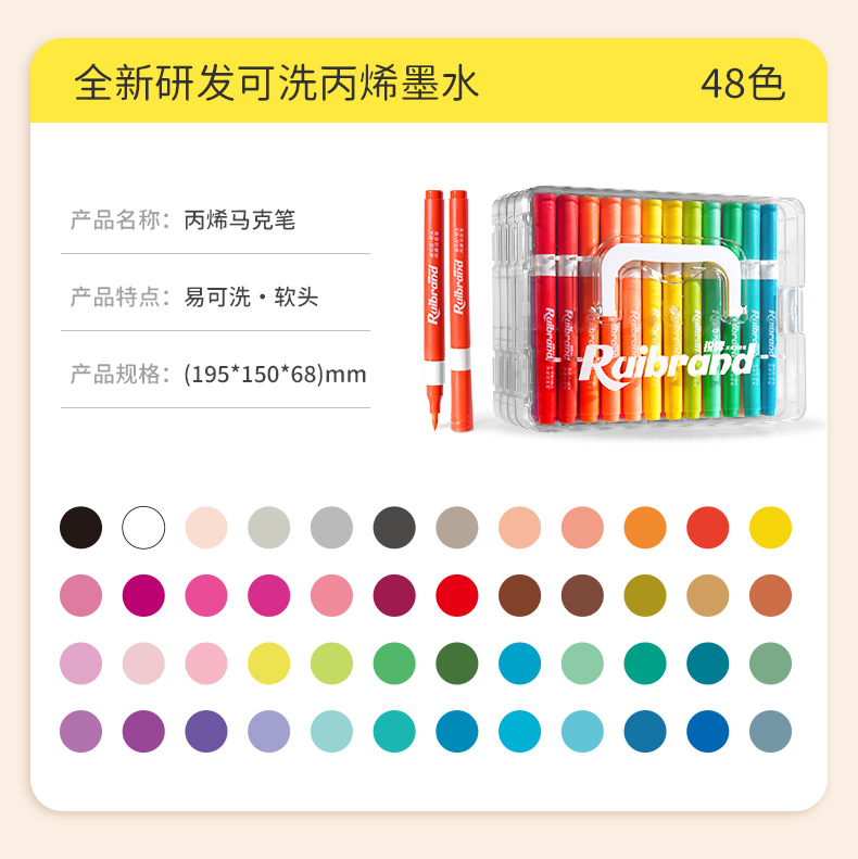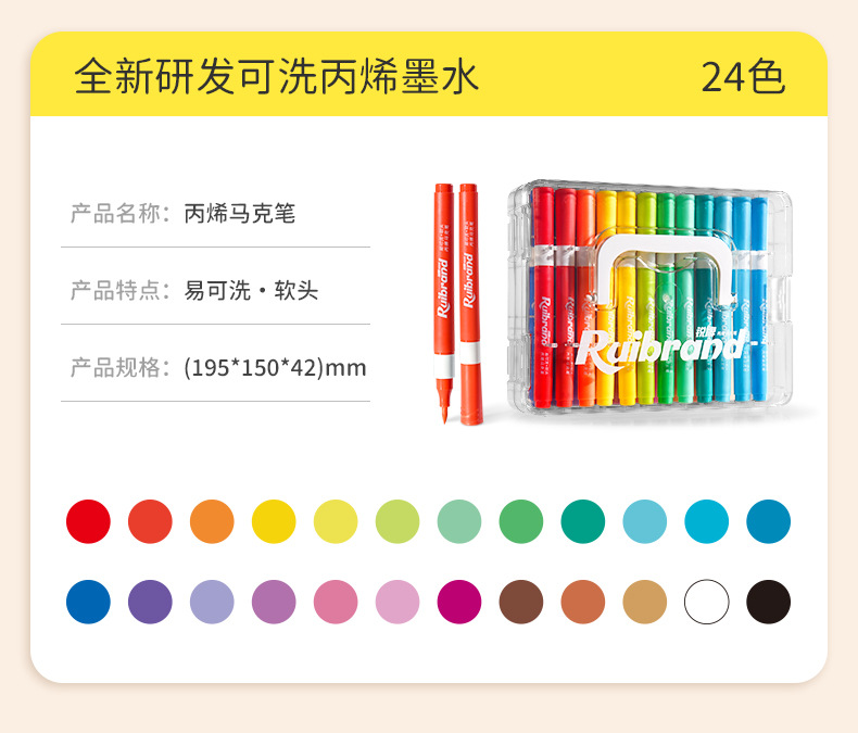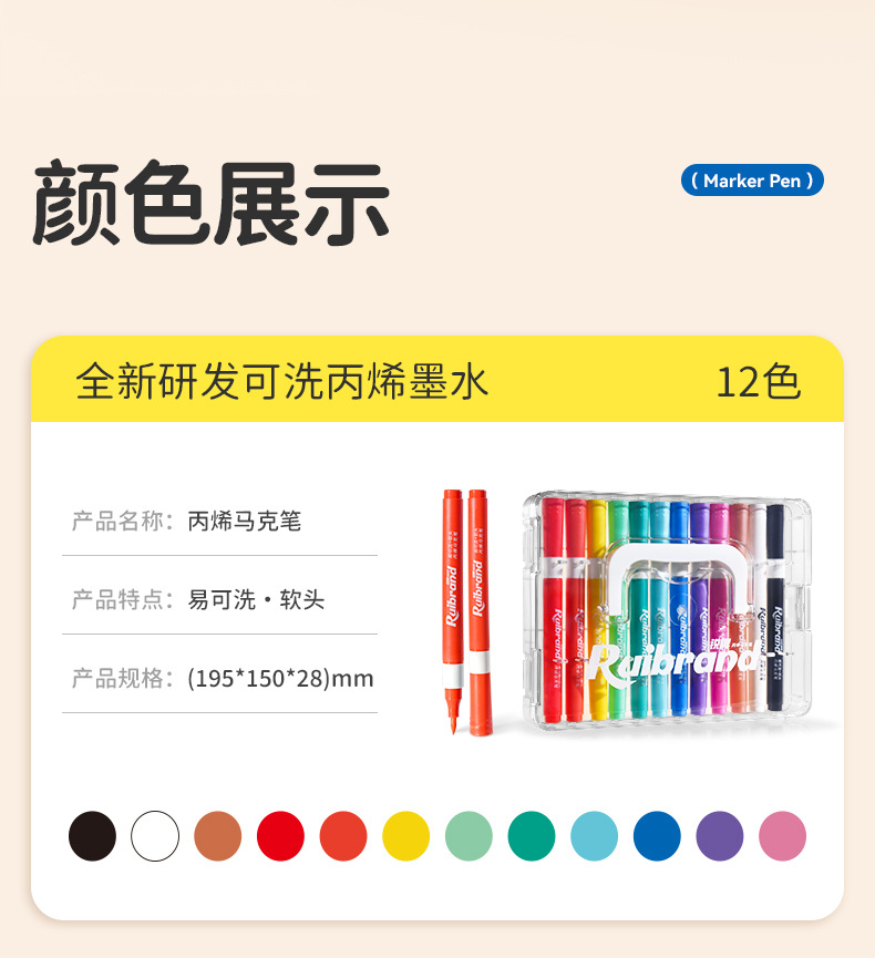 开学季福利!新品!【易可洗环保墨水】锐牌丙烯马克笔儿童无毒易可洗小学生美术水彩笔不透色可叠色画笔