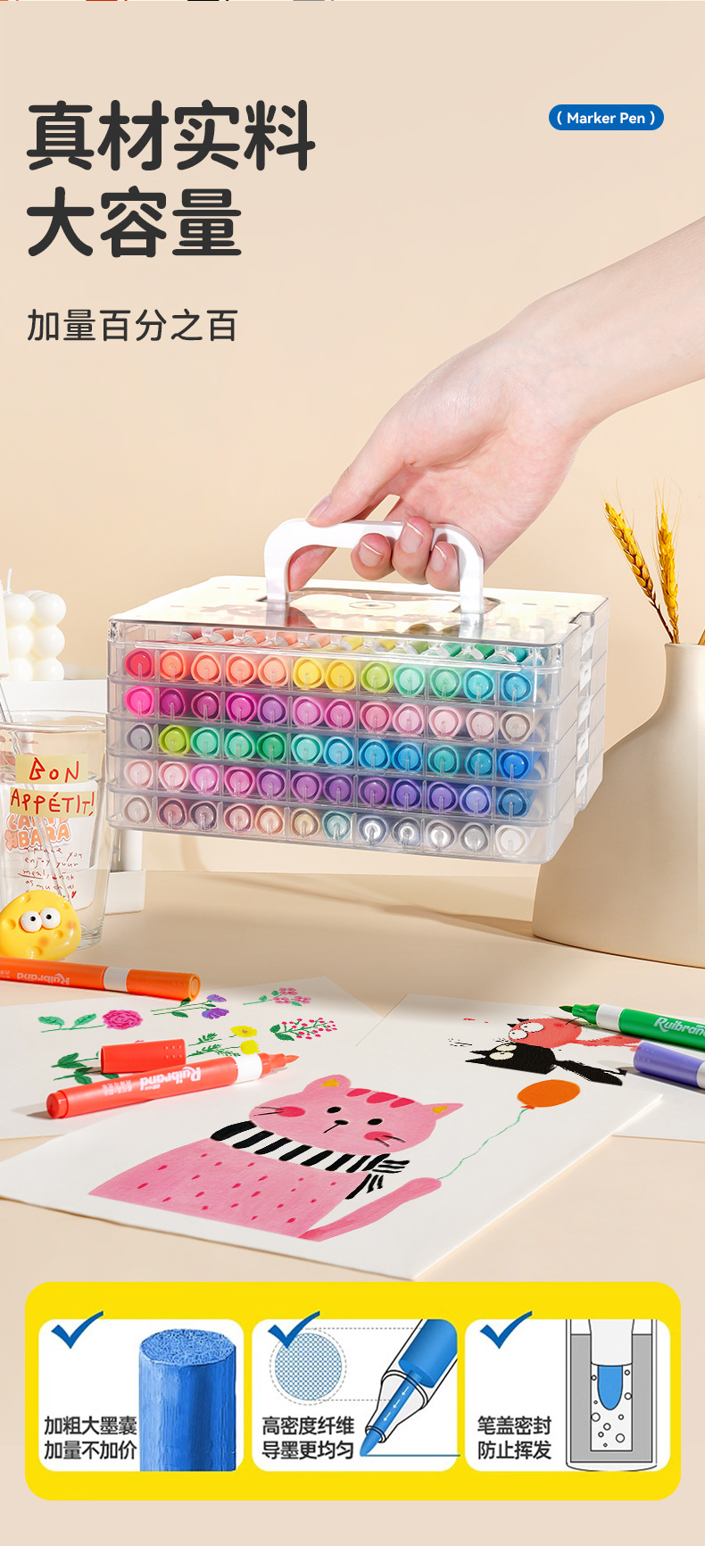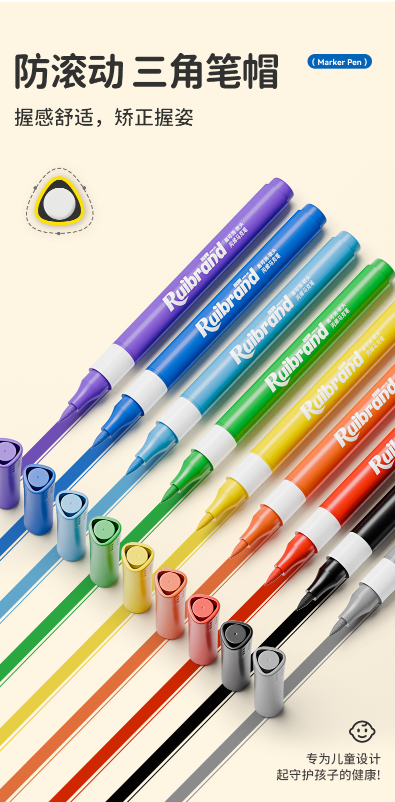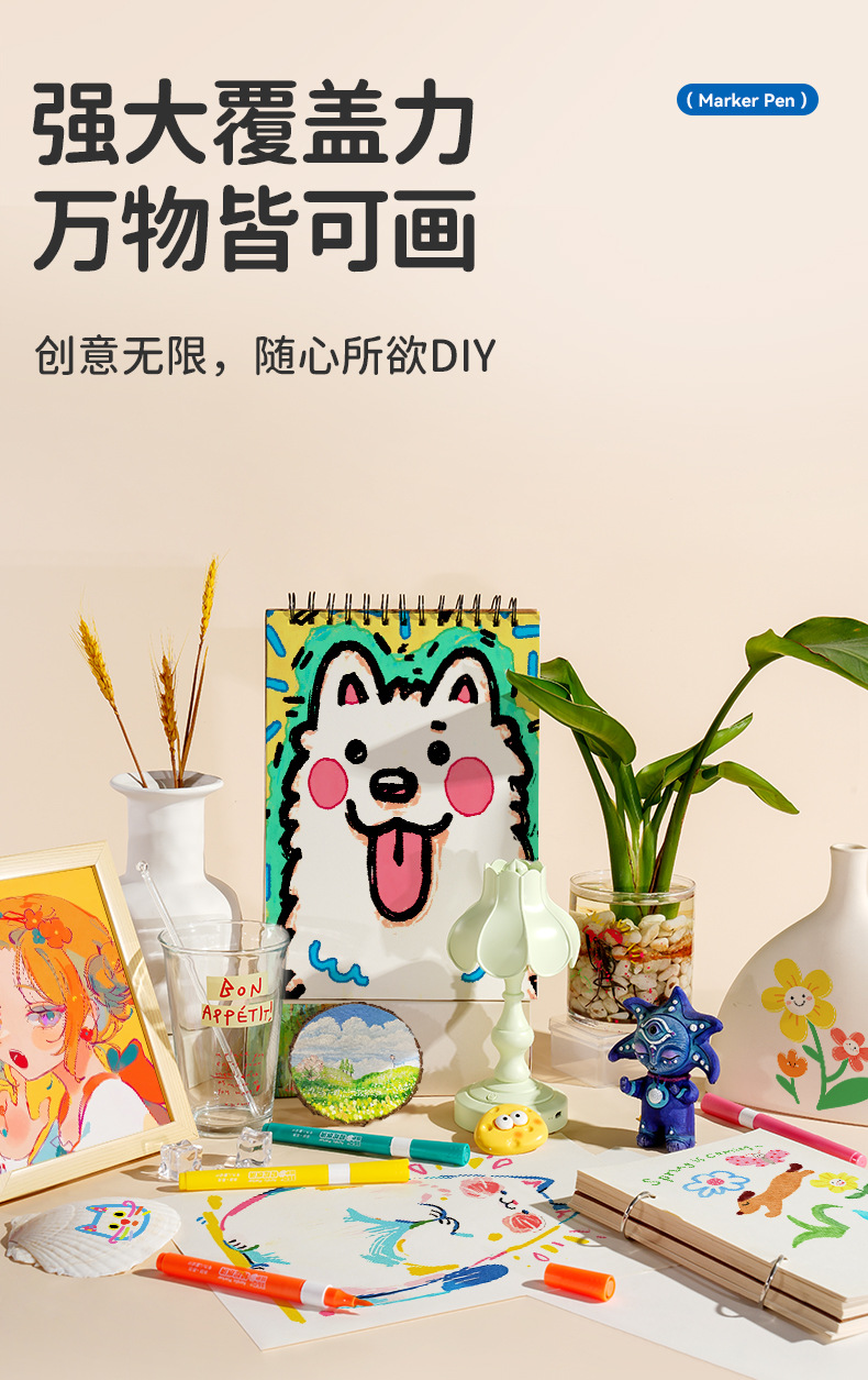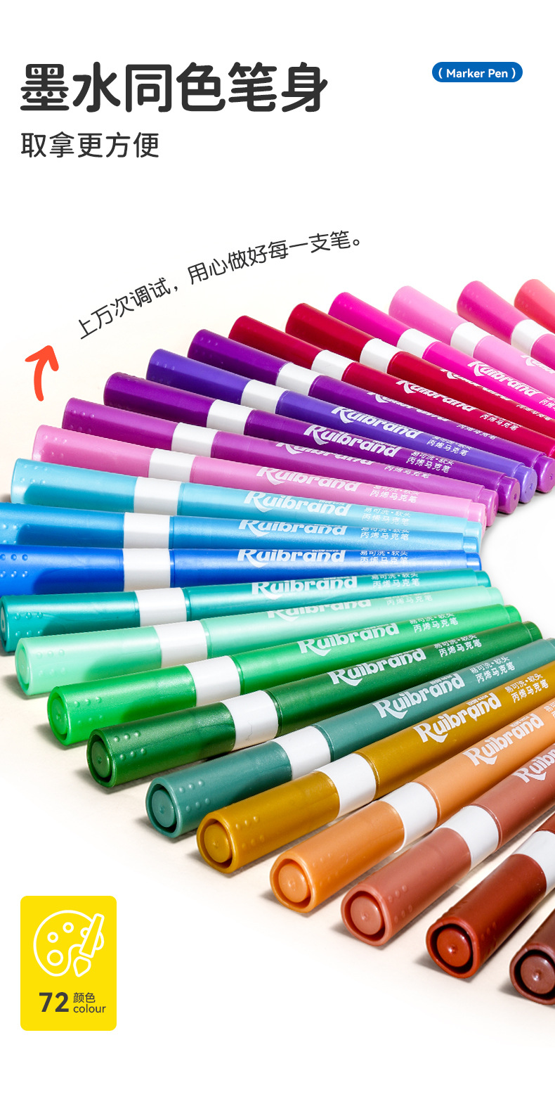 开学季福利!新品!【易可洗环保墨水】锐牌丙烯马克笔儿童无毒易可洗小学生美术水彩笔不透色可叠色画笔