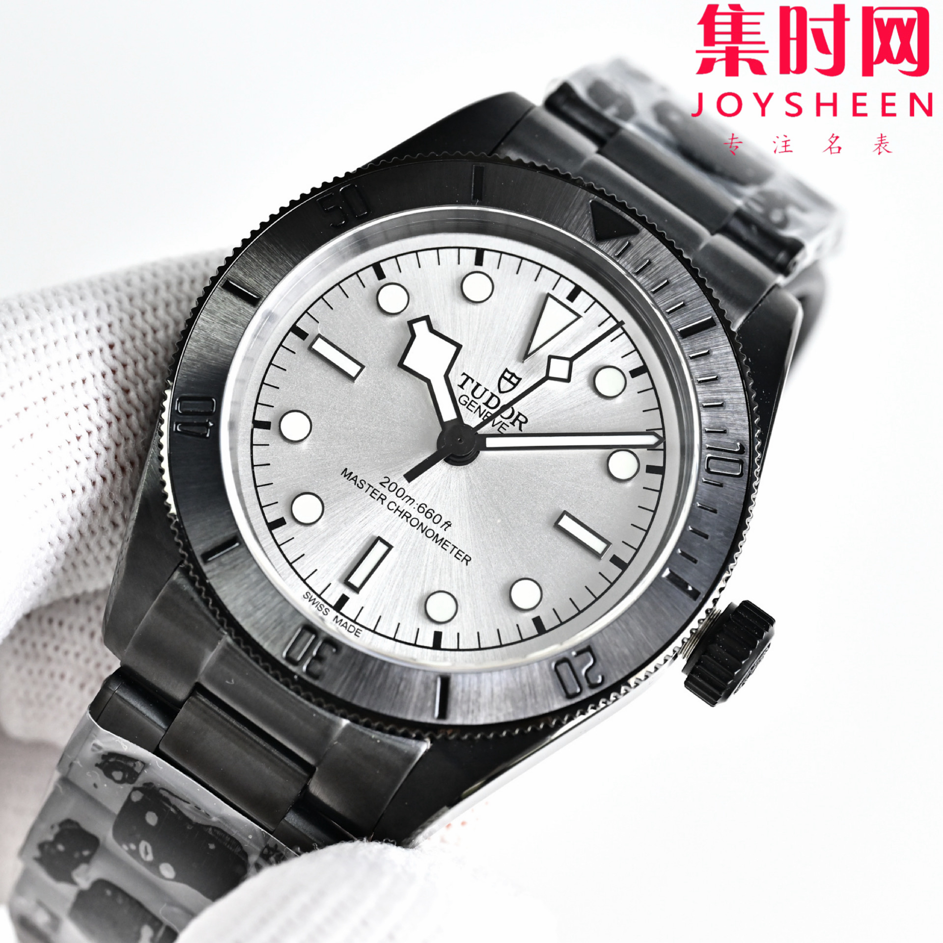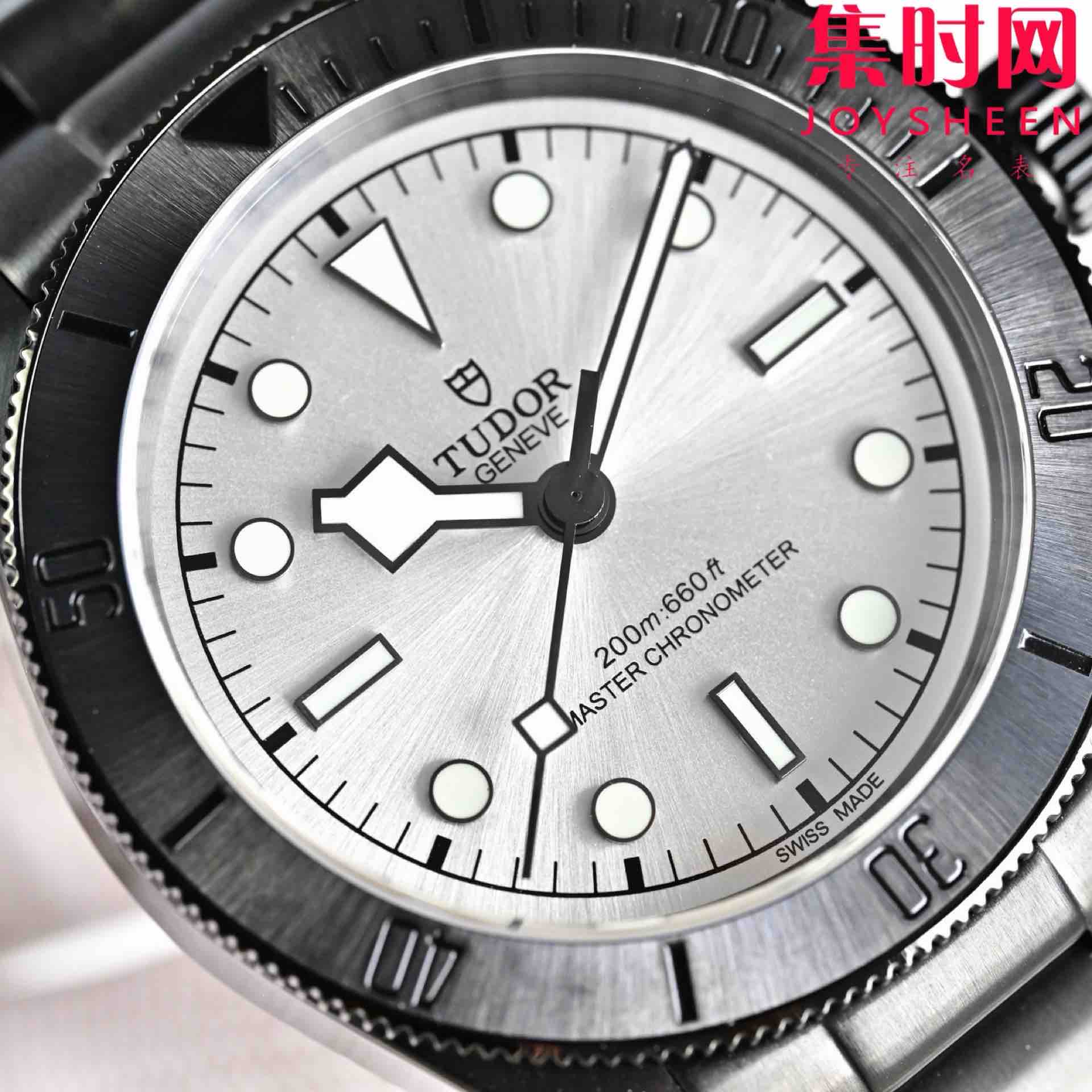 黑 蓝 白表盘,简约大气,搭配夜光指针和时标,无论白天黑夜,时间清晰易读。标志性雪花指针,传承帝舵经典设计,在黑色背景下更显凌厉锋芒。