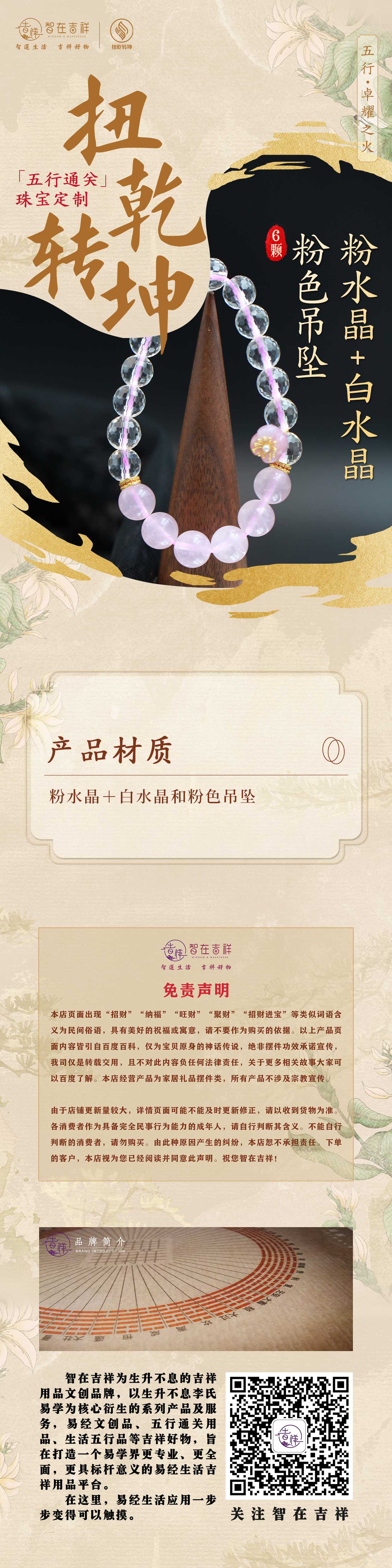 【卓耀之火】6颗粉水晶加白水晶粉色吊坠