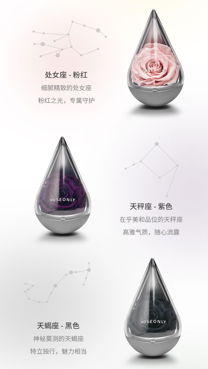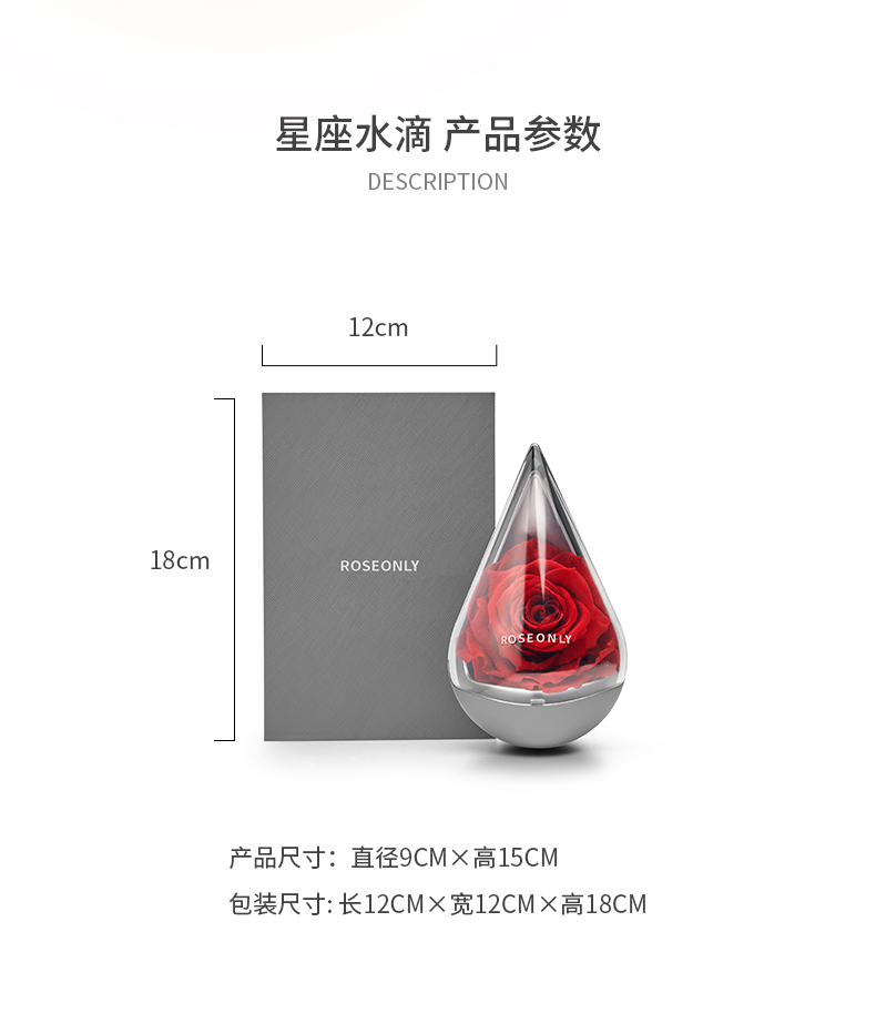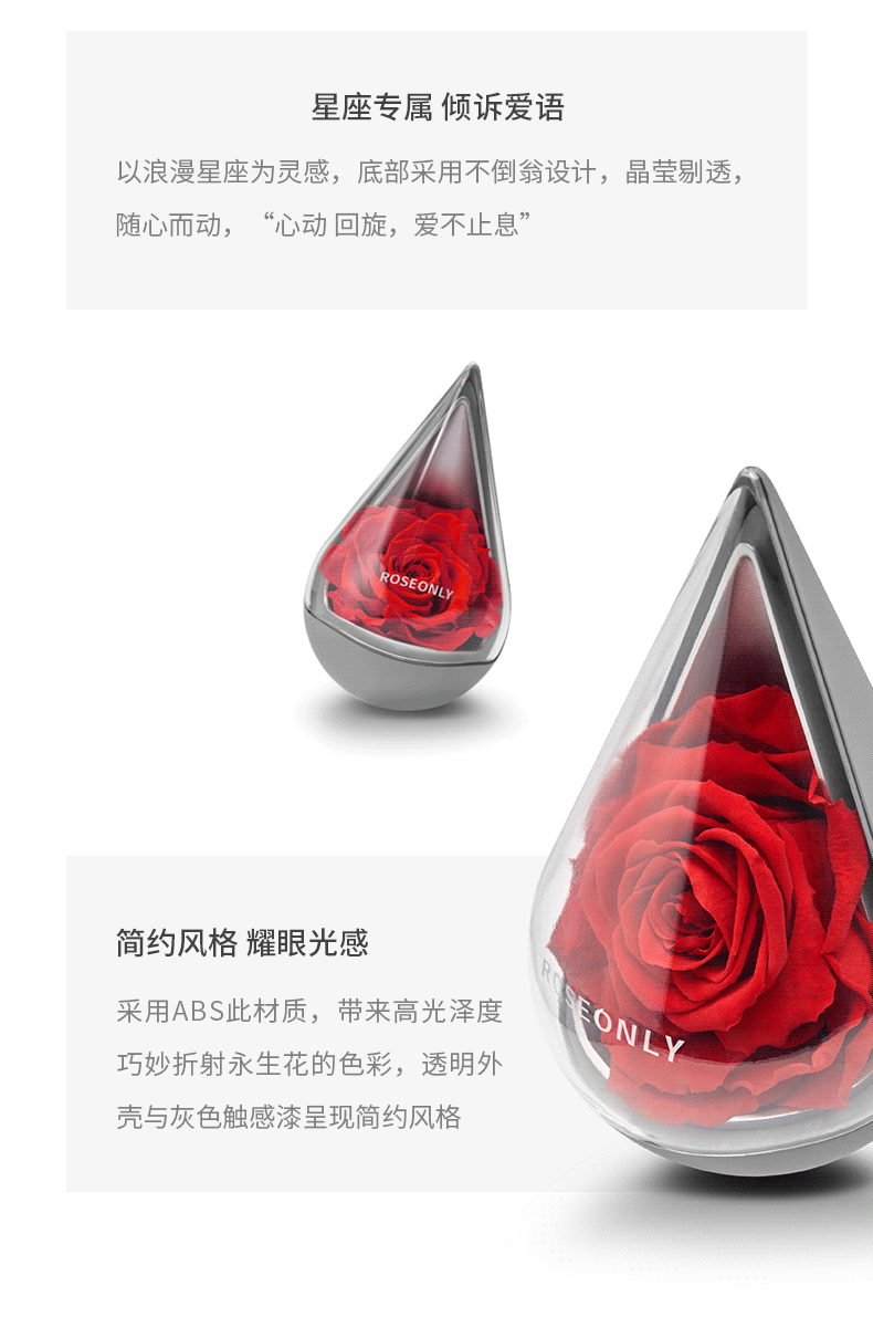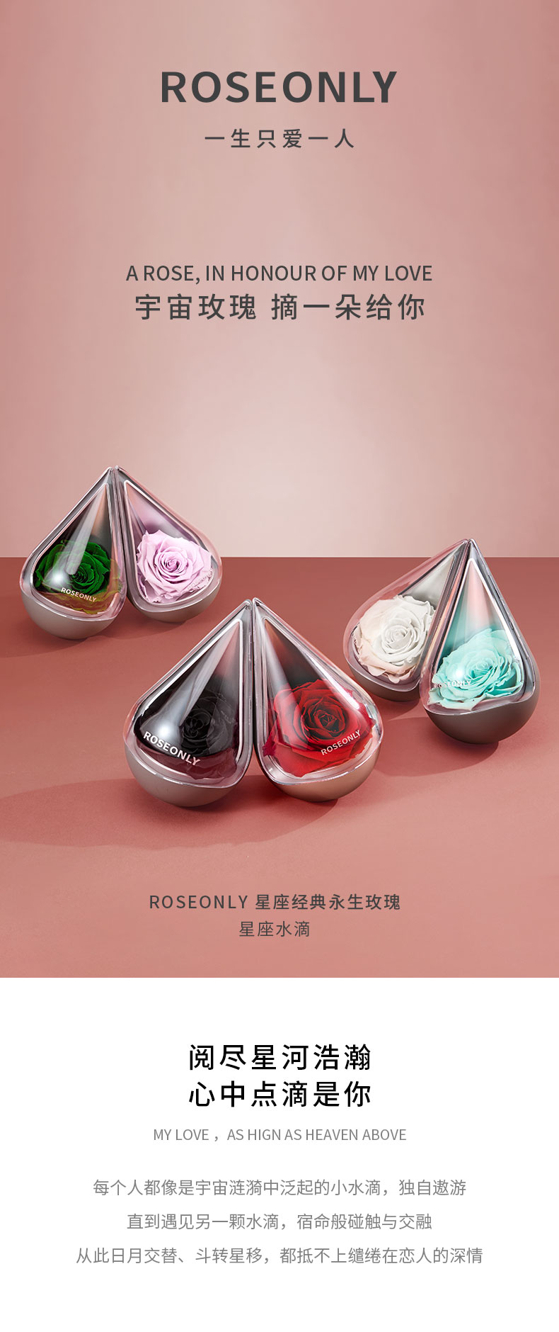 【星座水滴】ROSEONLY诺誓 永生玫瑰 星座经典 水滴玫瑰 红色 十二星座守护色 送女友爱人生日礼物