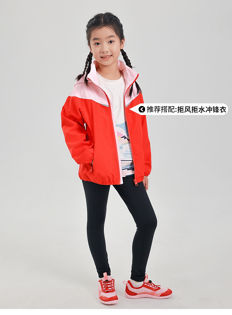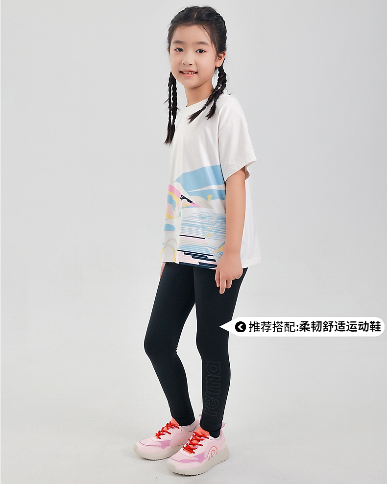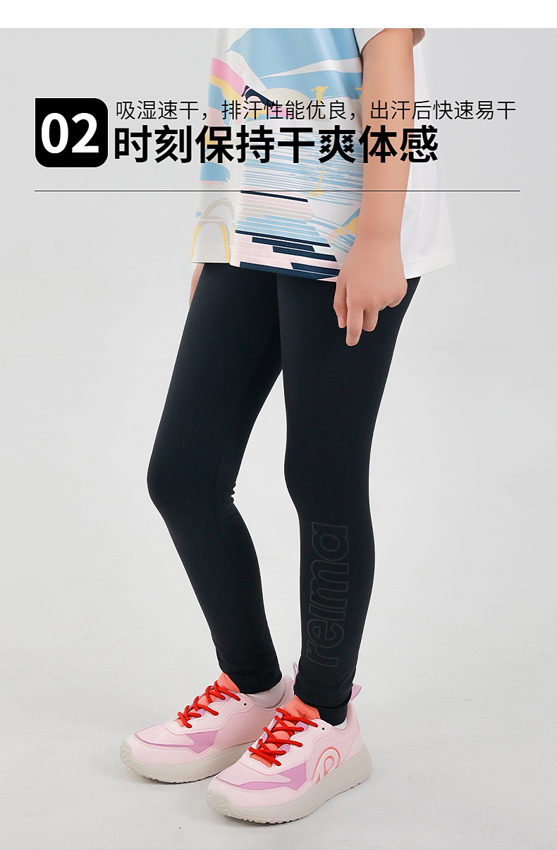reima女孩儿童紧身裤中童2024春新款黑色速干防晒弹力修身长裤子
