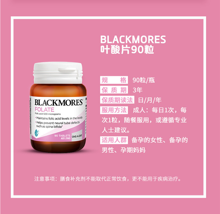 【跨境】澳洲澳佳宝Blackmores 百丽康美叶酸90片