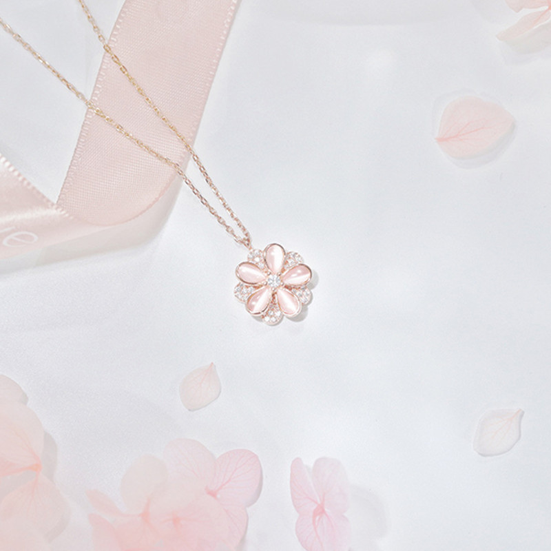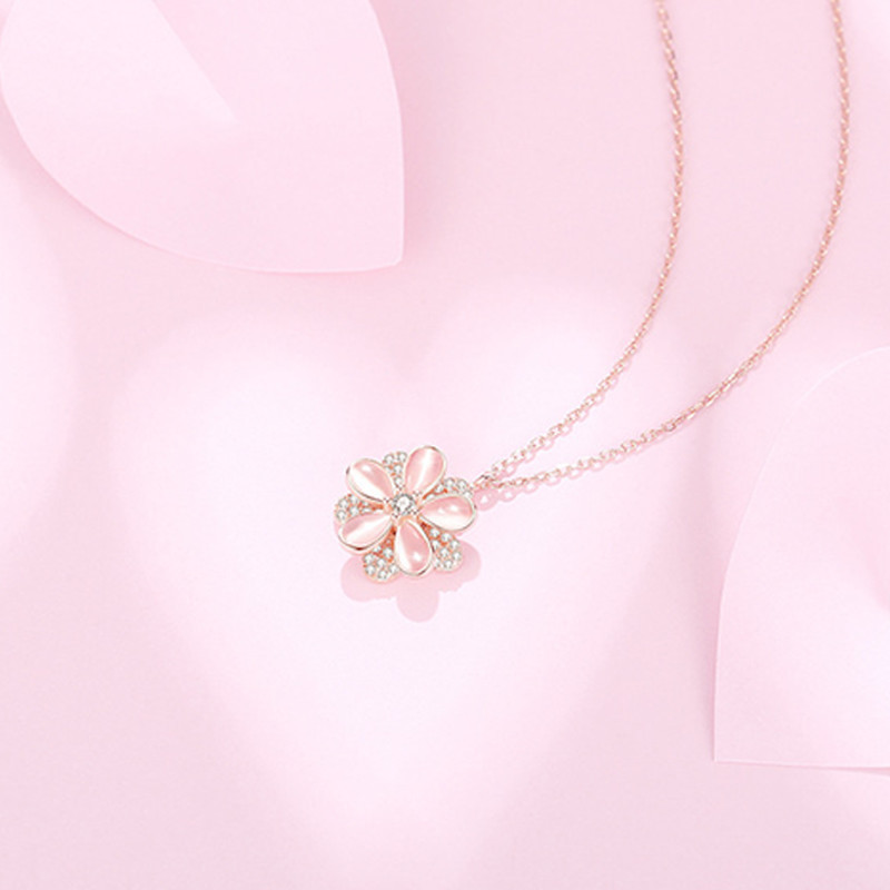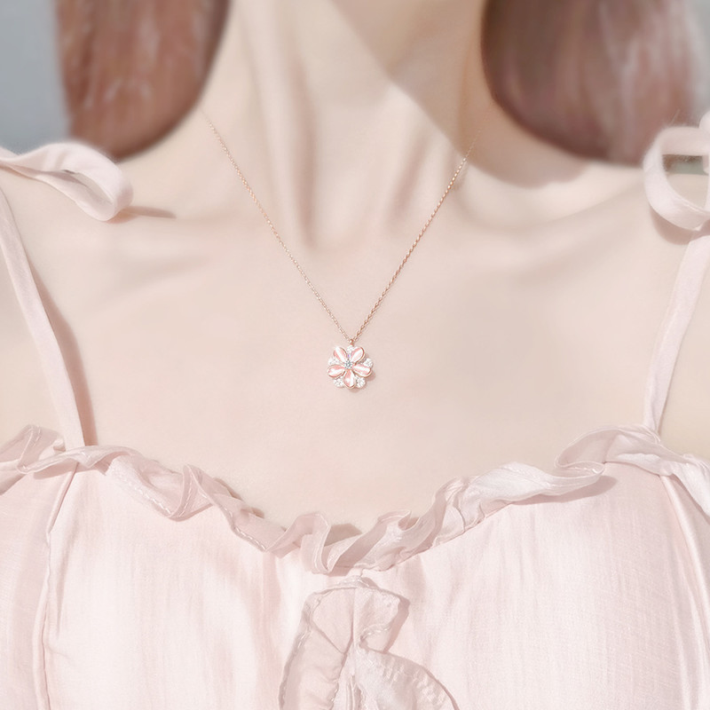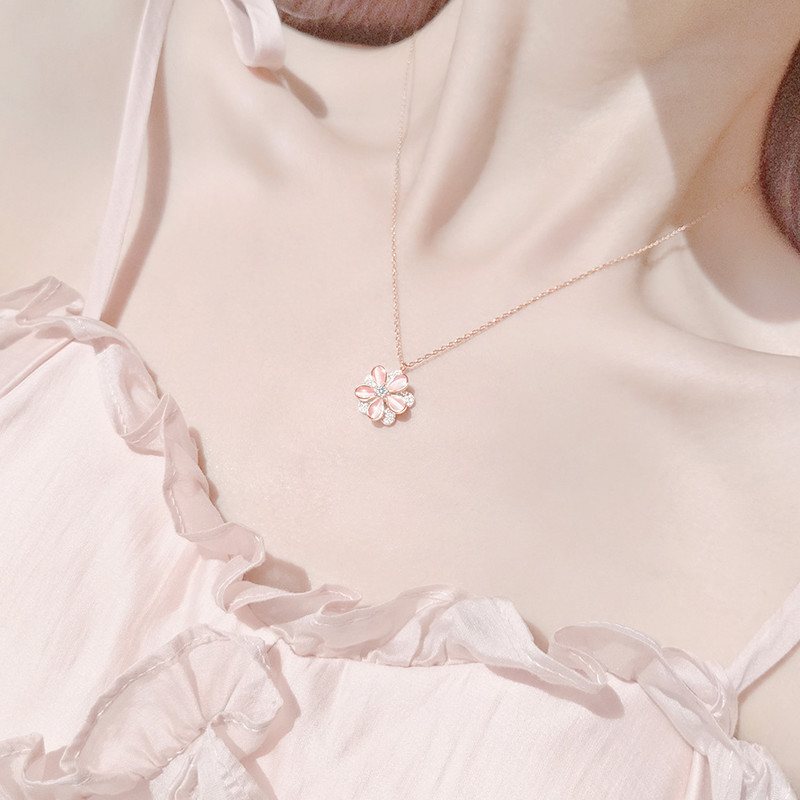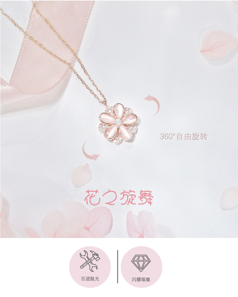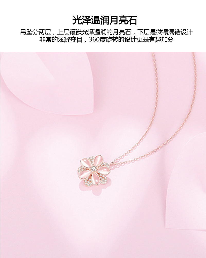 【可旋转项链】梅花锆石微镶带满钻 轻奢玫瑰金女锁骨链 七夕情人节礼物