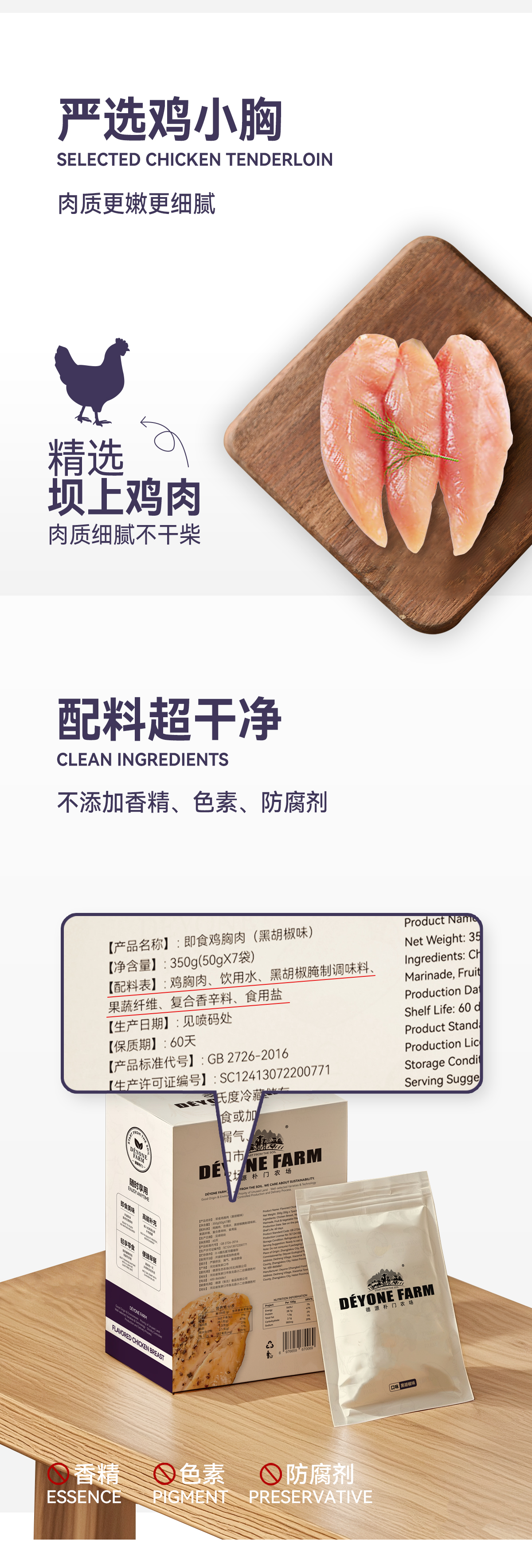 即食黑胡椒味鸡胸肉鲜嫩多汁丝丝入味50g*7袋/盒
