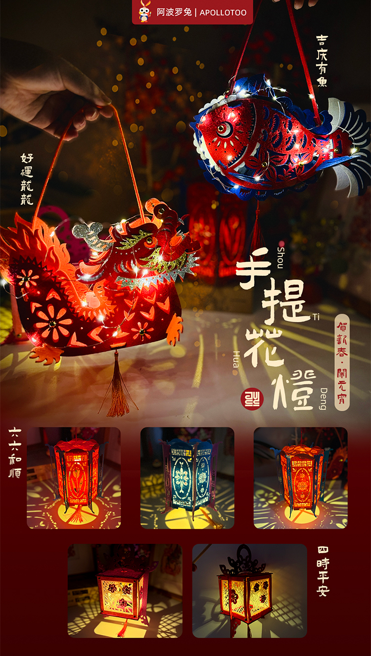 【现货】阿波罗兔2024龙年元宵节手提花灯幼儿园手工