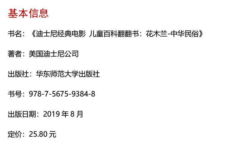 花木兰 中华民俗 迪士尼经典电影 儿童百科翻翻书 儿童科普故事书 改编自迪士尼经典电影 游戏益智