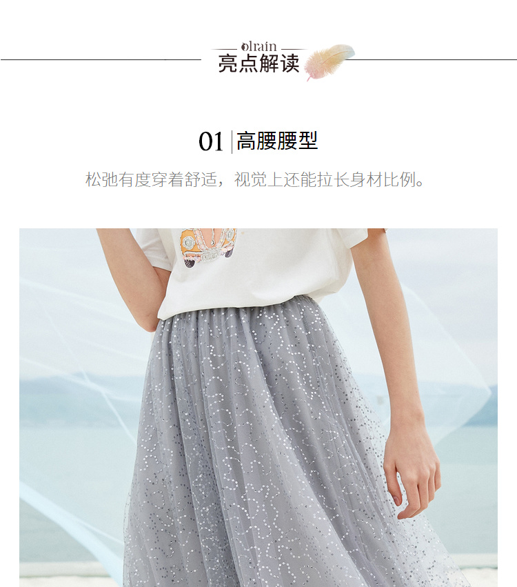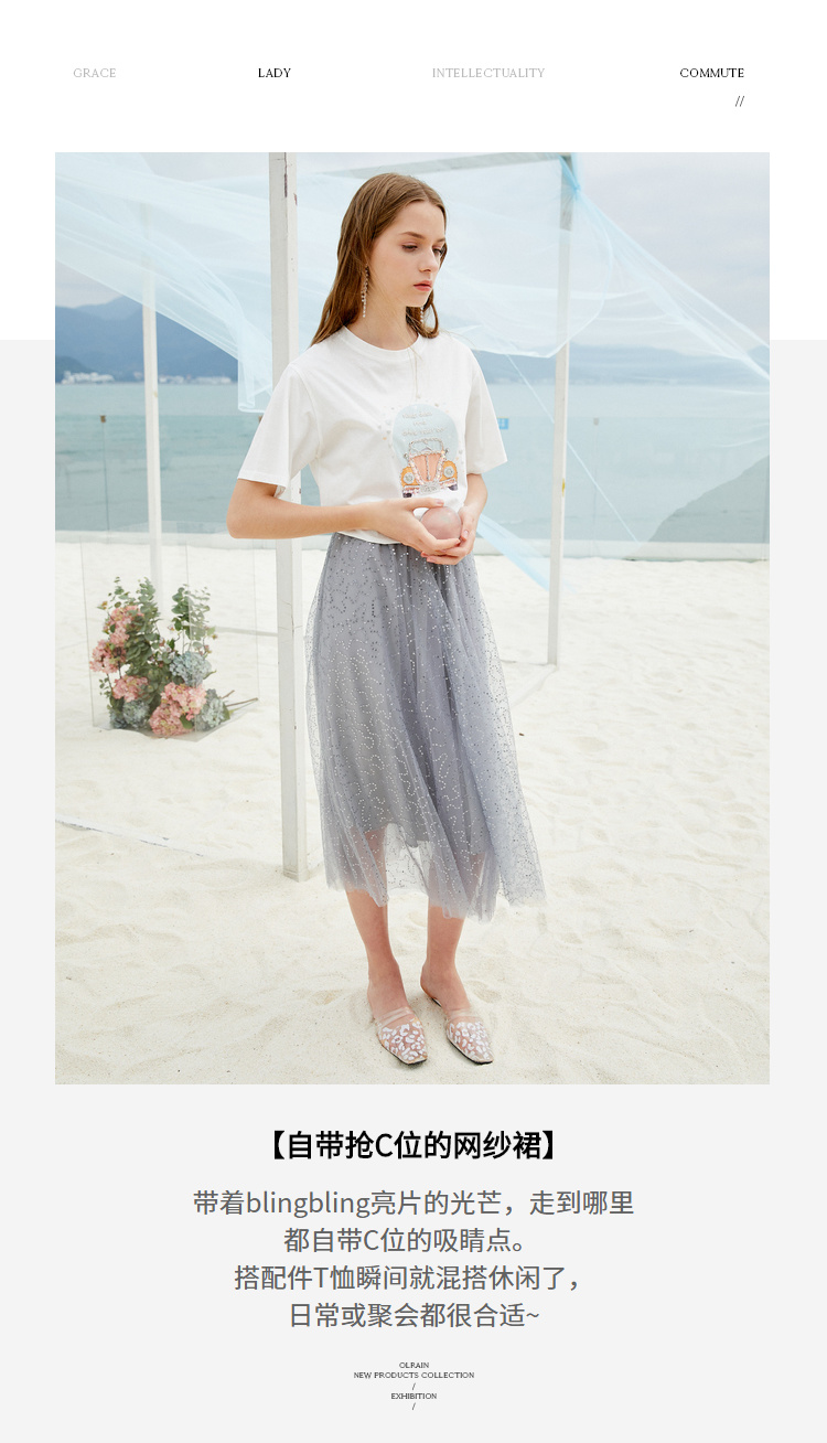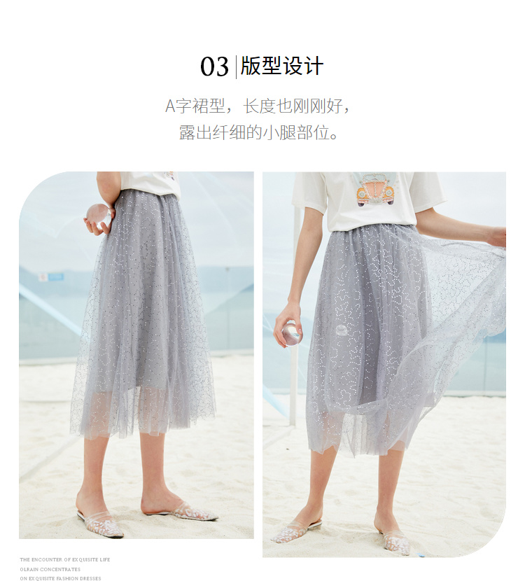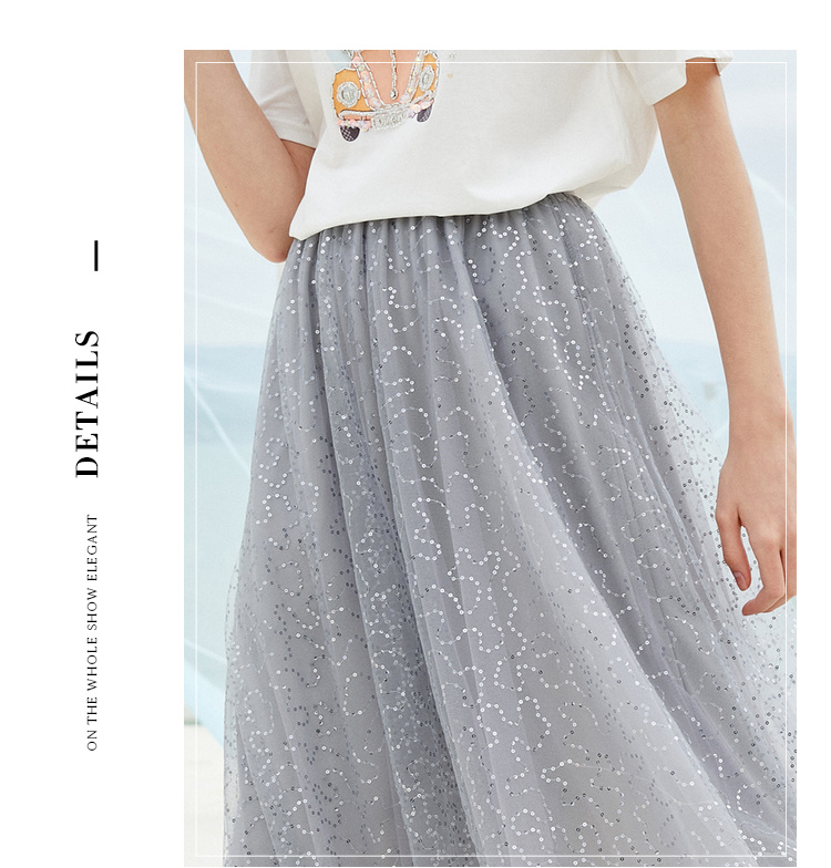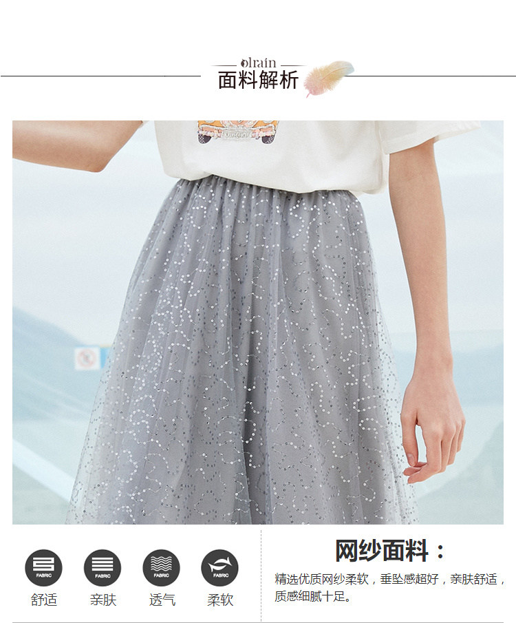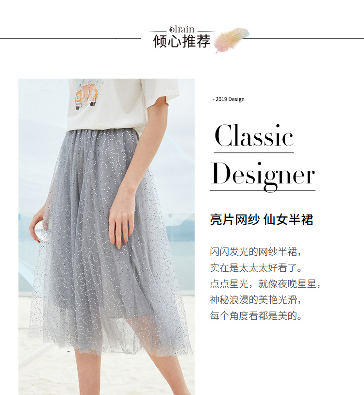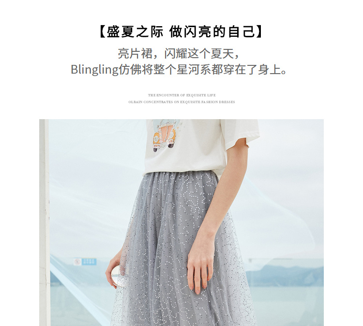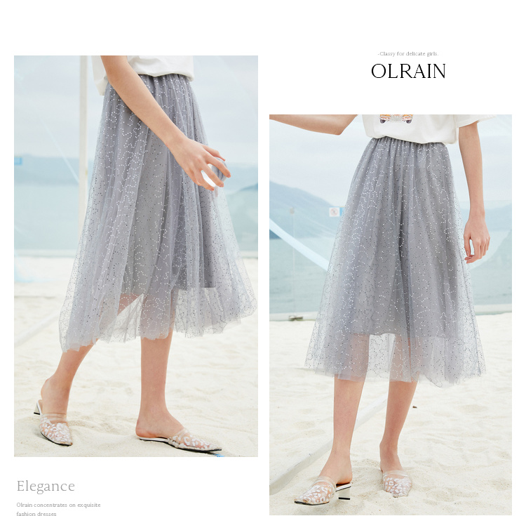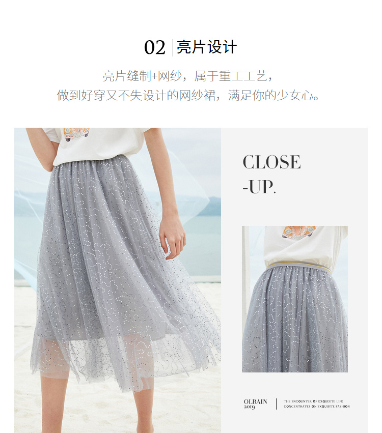 欧芮儿夏装2021新款女装亮片网纱半身裙中长款女高腰a字女裙子