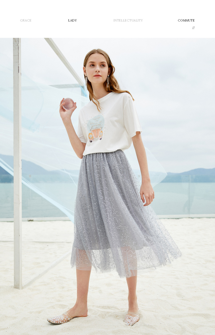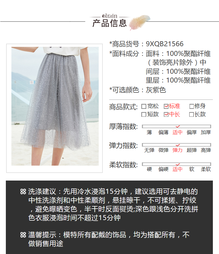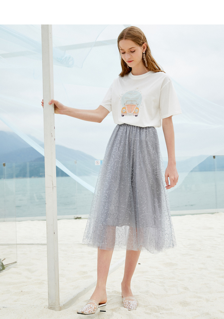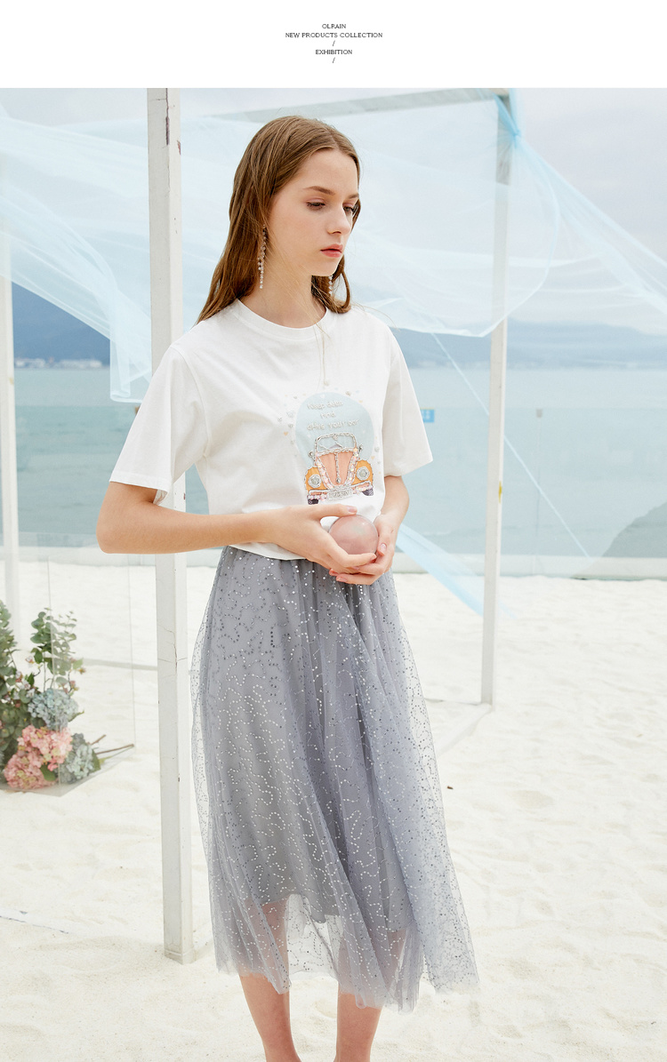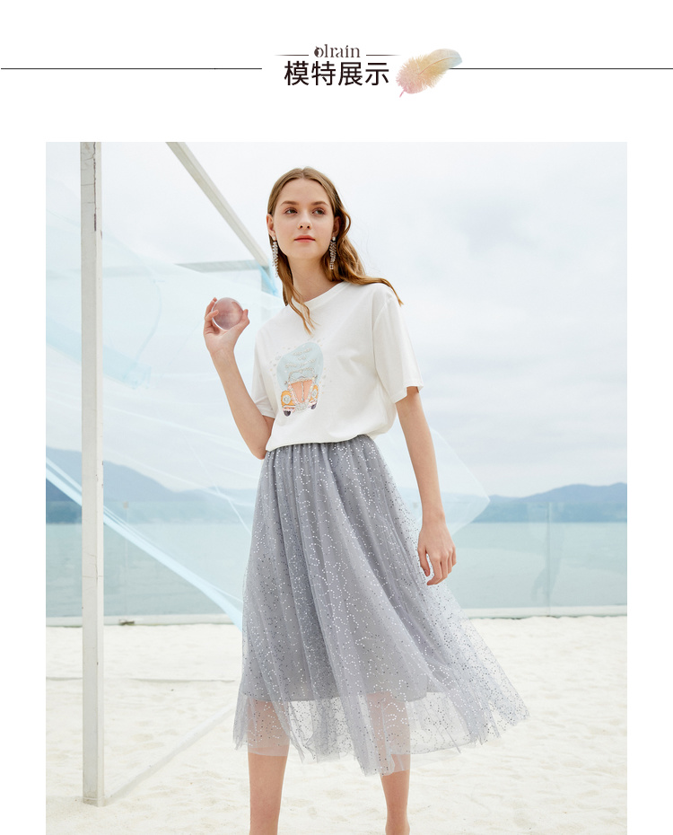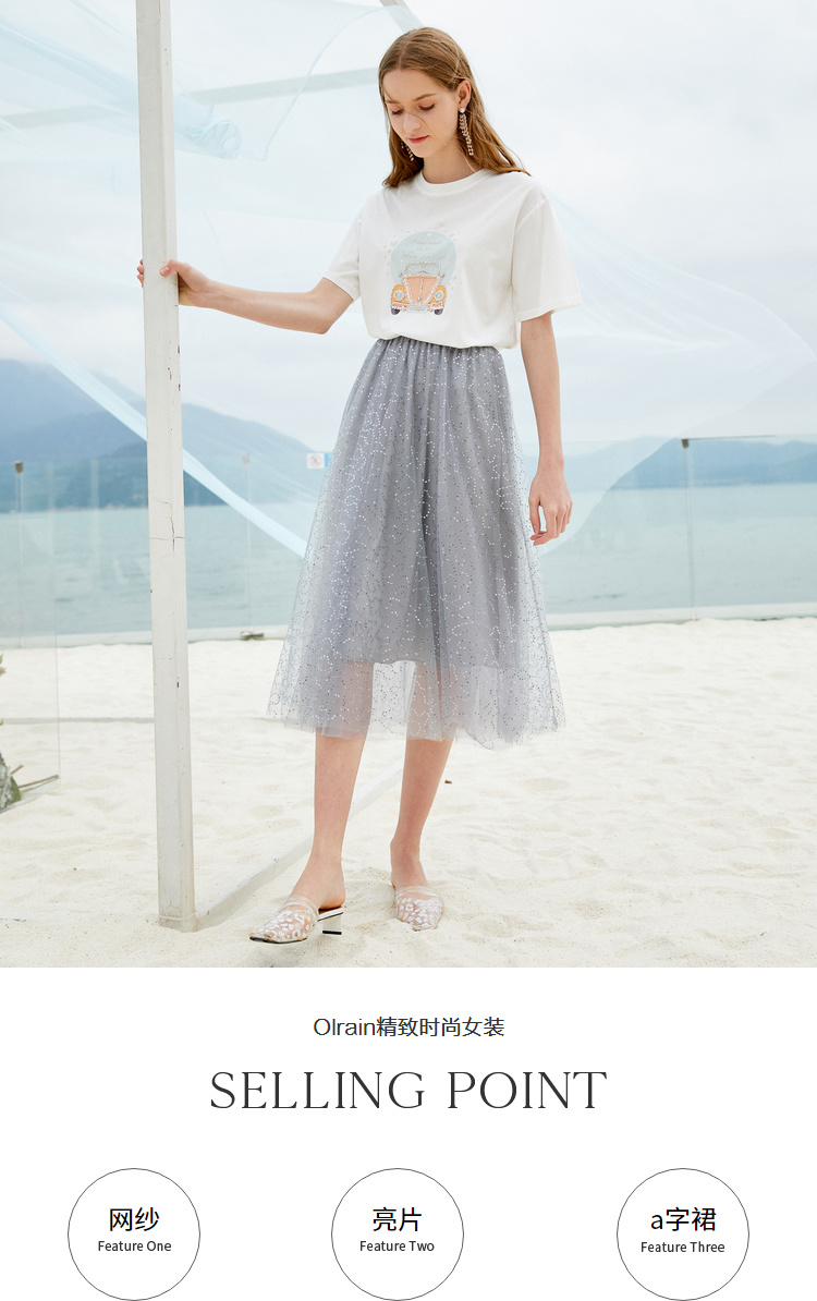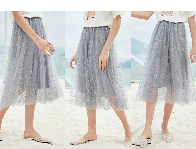 欧芮儿夏装2021新款女装亮片网纱半身裙中长款女高腰a字女裙子