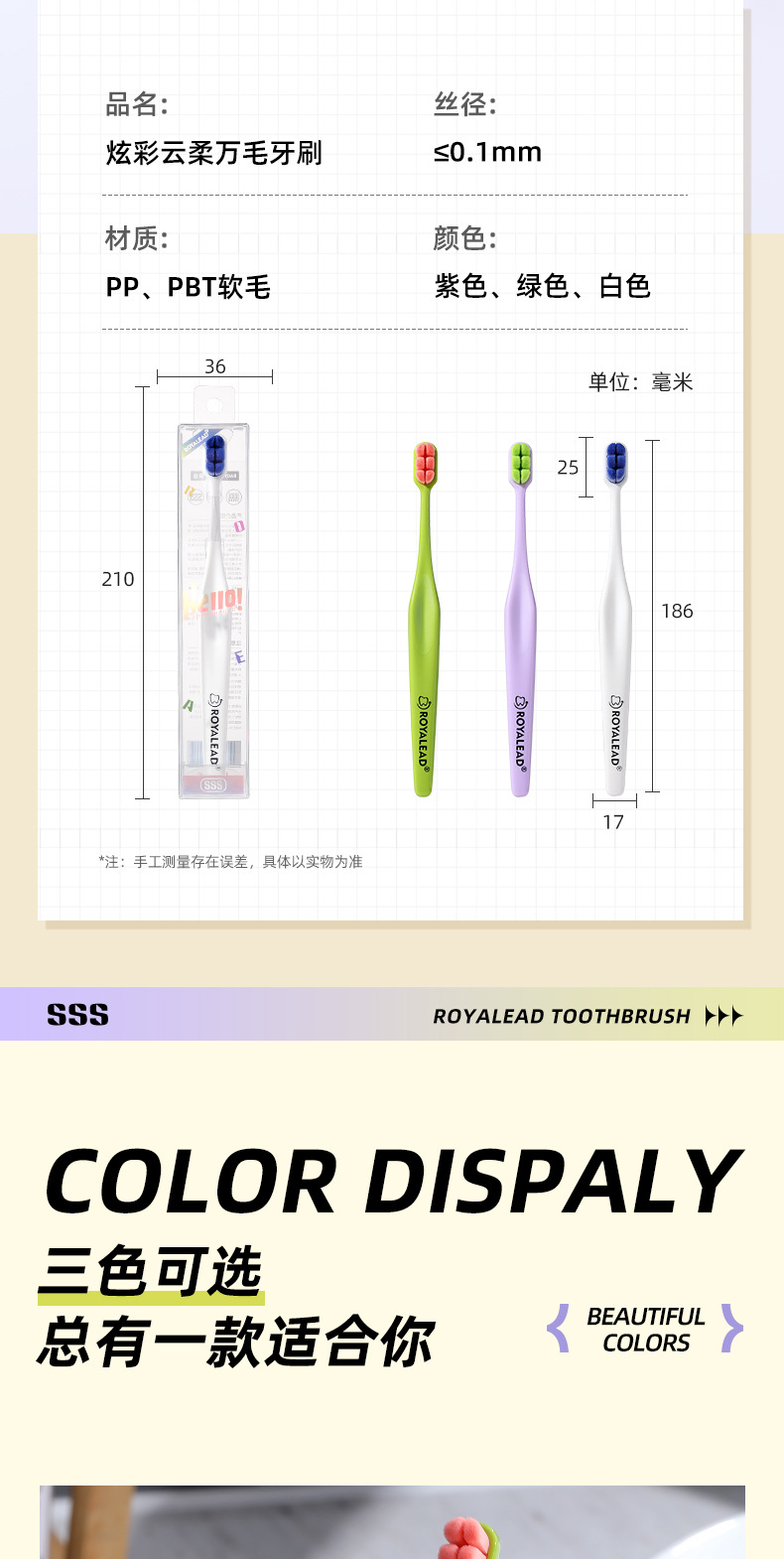 「29.9到手3支!多巴胺万毛牙刷」6束云柔万毛牙刷单支装 情侣家用小头护龈软毛牙刷口腔护理