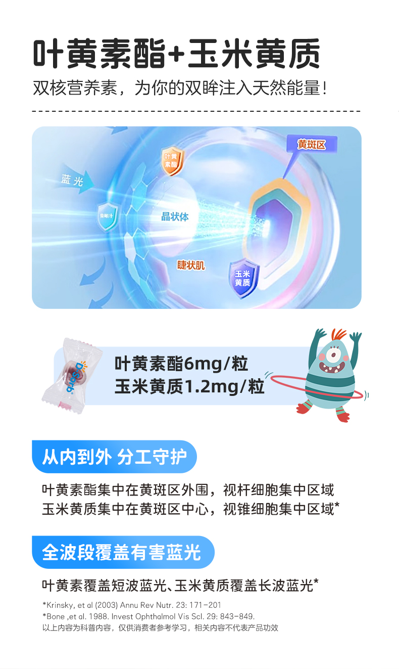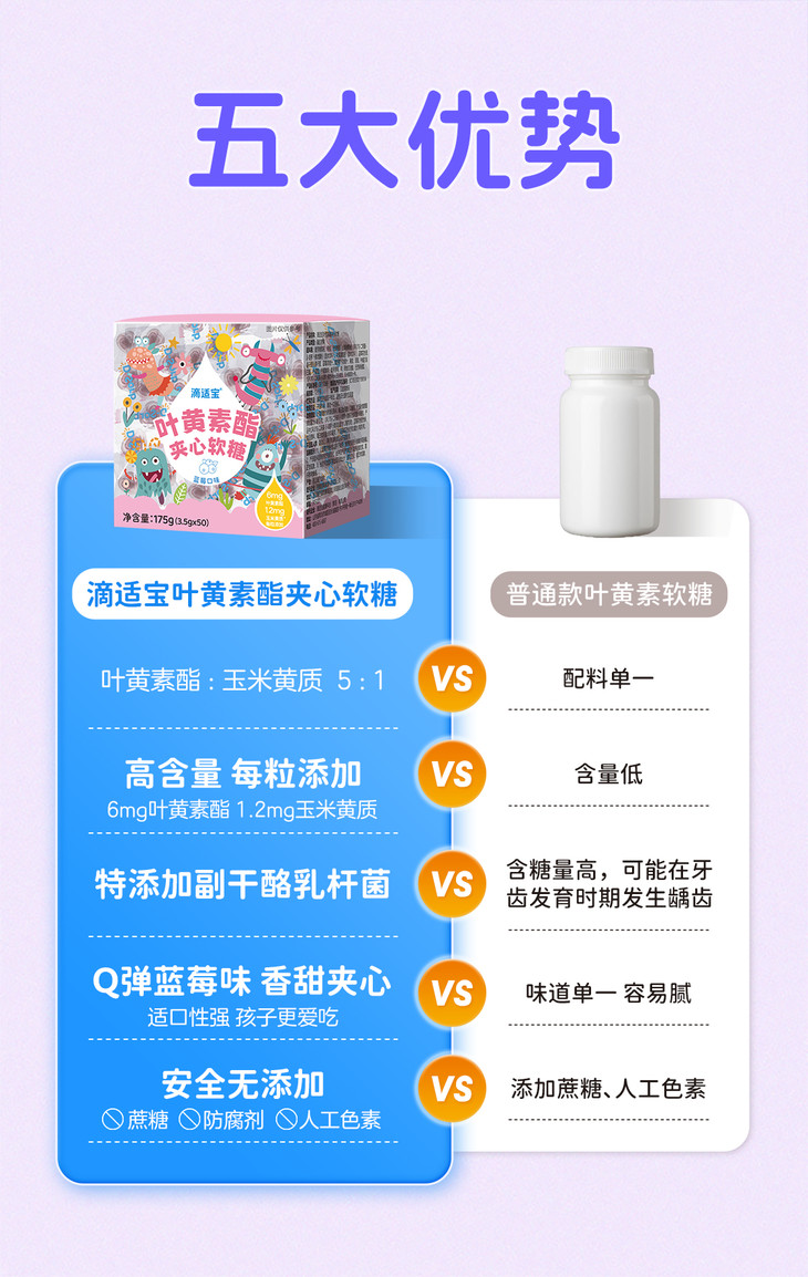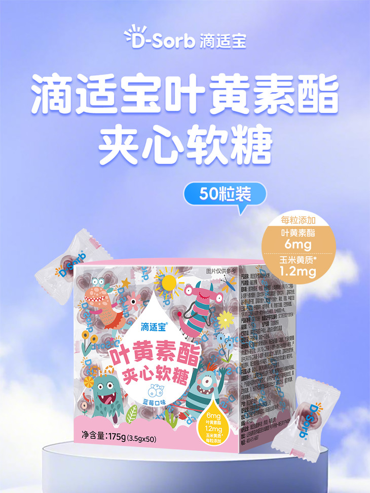 滴适宝(D-Sorb)叶黄素酯软糖蓝莓夹心口味儿童青少年 单盒