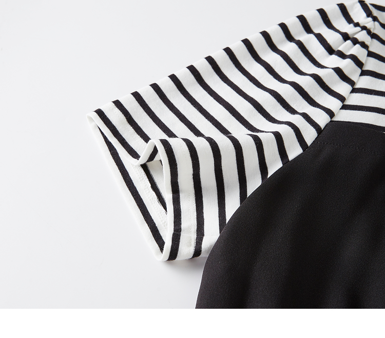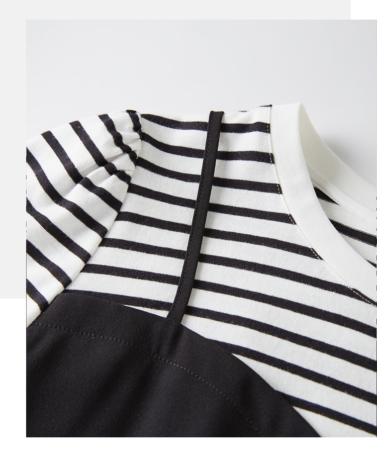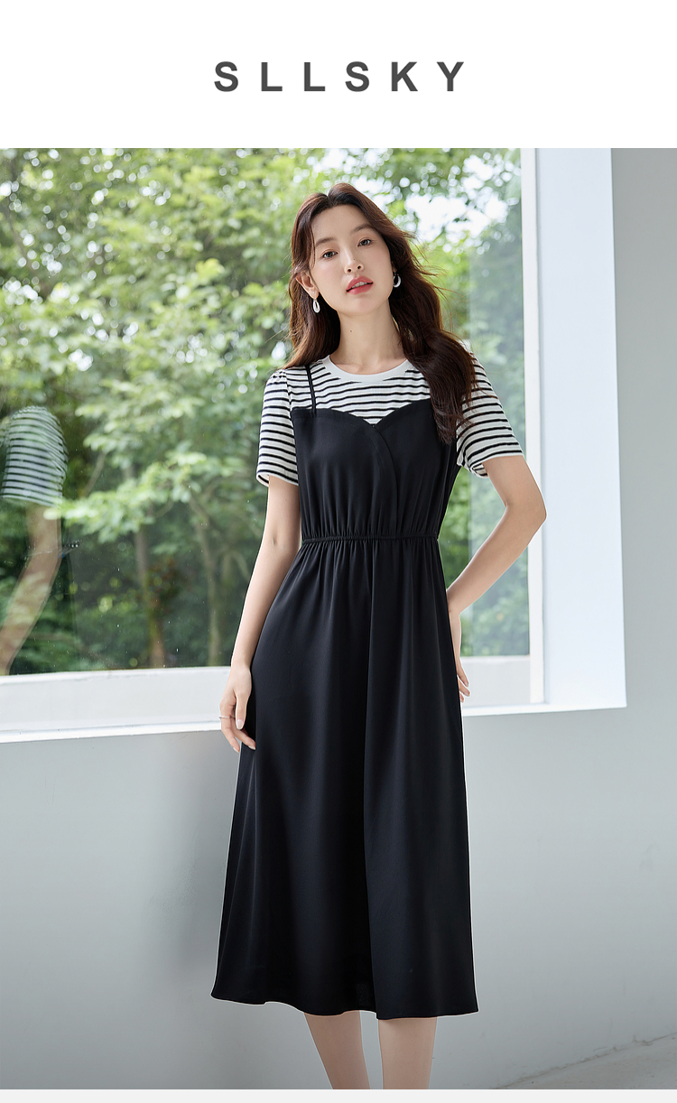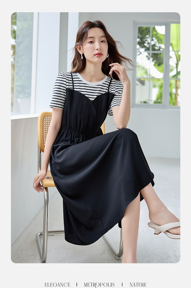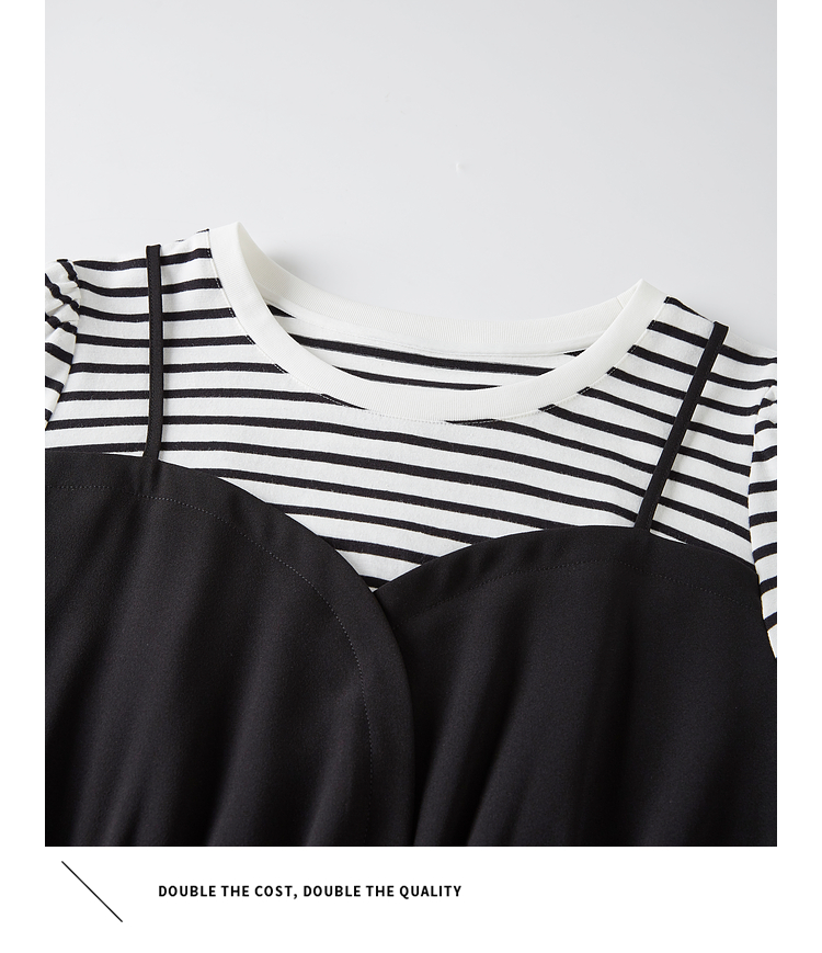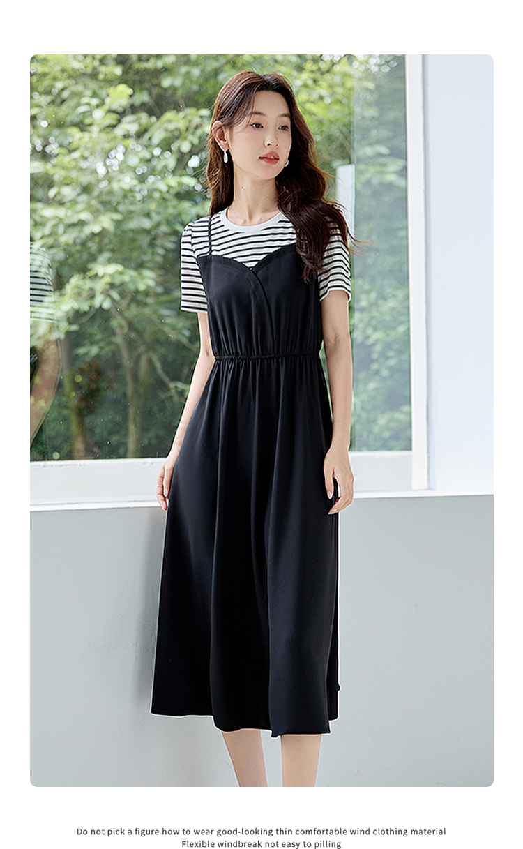 【五折购】熙世界休闲时尚假两件连衣裙2025夏装新款短袖条纹拼接T恤裙子
