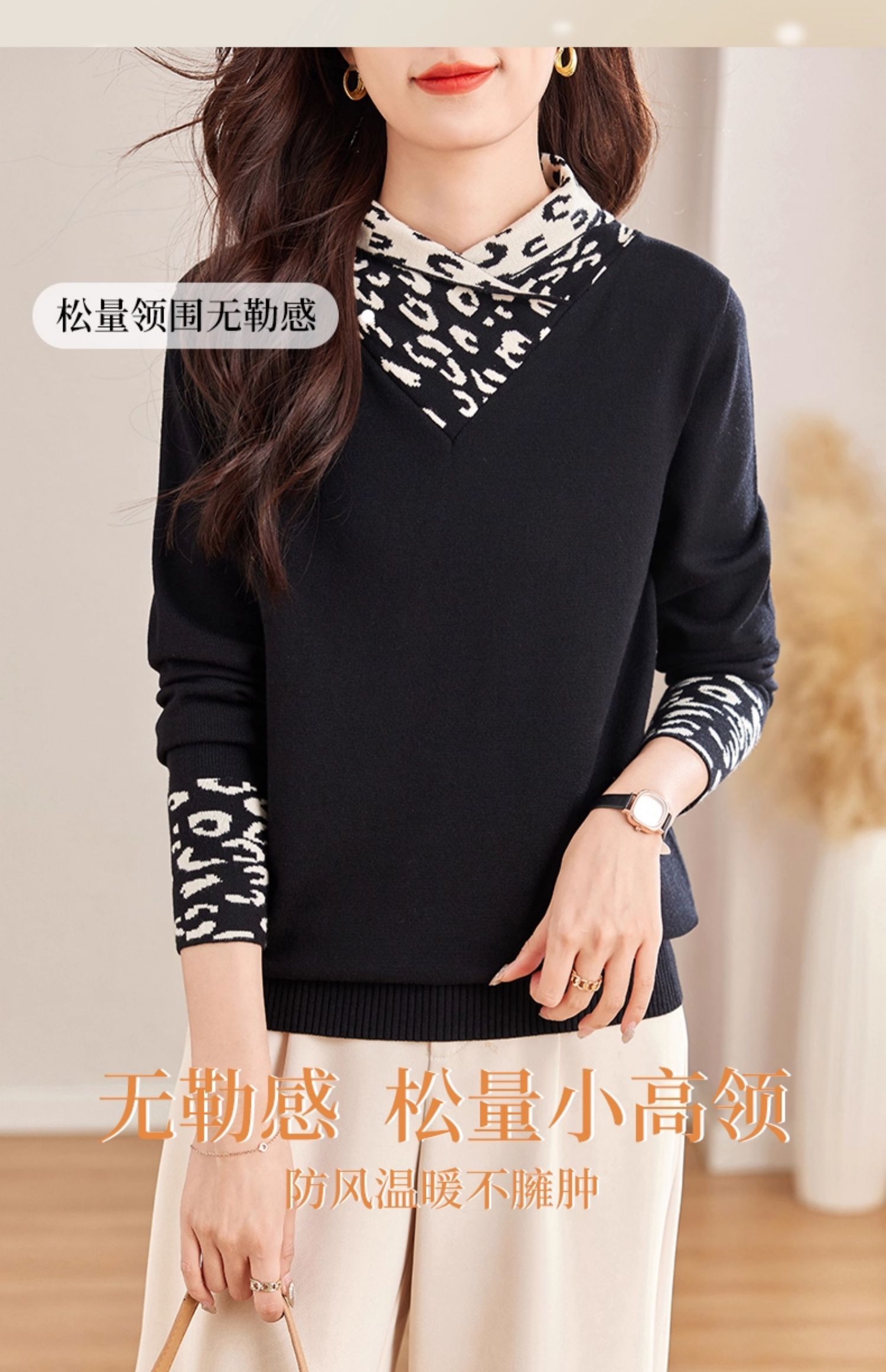黑色半高领毛衣女秋季高级感洋气打底衫内搭套头上衣新款大码女装