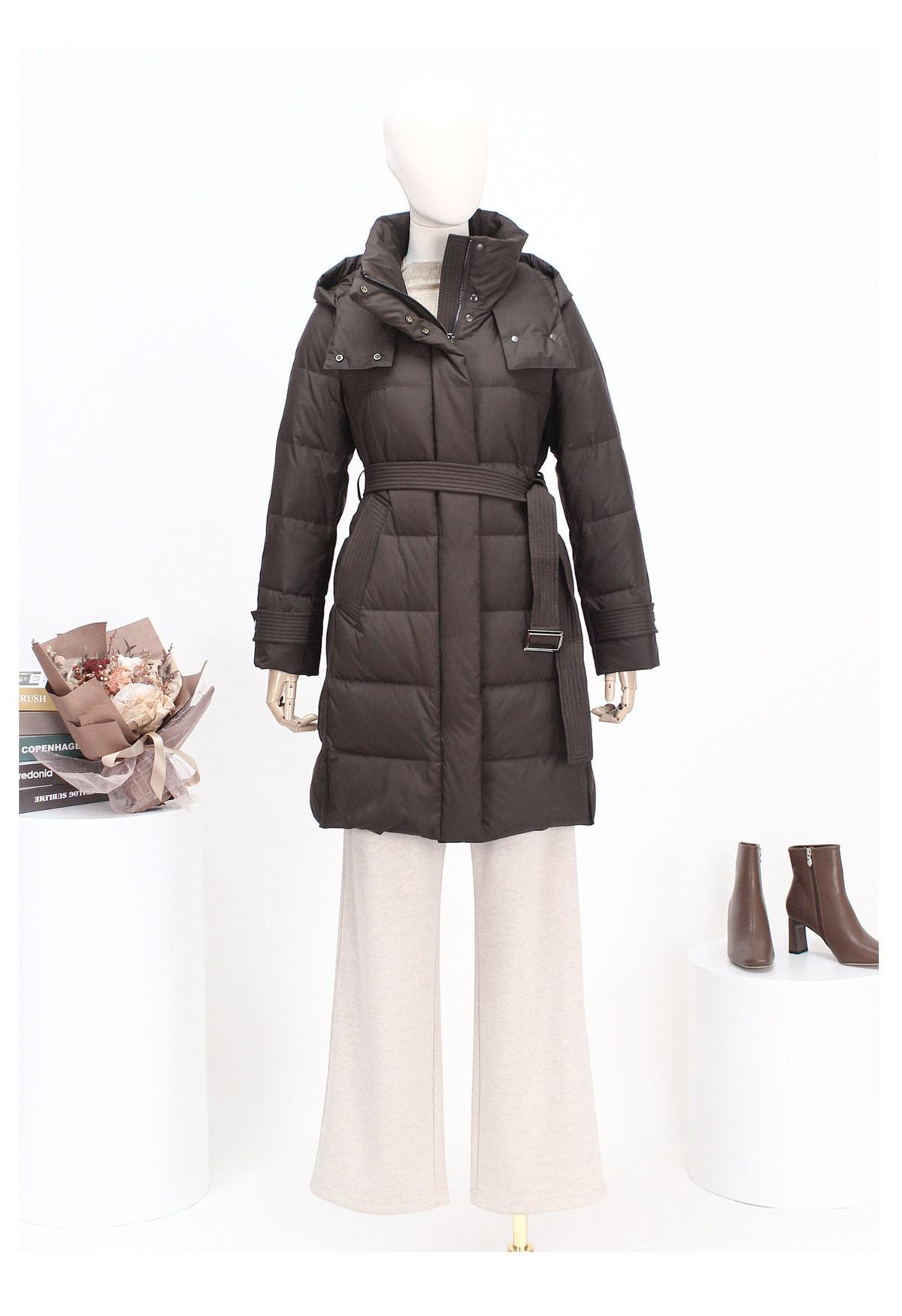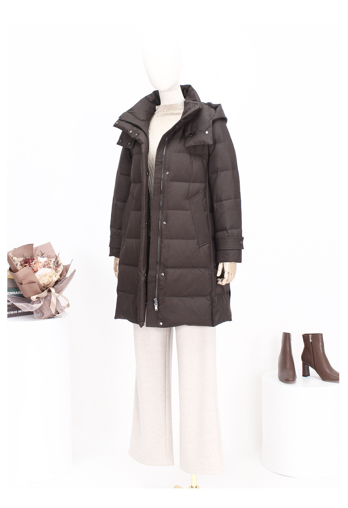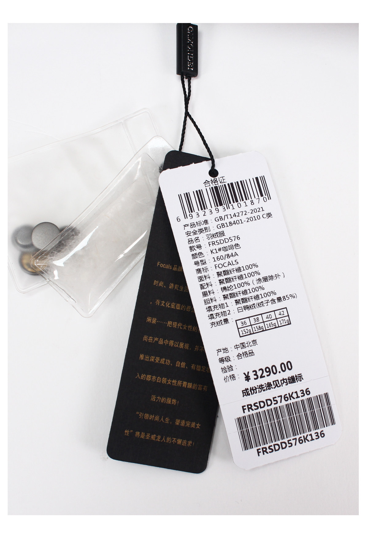 FOCALS新款休闲时尚白鸭绒保暖连帽中长款羽绒服外套FRSDD576K1