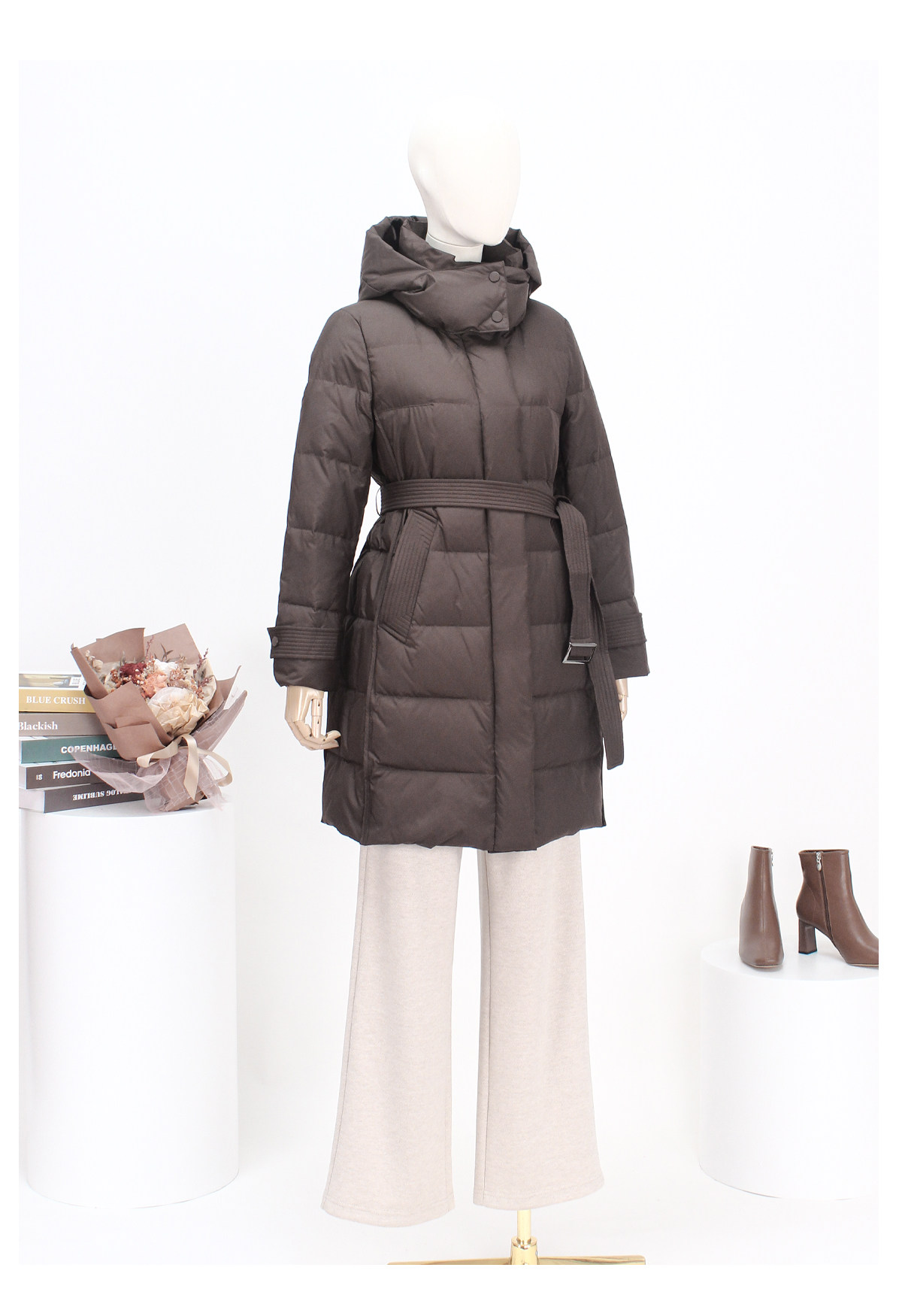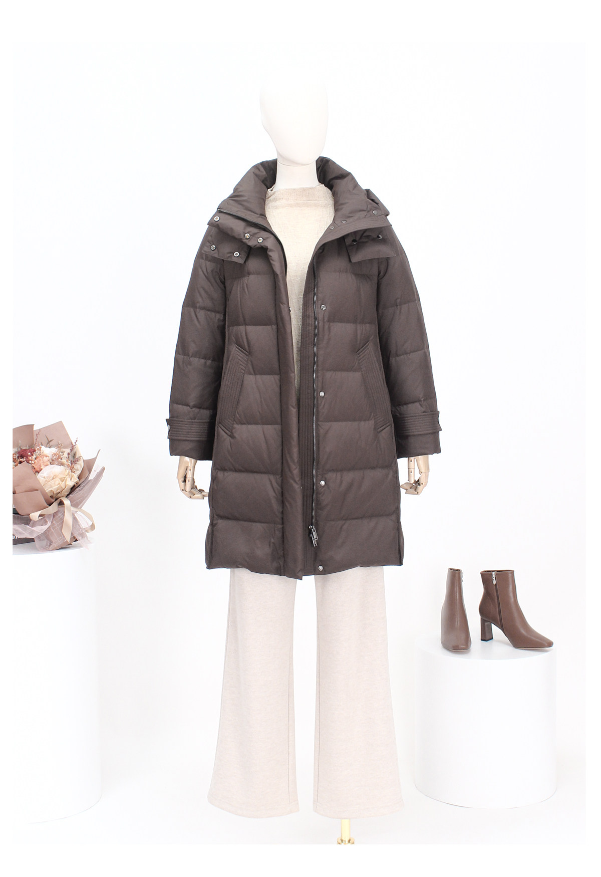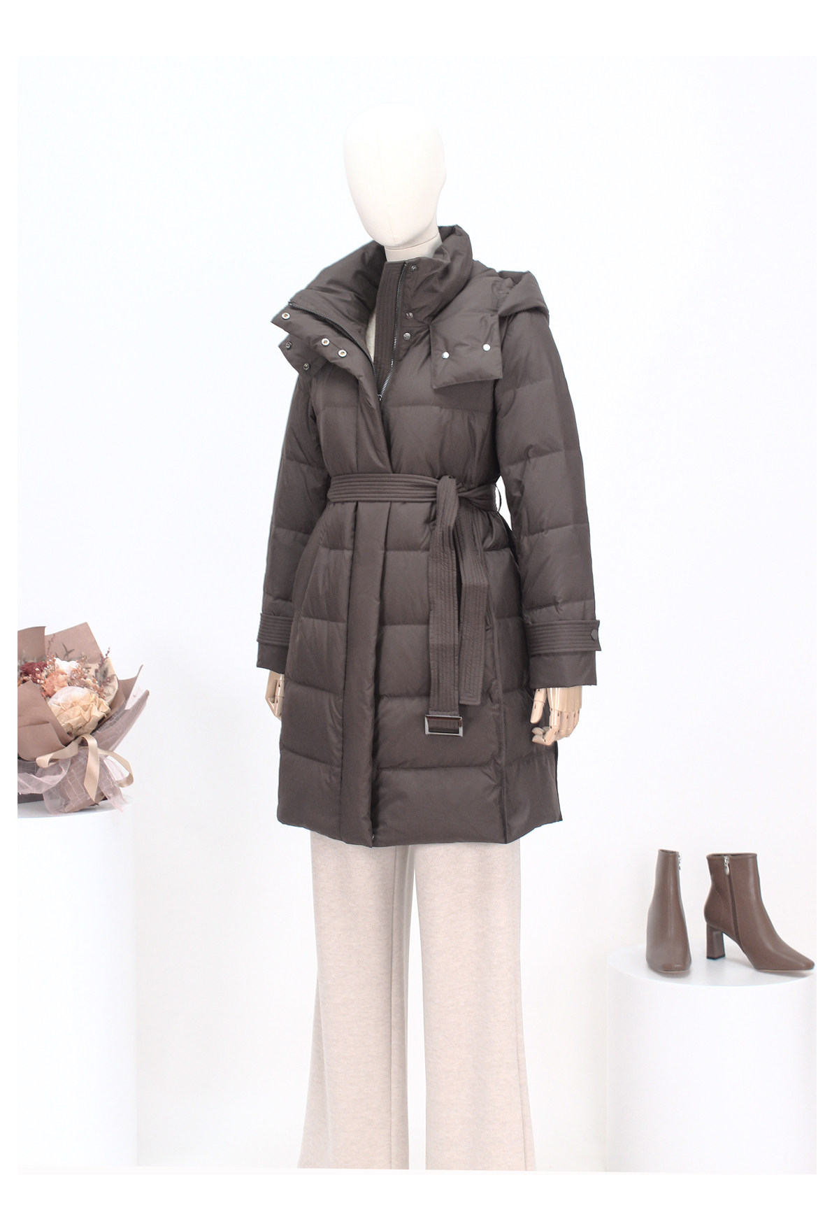 FOCALS新款休闲时尚白鸭绒保暖连帽中长款羽绒服外套FRSDD576K1