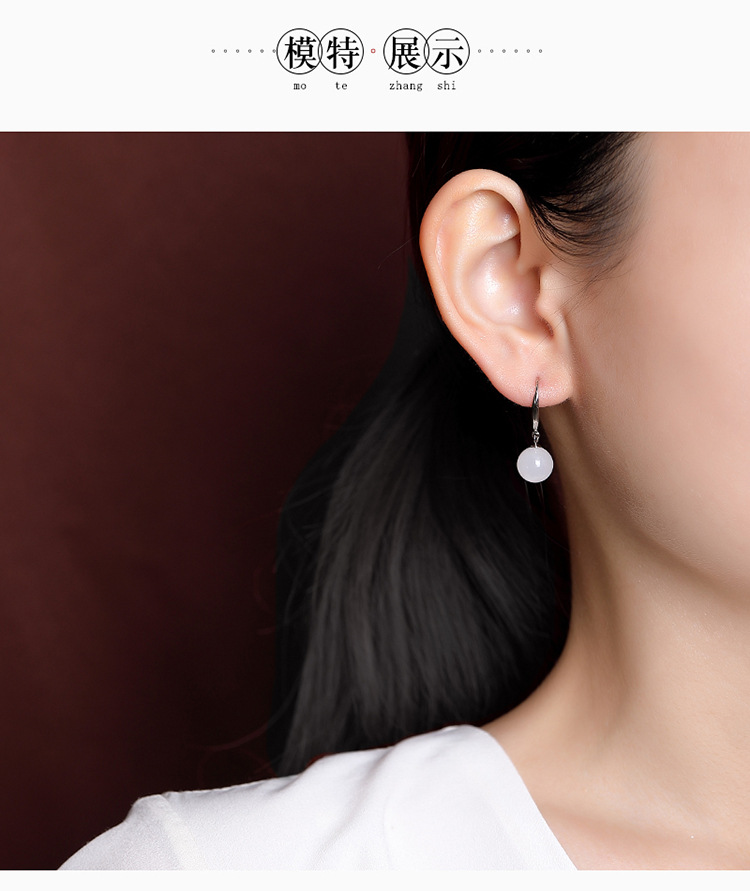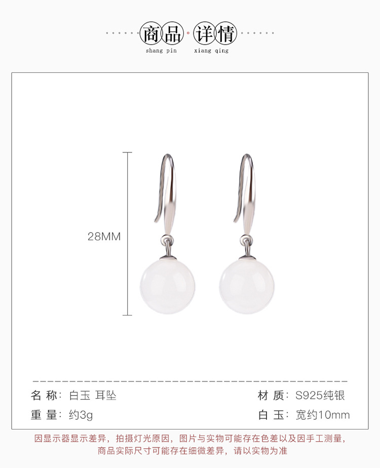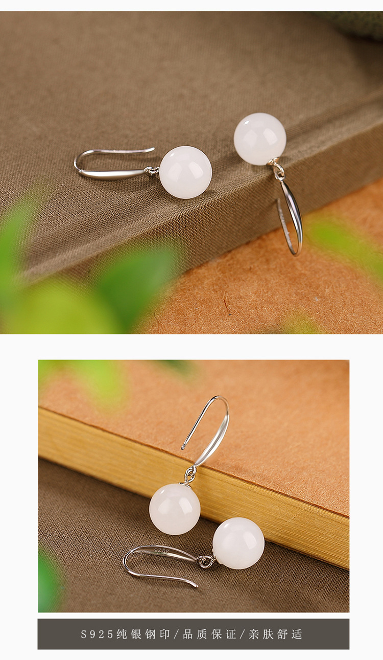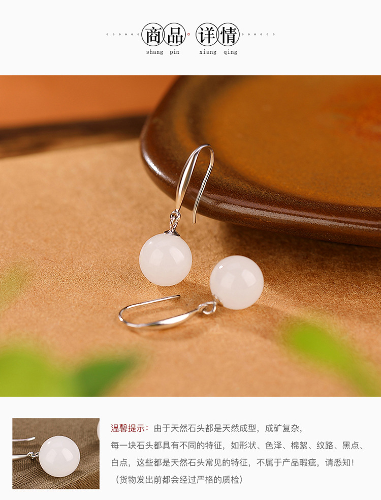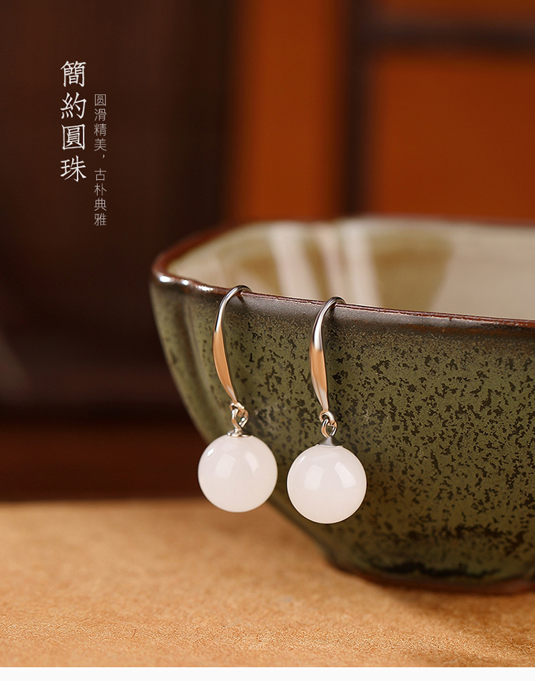 【一池春水】S925银和田玉白玉圆珠耳饰【CW-23088】