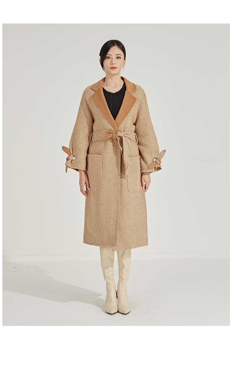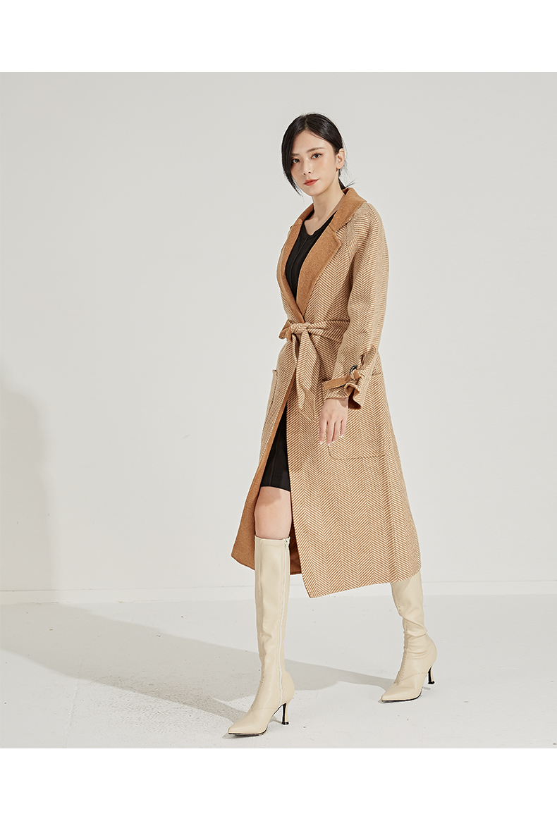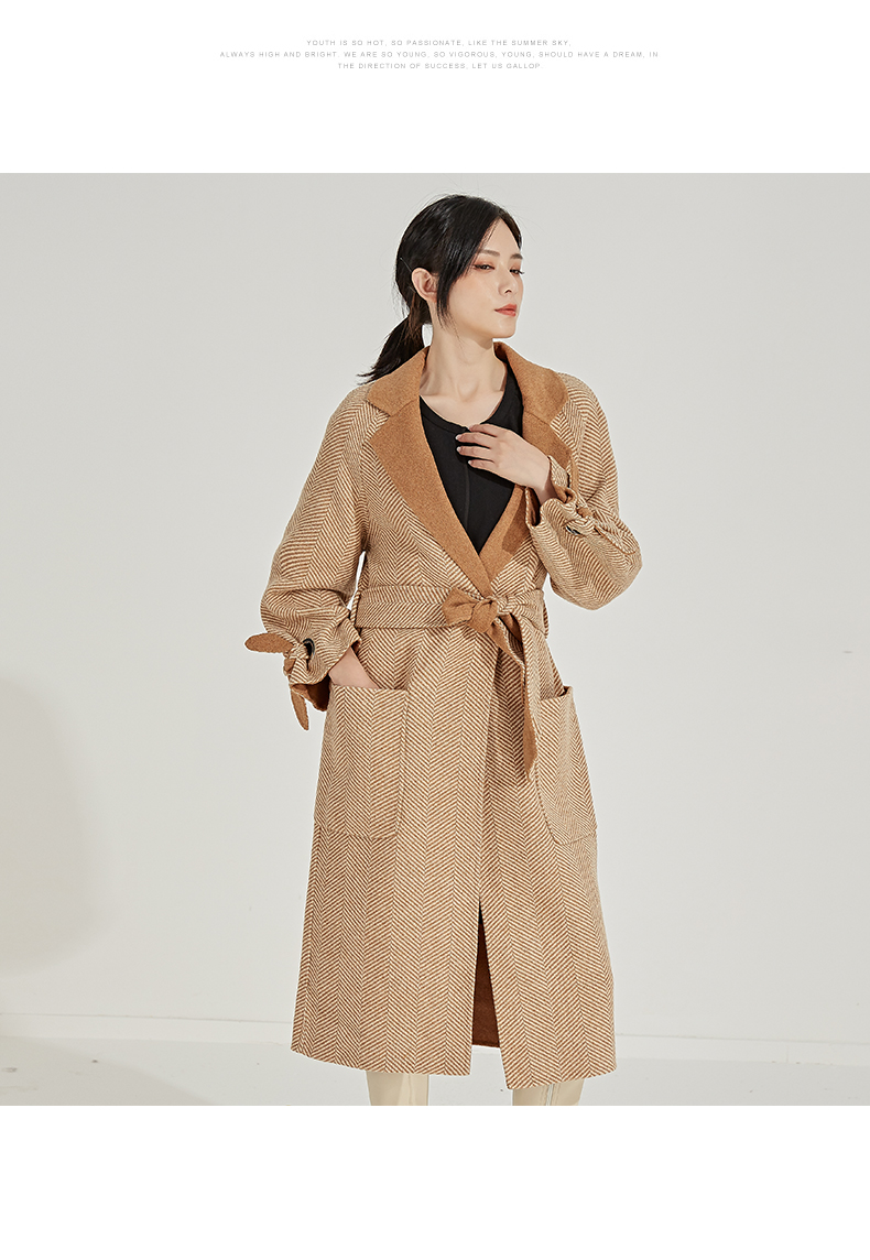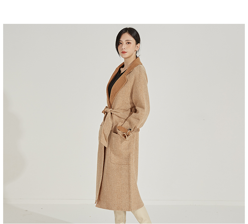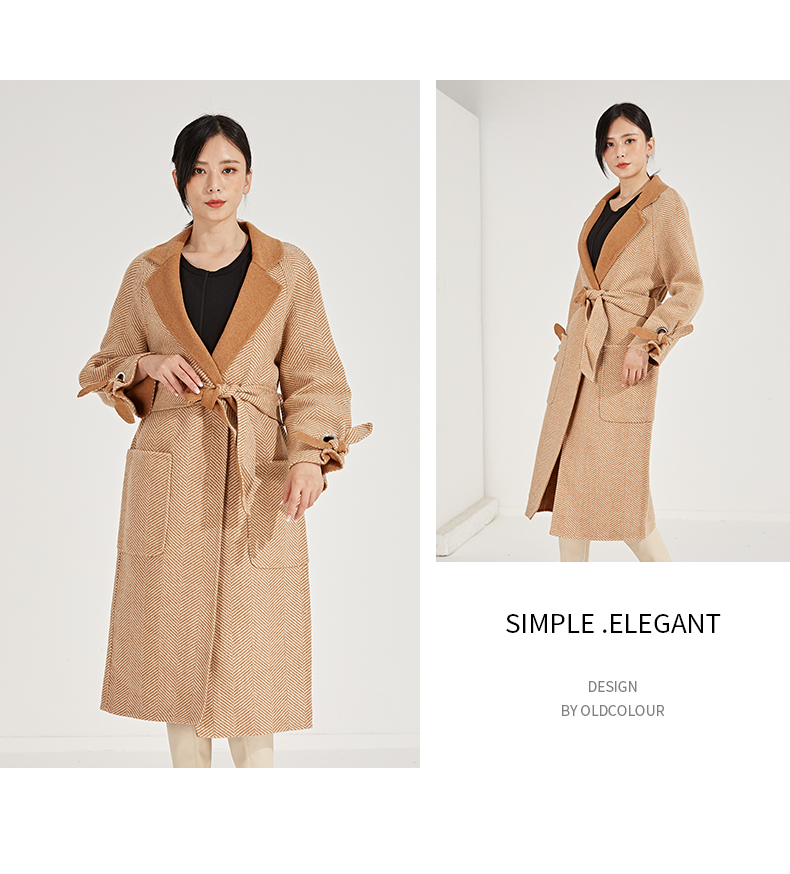 oldcolour冬季人字纹毛呢大衣女中长款K45156531