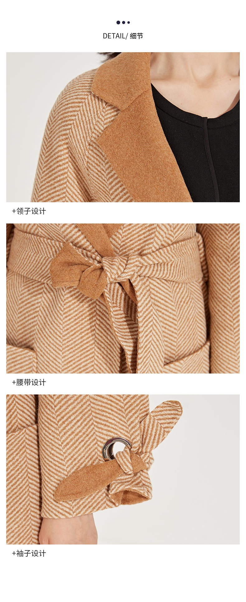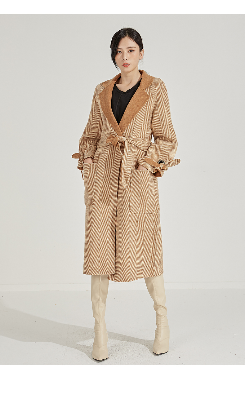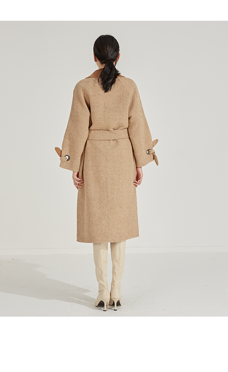 oldcolour冬季人字纹毛呢大衣女中长款K45156531