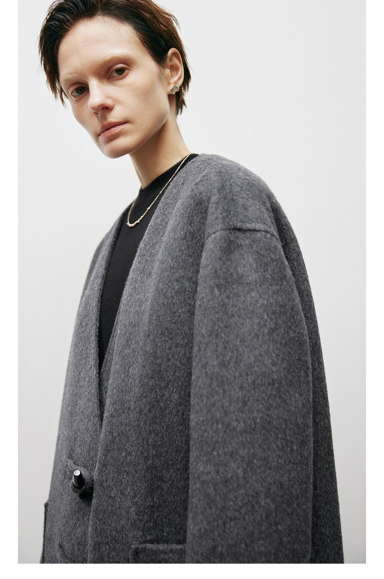【商场同款】麦檬冬长高级灰色外套大衣5EA170491