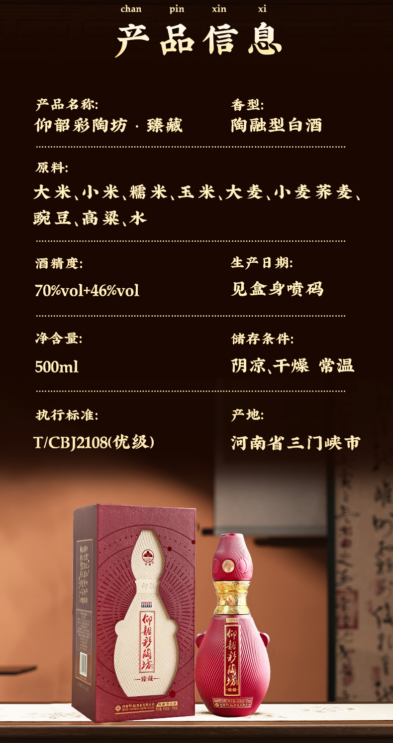 【预售】仰韶 彩陶坊 臻藏 陶融型白酒整箱六瓶 46度酒体+70度酒头450ml+50ml
