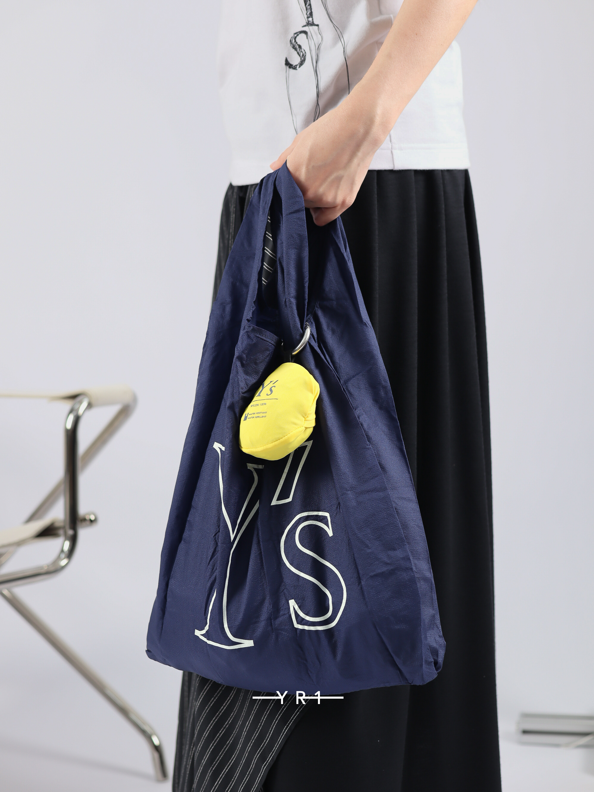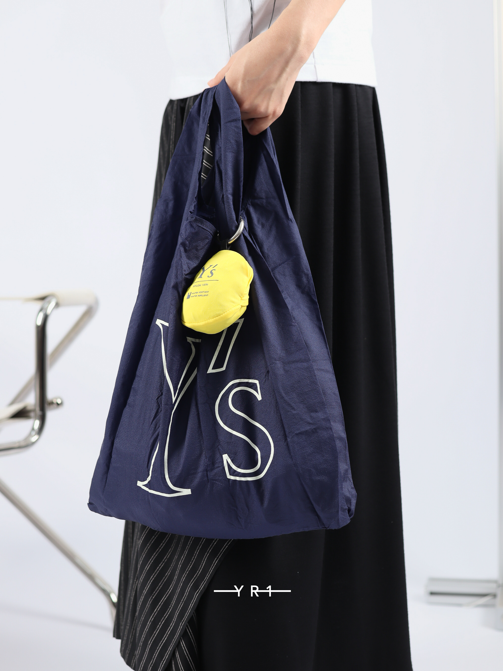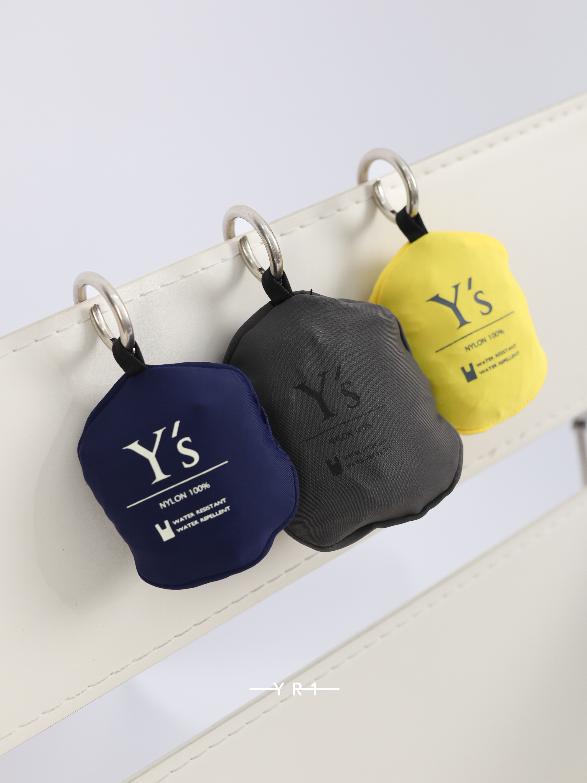 Y 字标志采用颜料印花,可轻松压入弹力袋中,