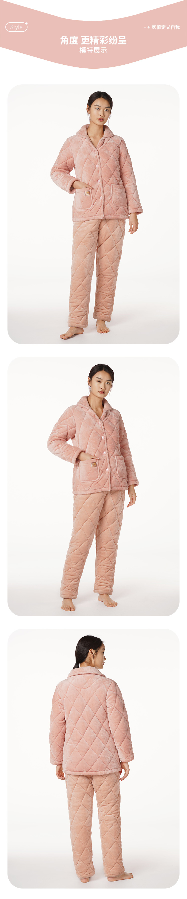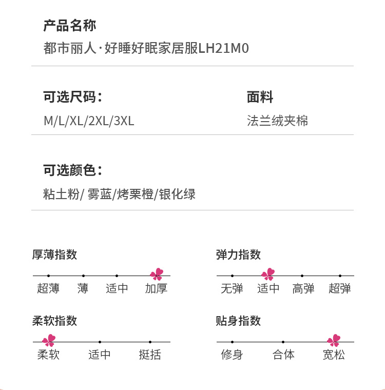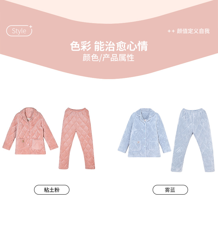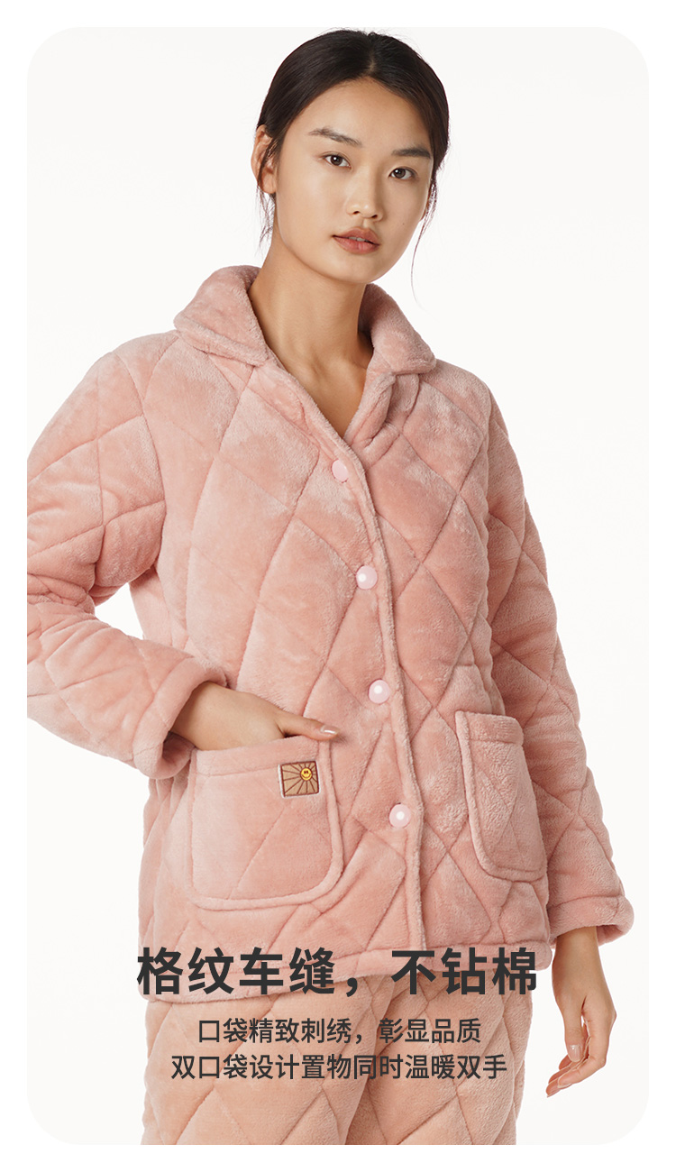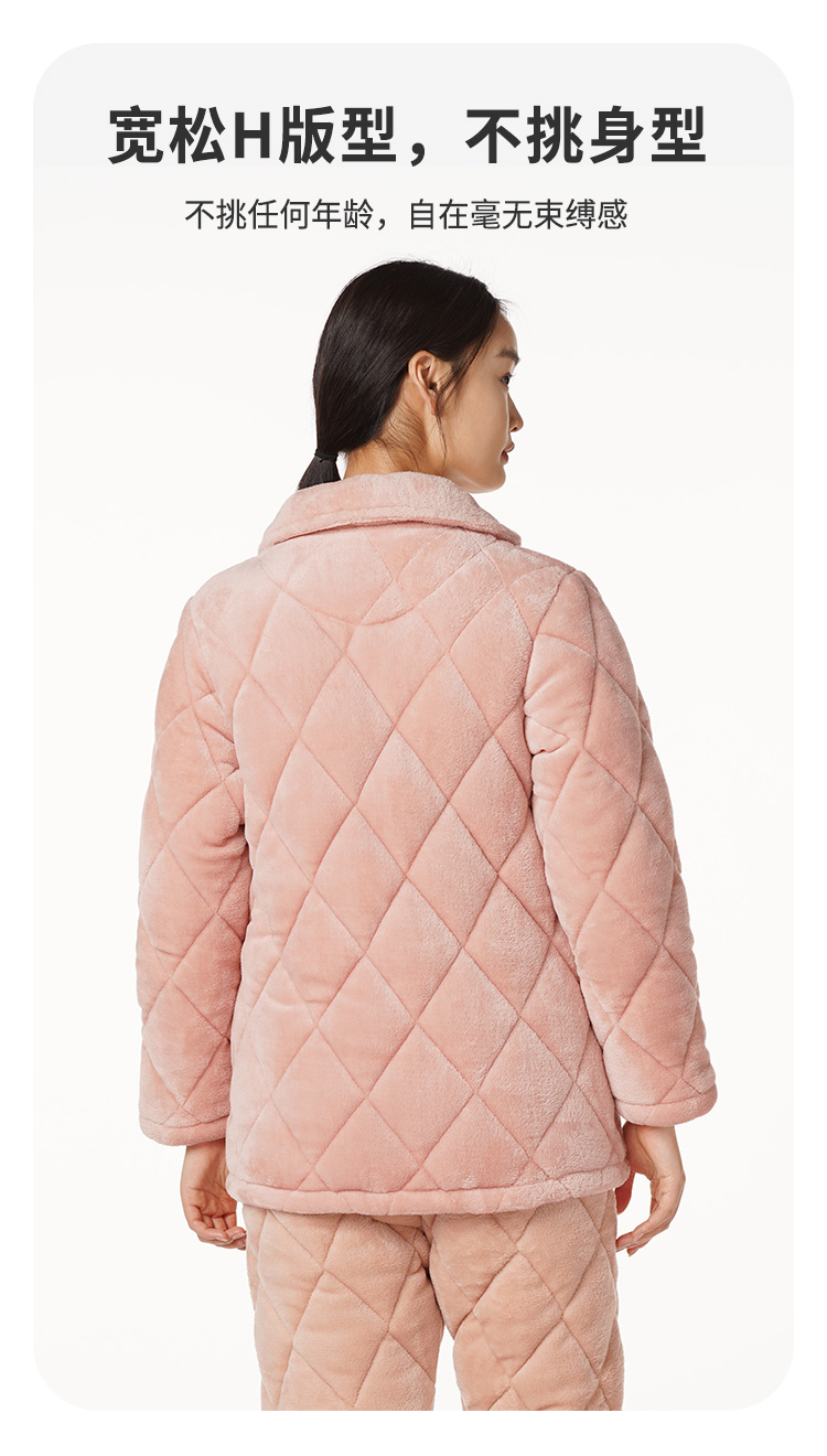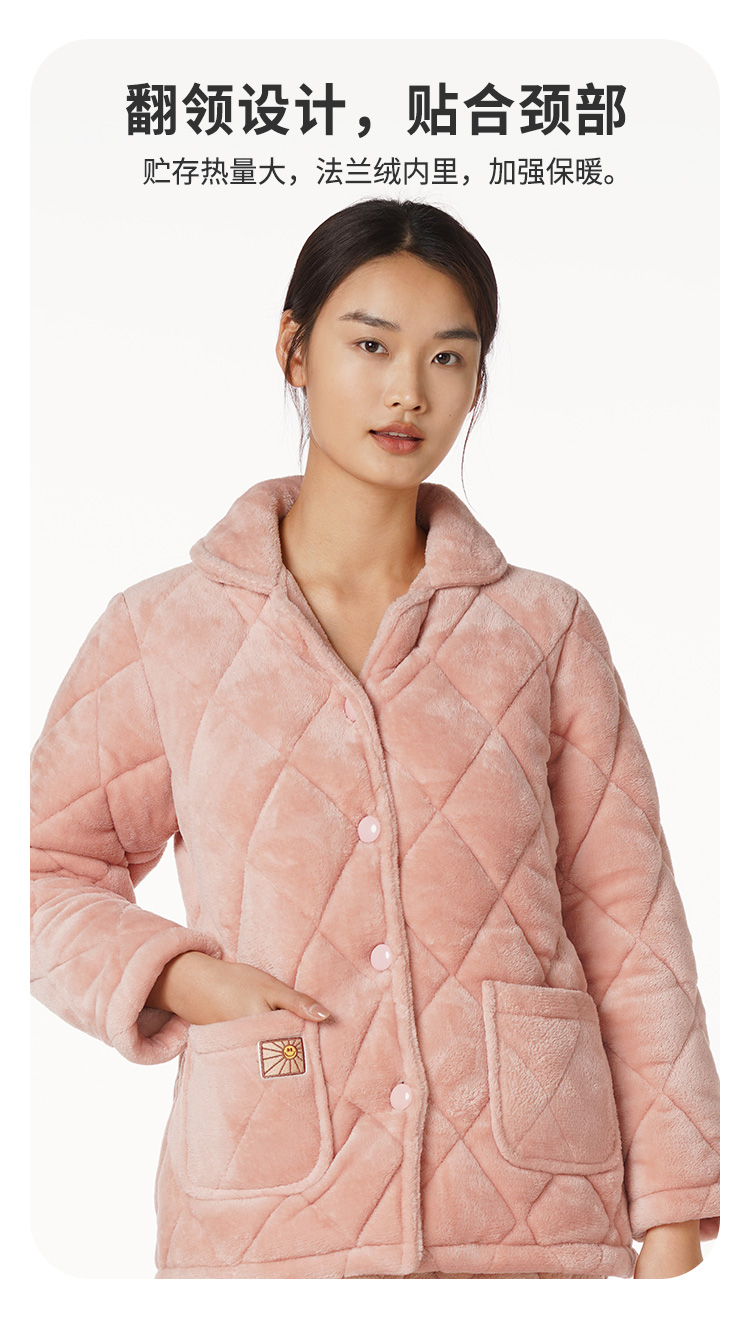 都市丽人生活家居女士特价加厚夹棉套装法兰绒夹棉加厚家居服长袖睡衣LH21M0