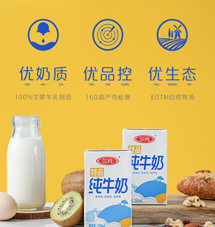 三元 特品 纯牛奶 250ml*24包 礼盒装 自控牧场 家庭量贩装 包邮