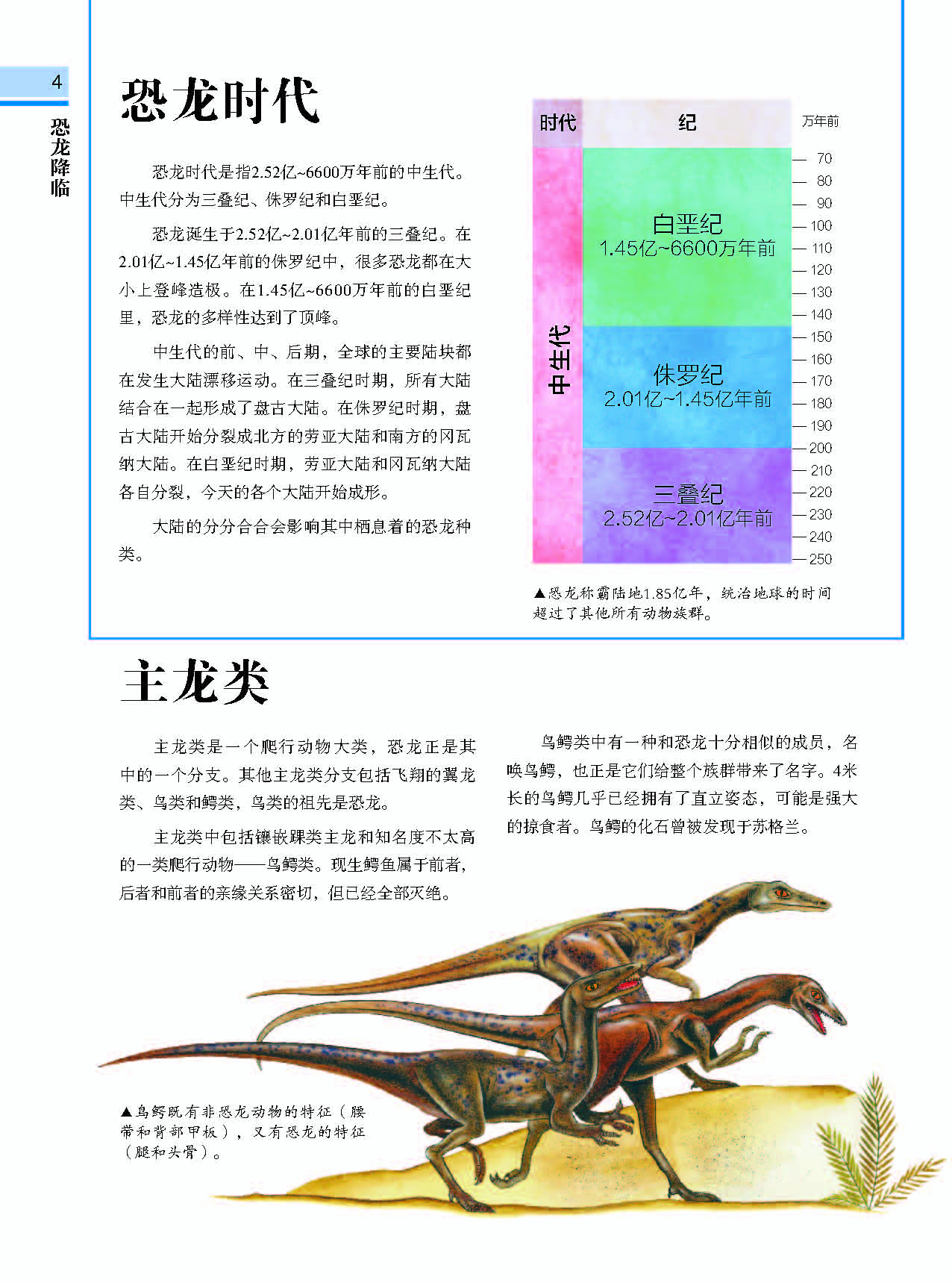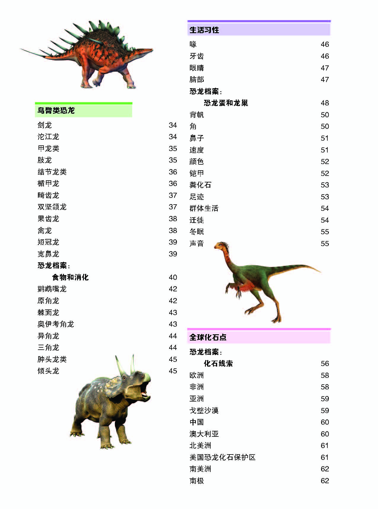 本书从恐龙时代的早期开始一直到爬行动物的最终消亡的时期,介绍不同时期的不同的恐龙。书中内含5页透明胶片页,通过这些透明的胶片页可以看到不同时期恐龙的不同身体构造和习性等。