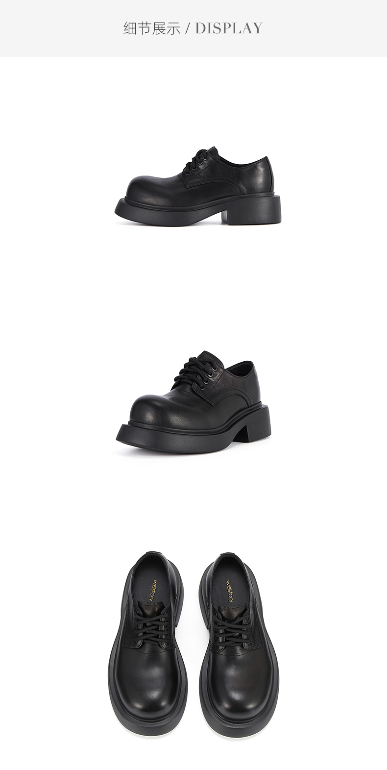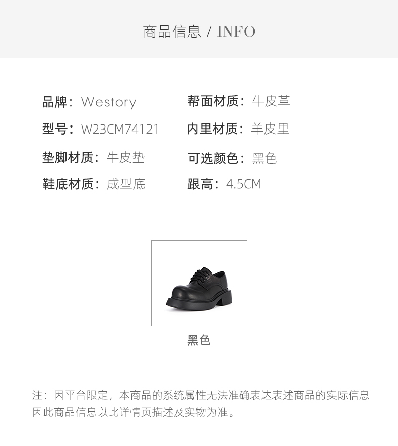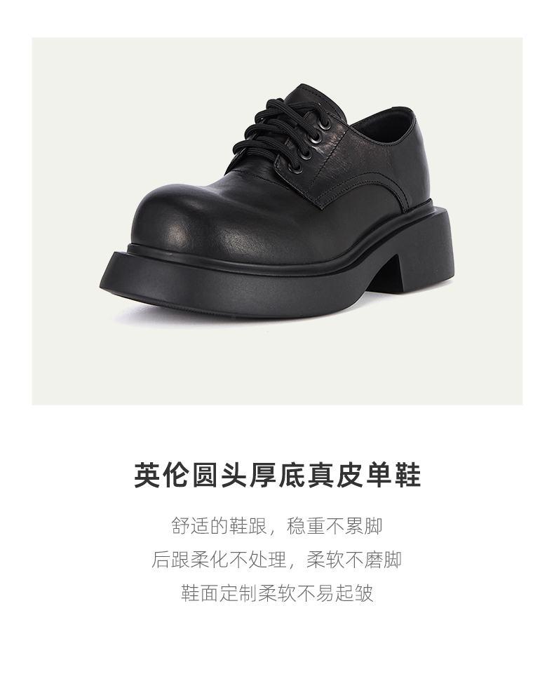 westory2023秋季新品英伦圆头厚底真皮单鞋系带大头低帮鞋W23CM74121