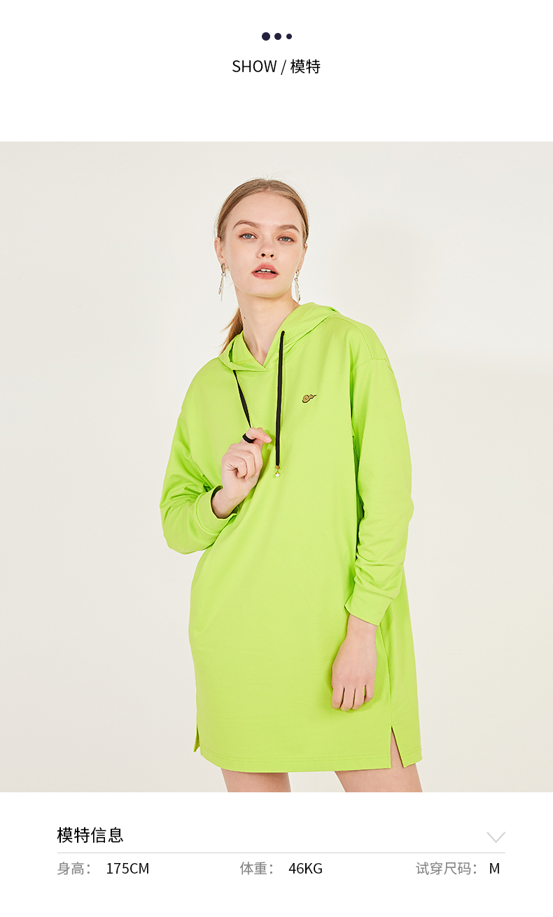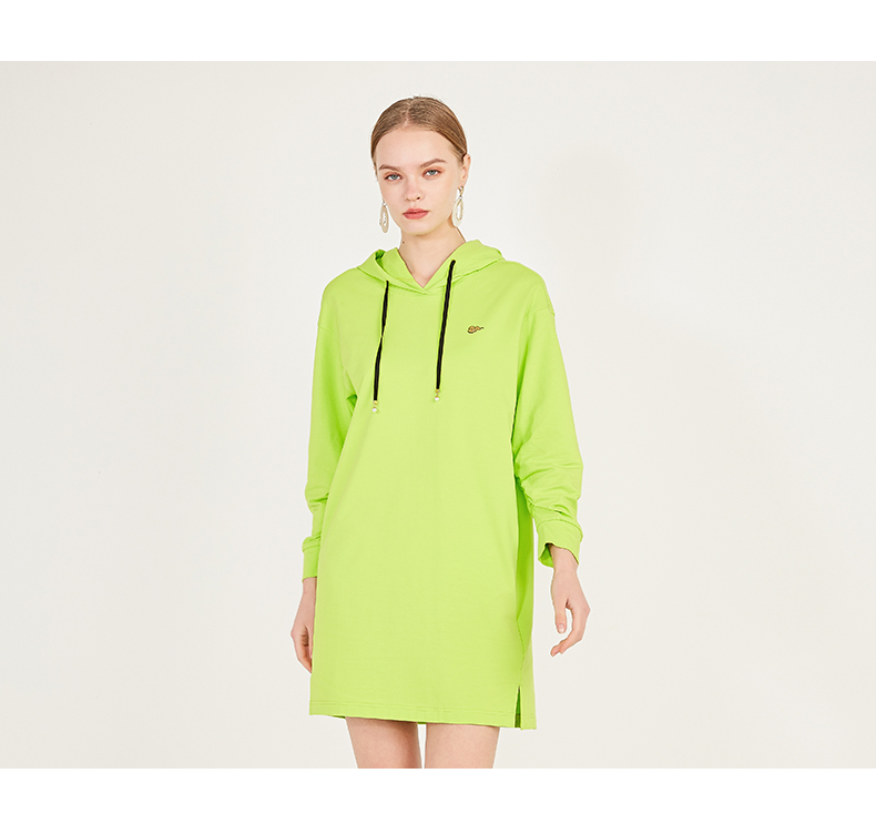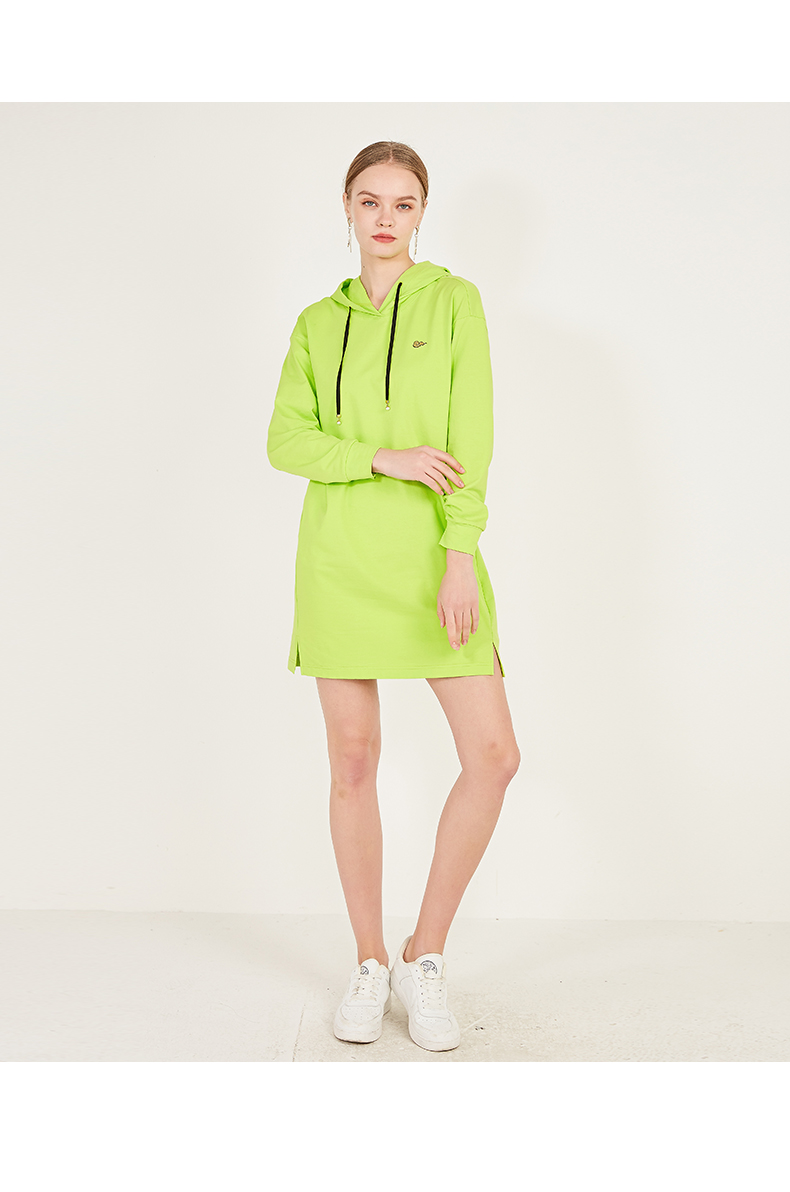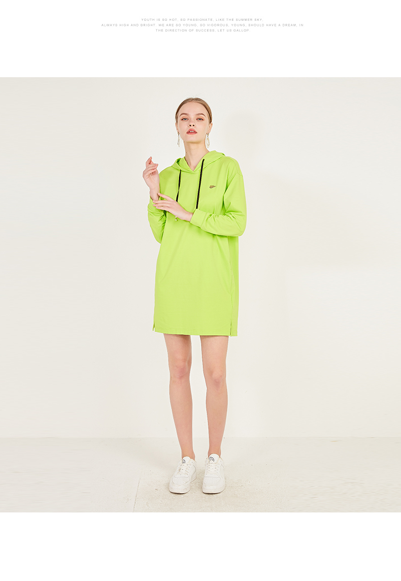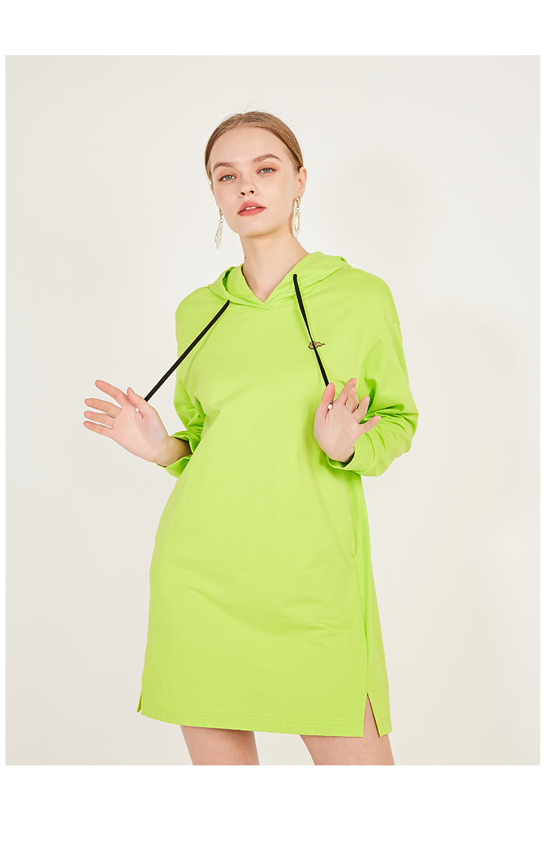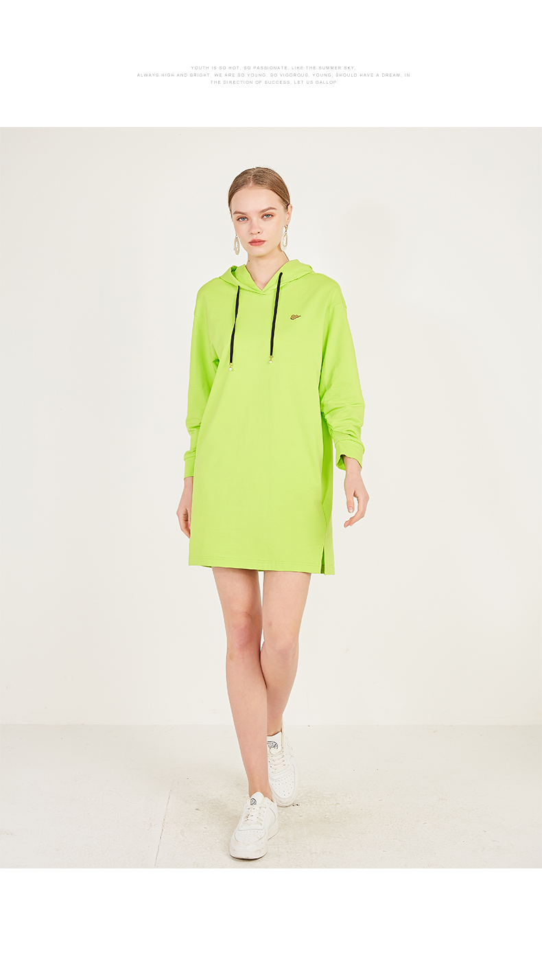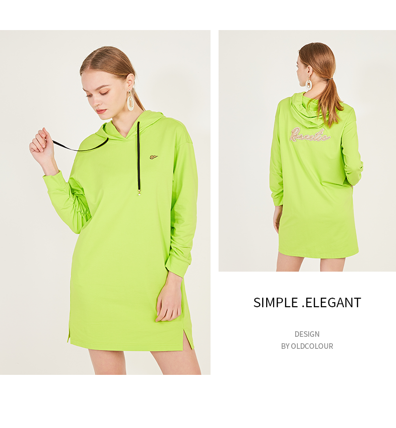 oldcolour春季荧光色休闲运动直筒长袖连帽卫衣款连衣裙N12103225