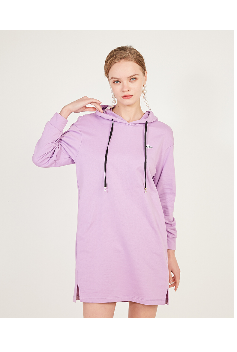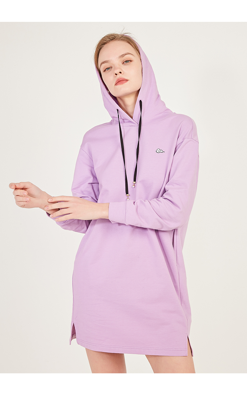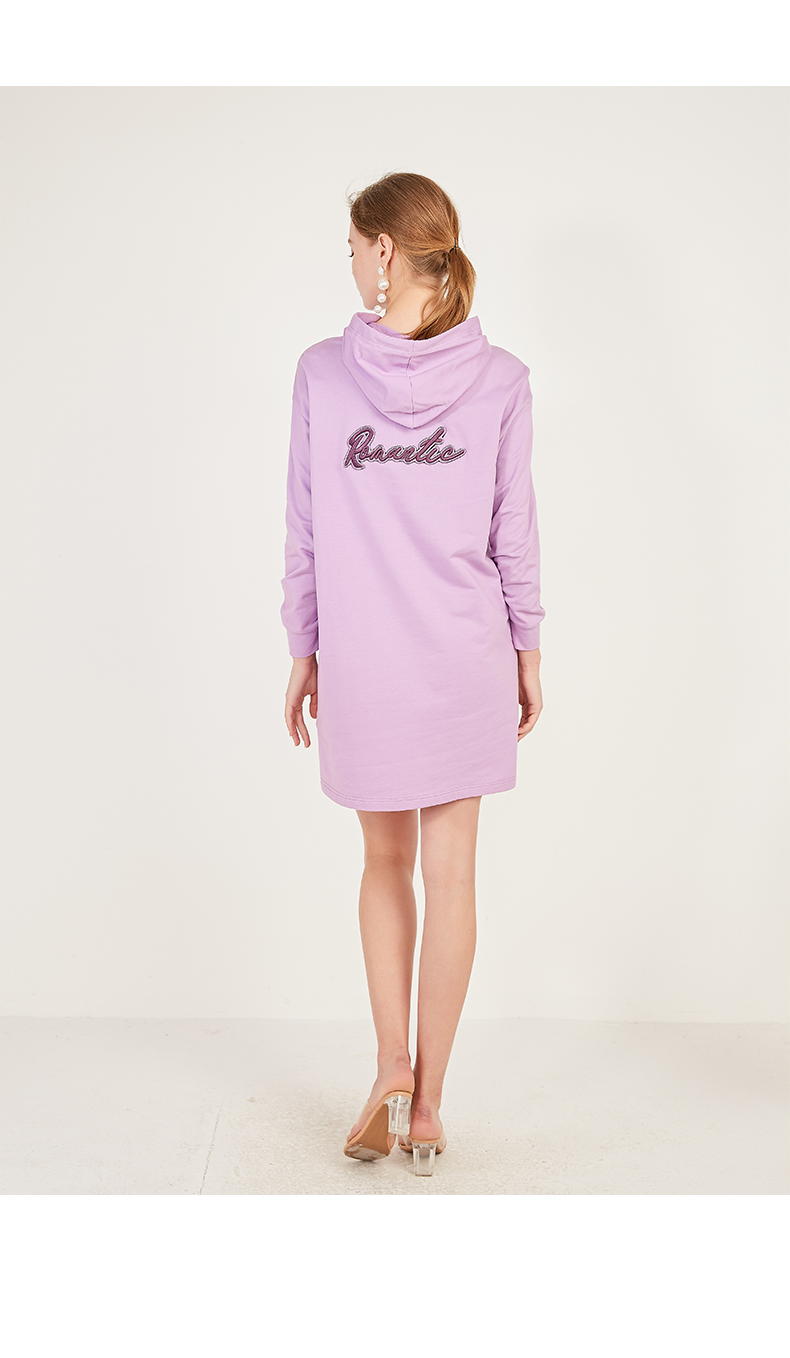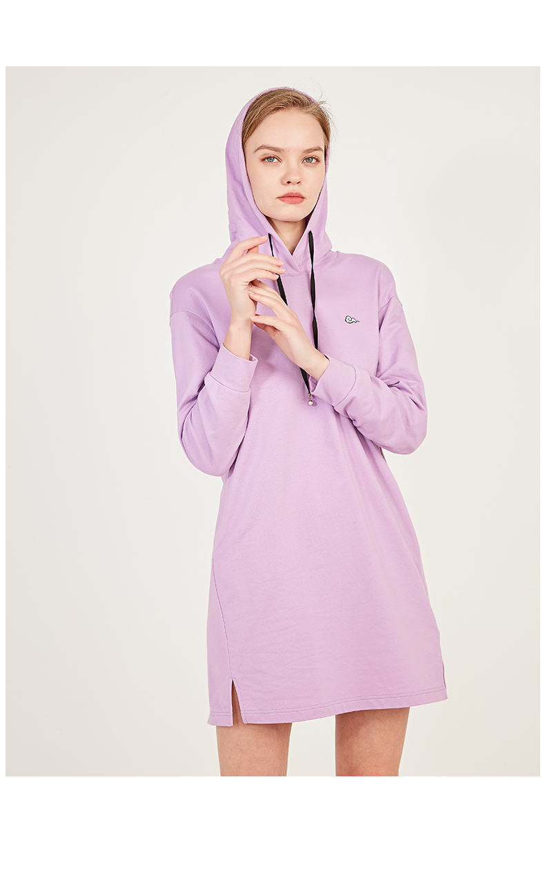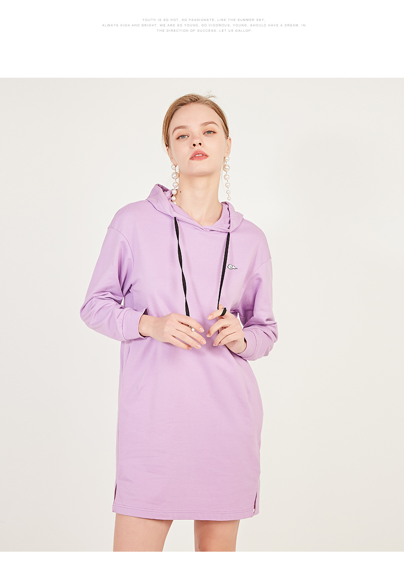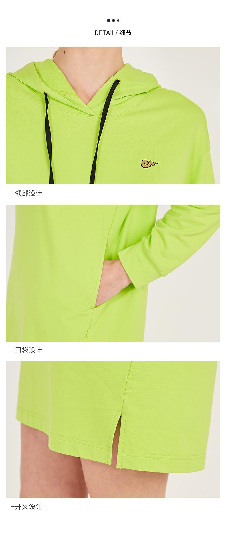 oldcolour春季荧光色休闲运动直筒长袖连帽卫衣款连衣裙N12103225