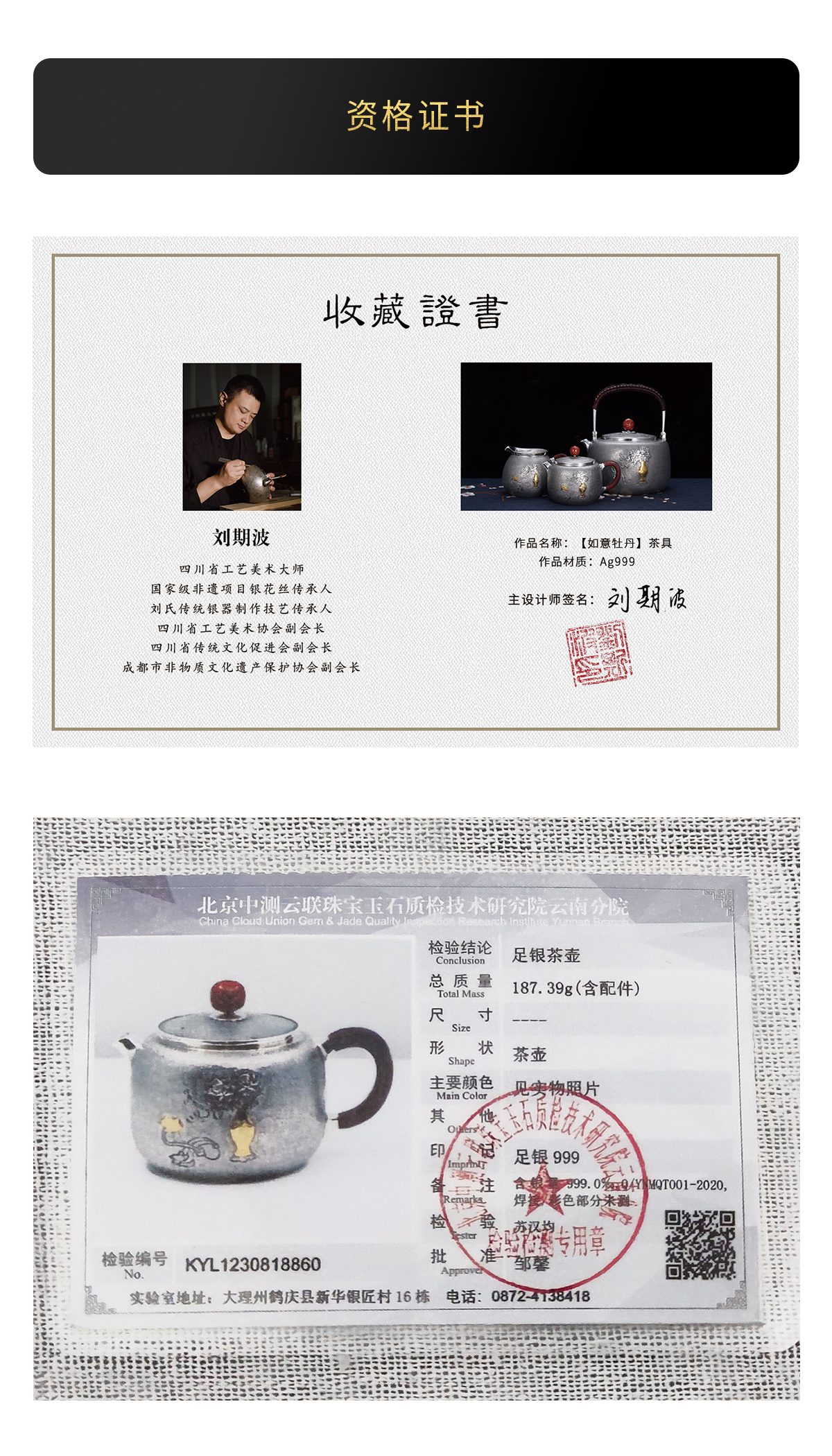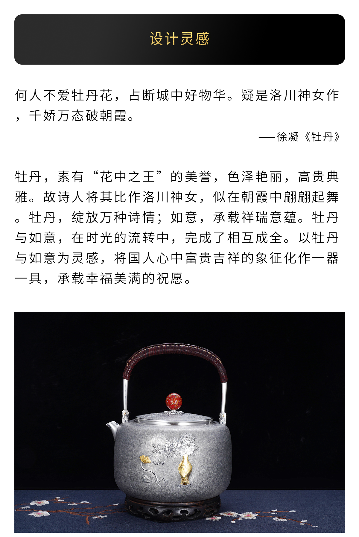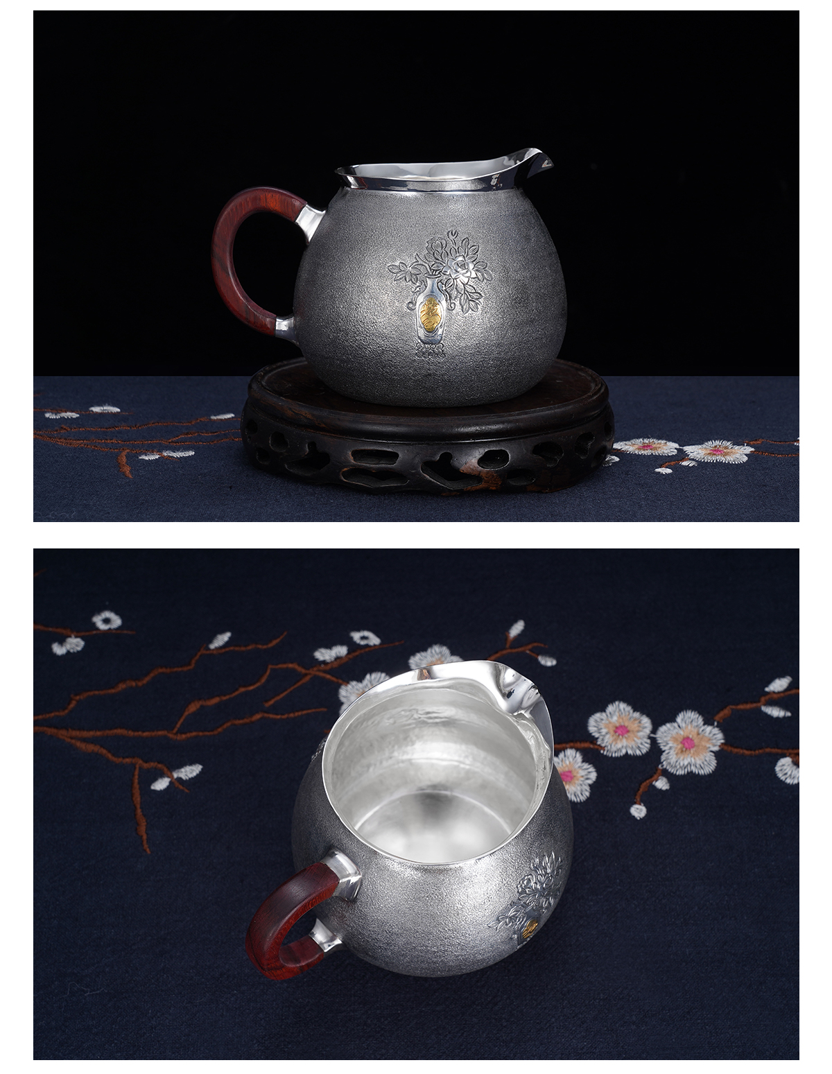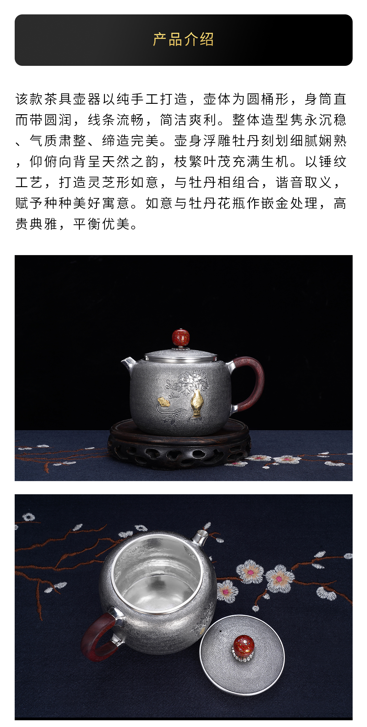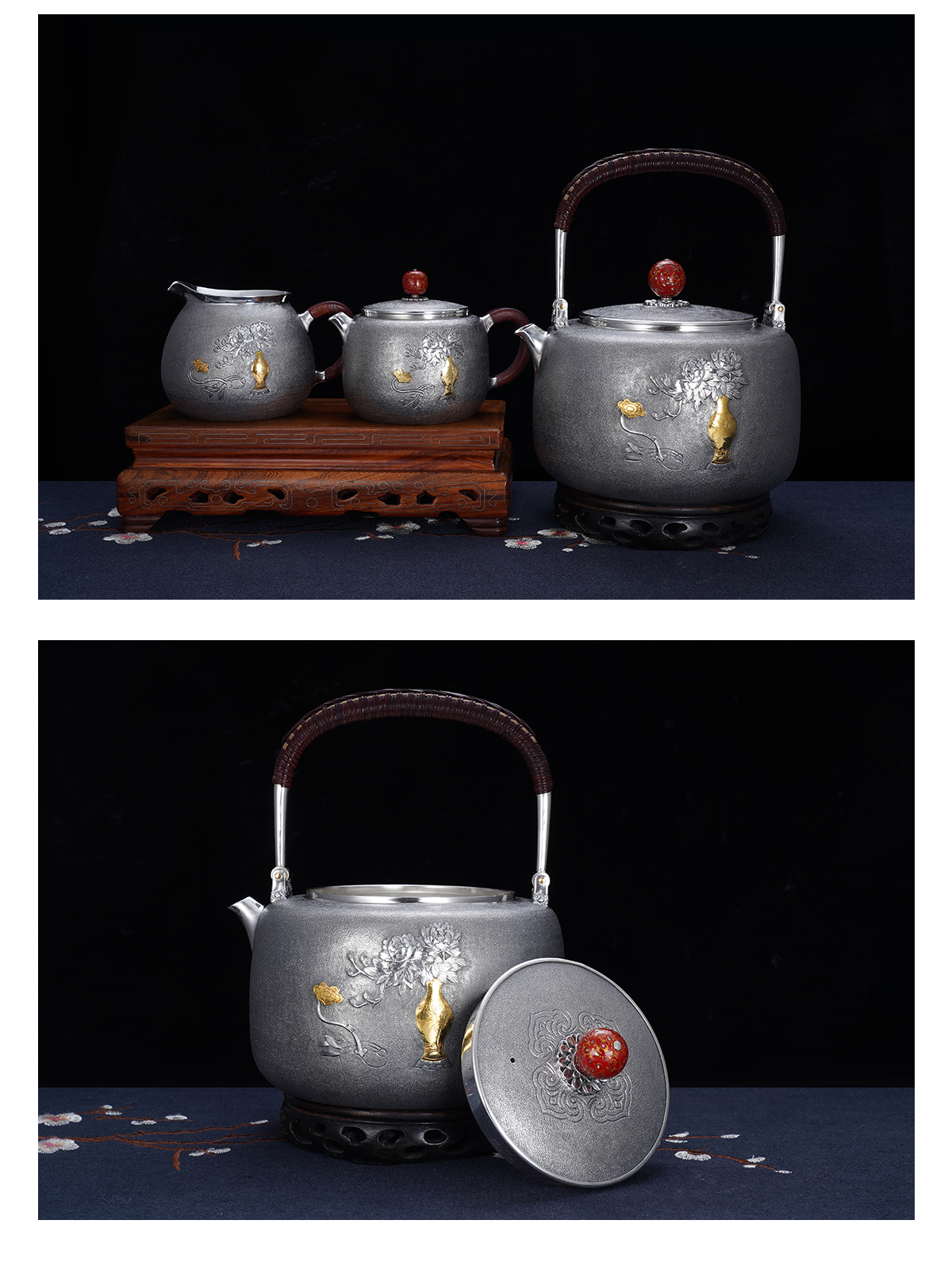 子佩集S999银【如意牡丹】提梁壶小茶壶公道杯摆件茶具套装【ZZ001】【ZZ002】【ZZ003】原创作品2311