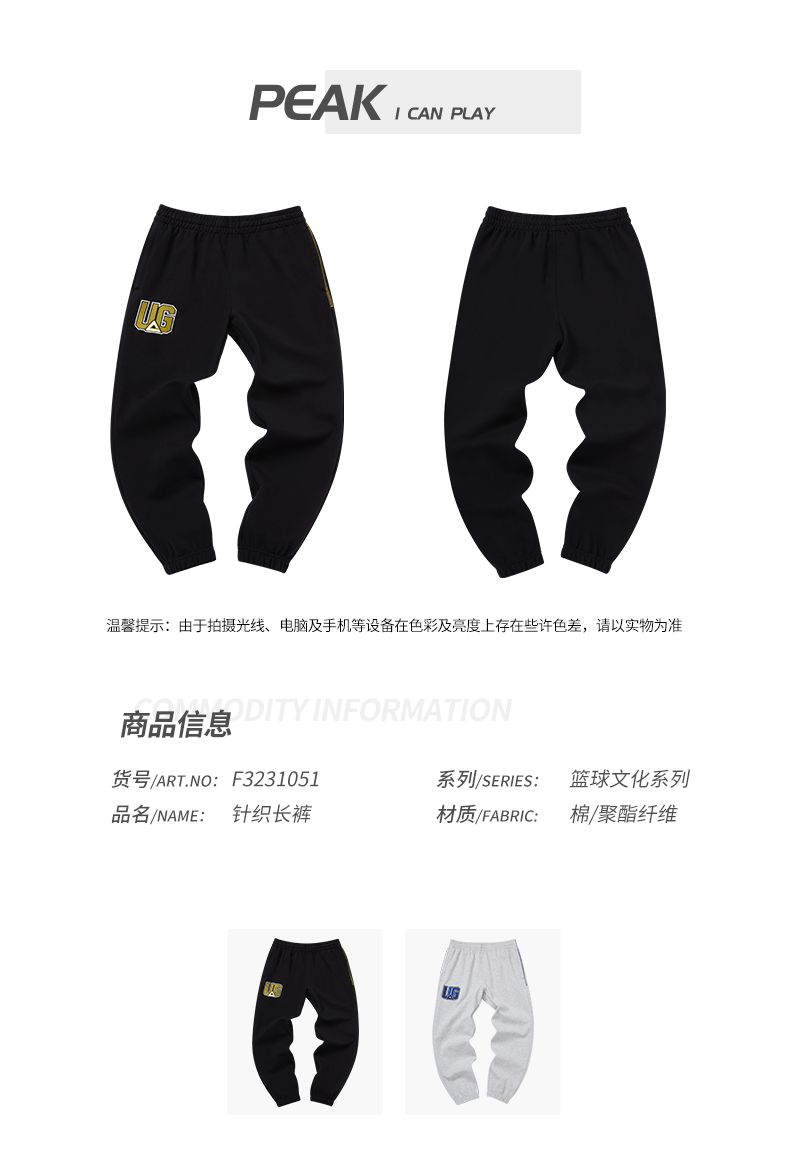 匹克针织长裤男裤2023春季新款松紧运动休闲透气耐磨裤子F3231051