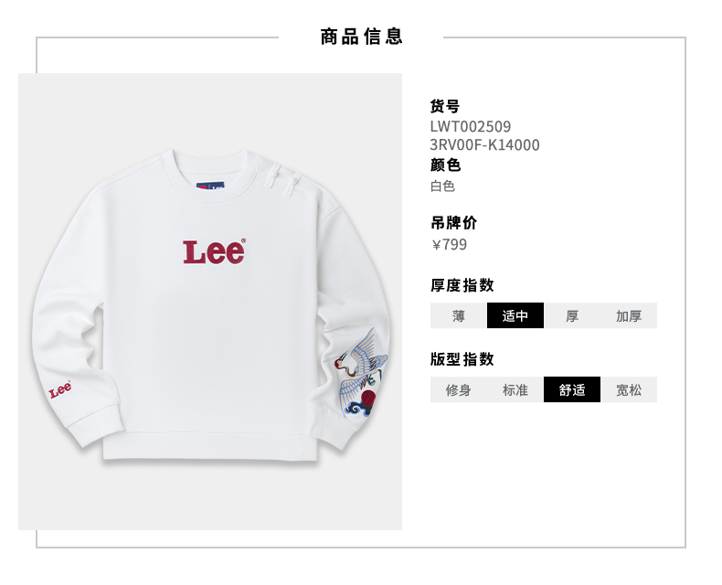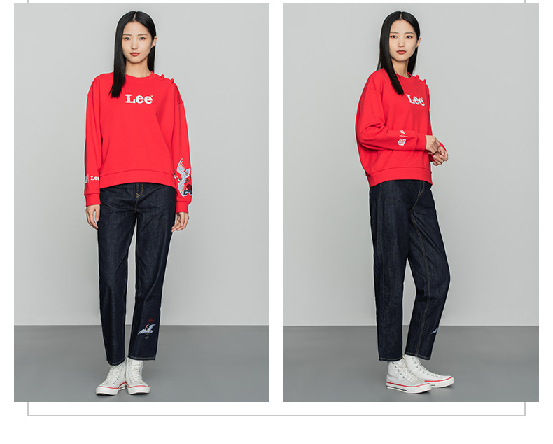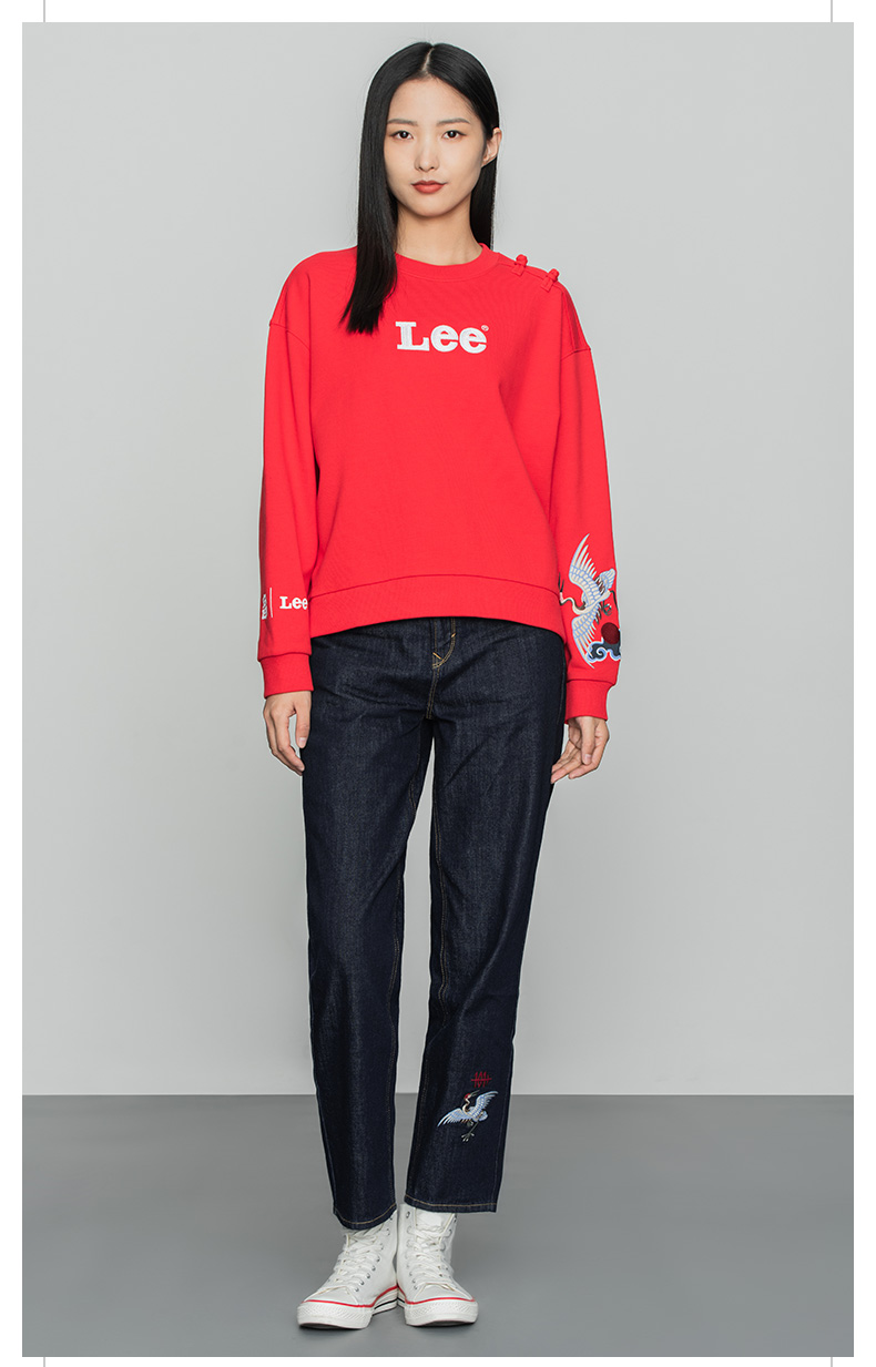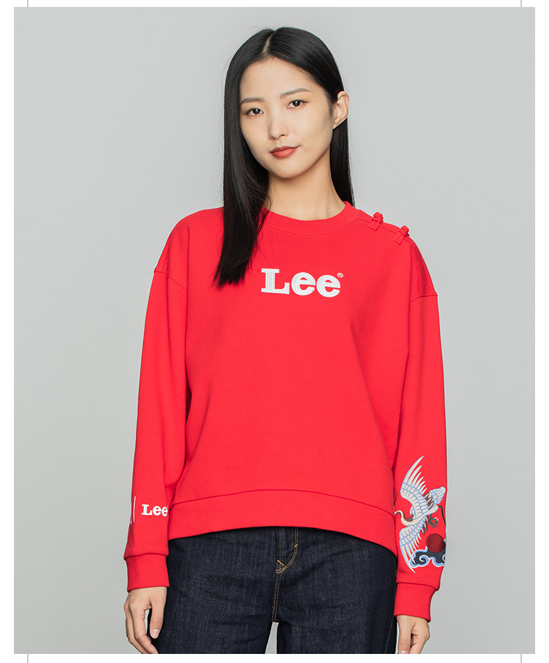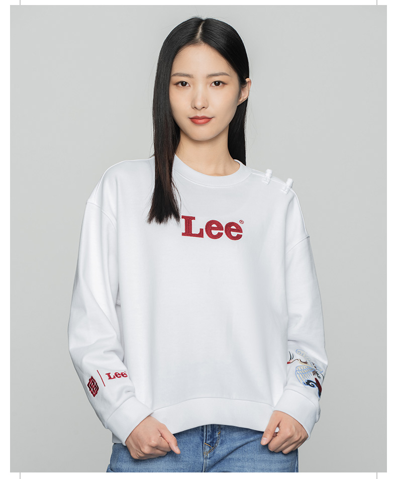 Lee宫廷文化“一品云鹤”潮服22春夏新品舒适版女卫衣LWT002509