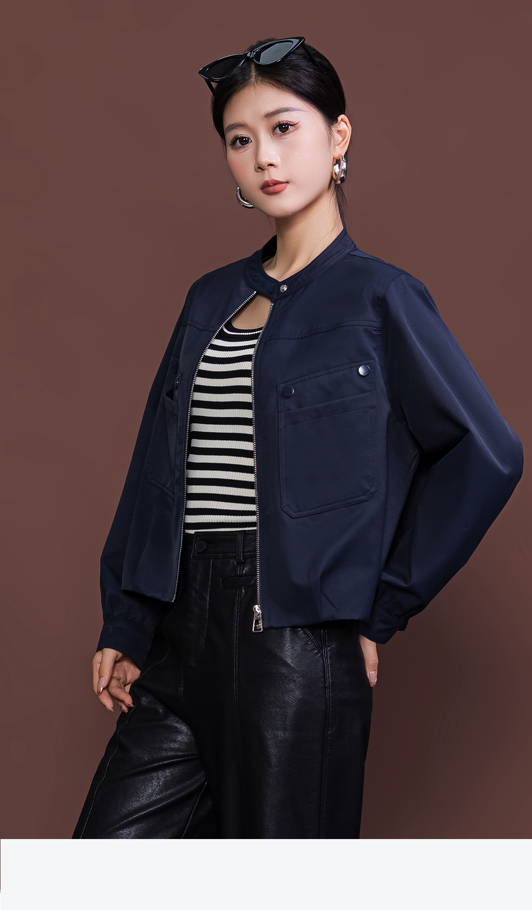 冬上新酷帅必备藏青色立领轻松拿捏街头风工装夹克2254089