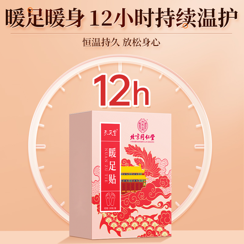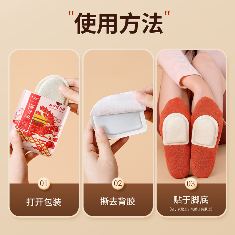 北京同仁堂 内廷上用暖足贴 暖宝宝自发热暖贴女脚底暖脚神器热敷20贴/盒