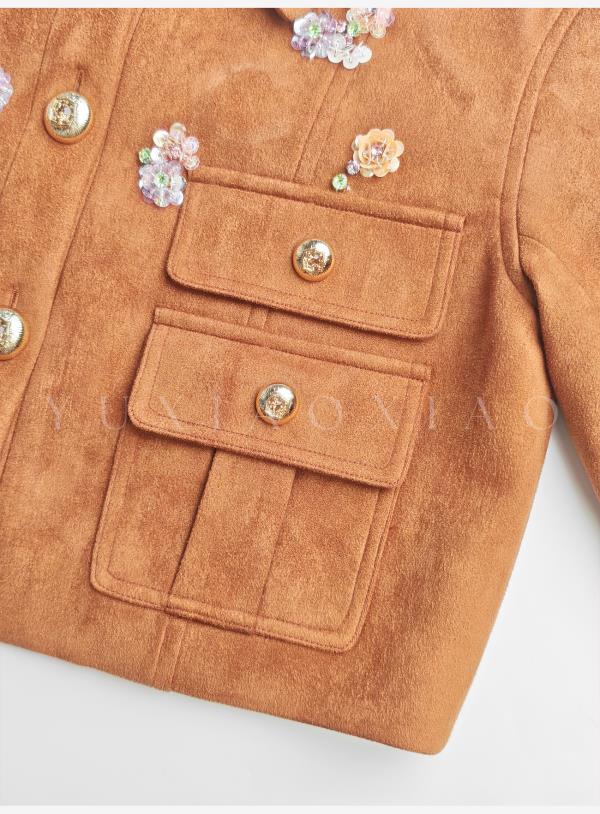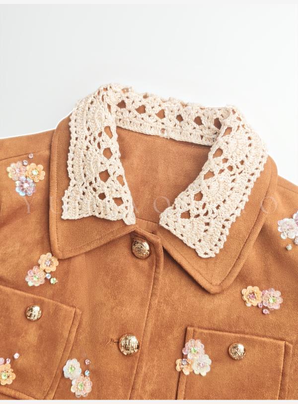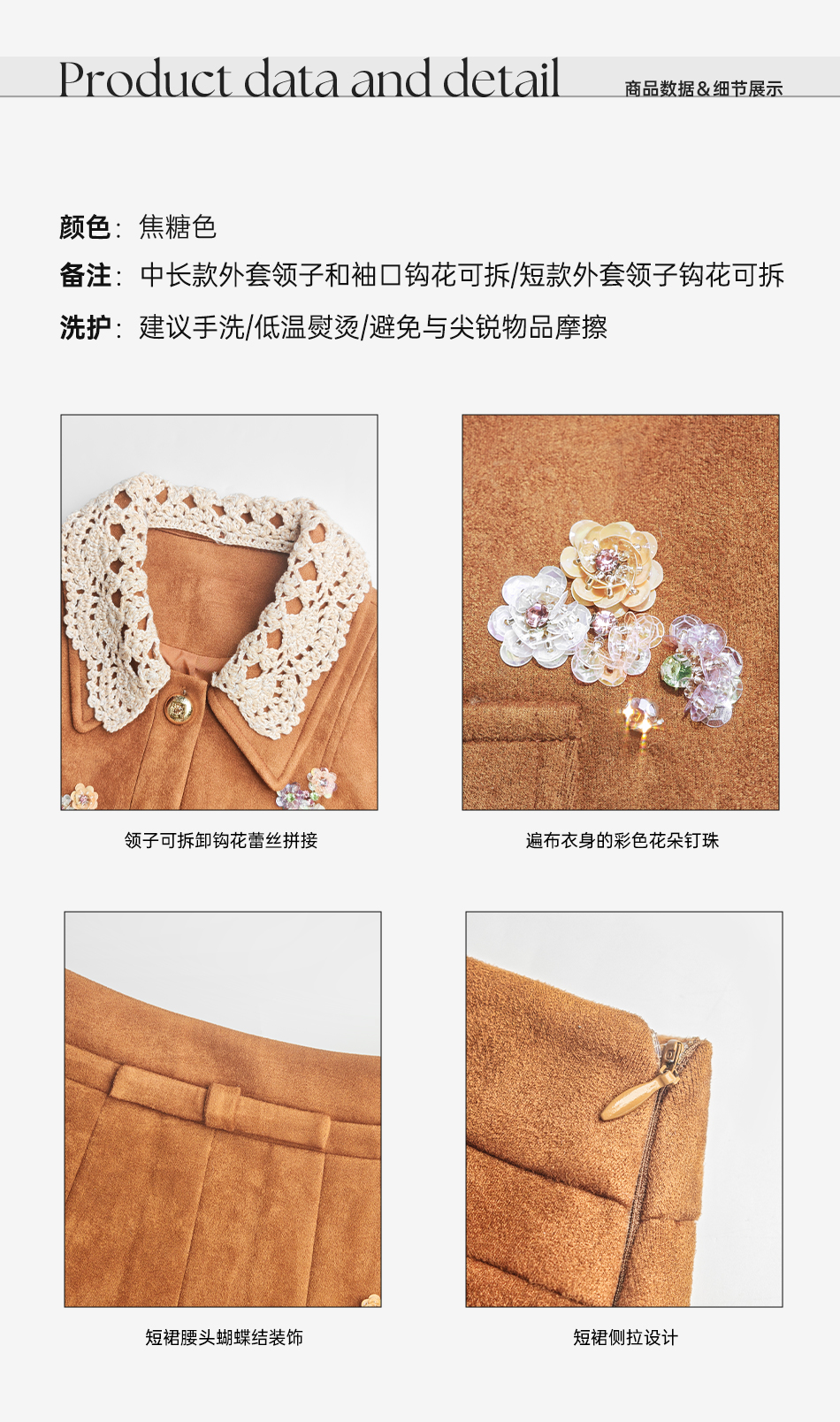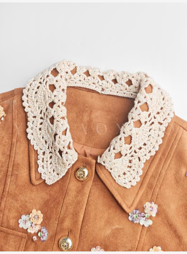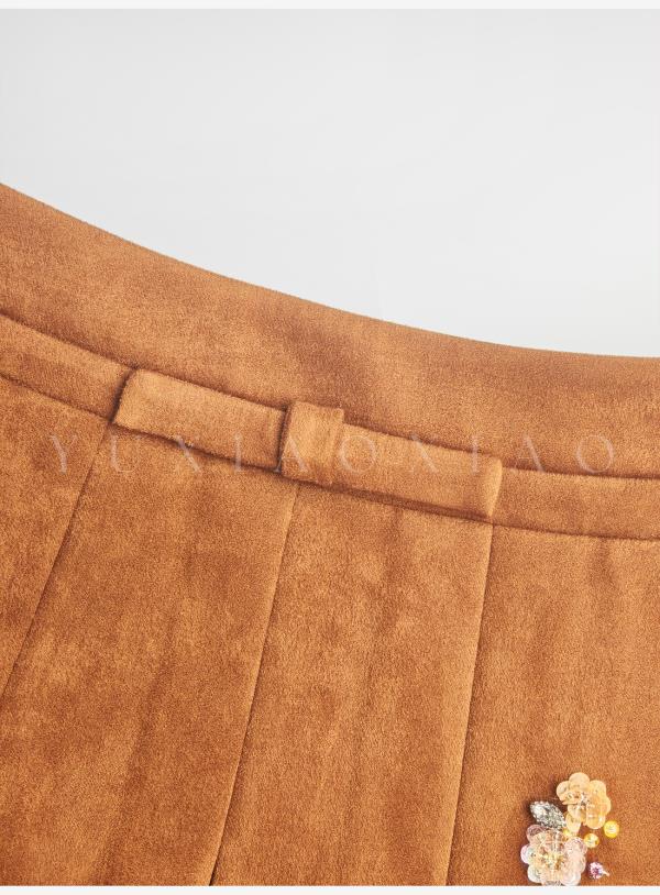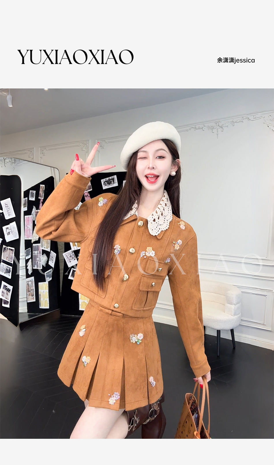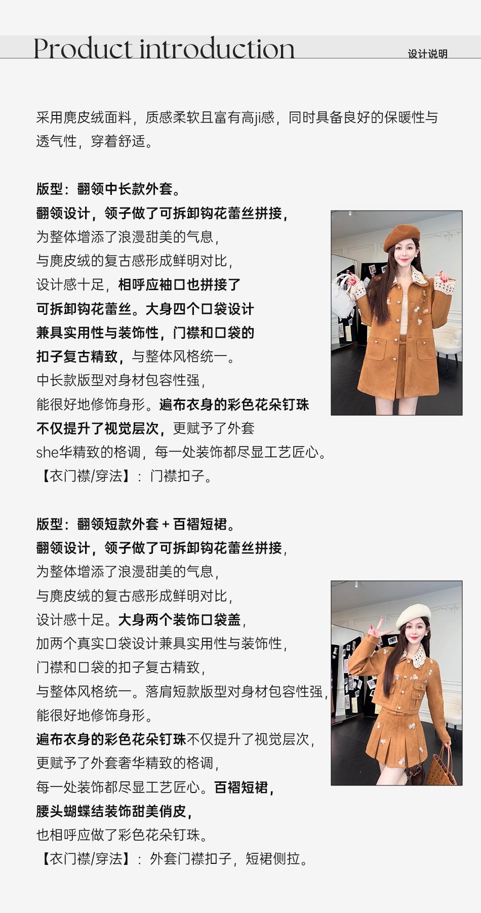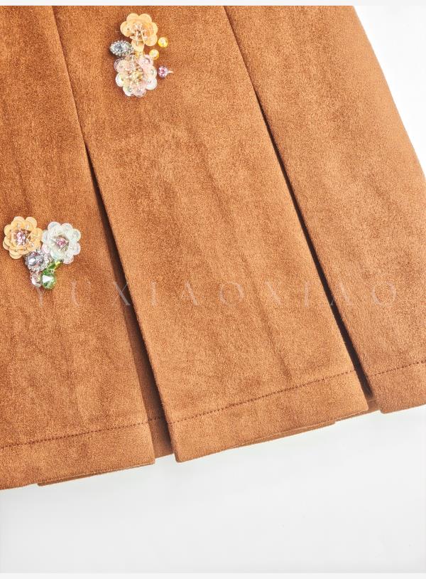 余潇潇【焦糖美术馆】复古麂皮绒钩花蕾丝短款&中长款外套&百褶半裙